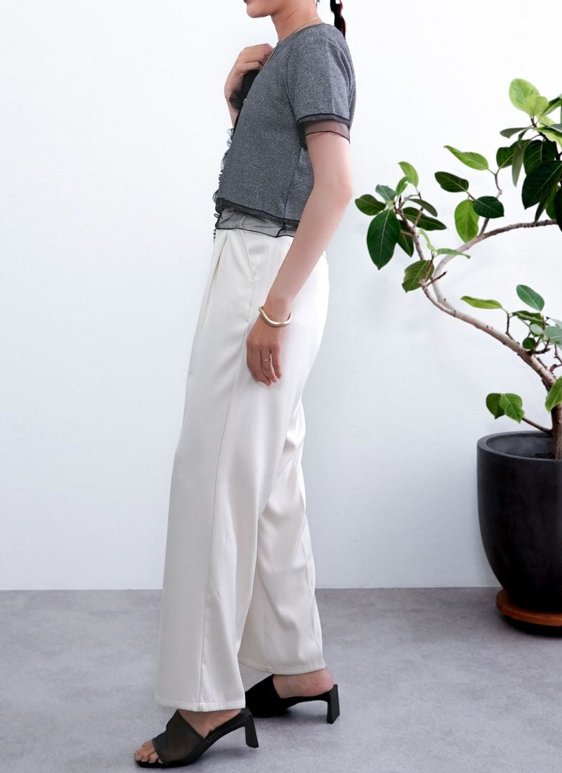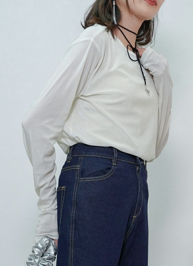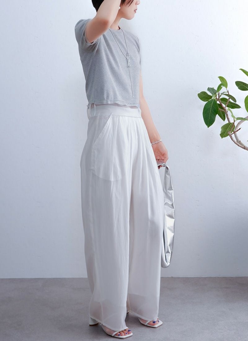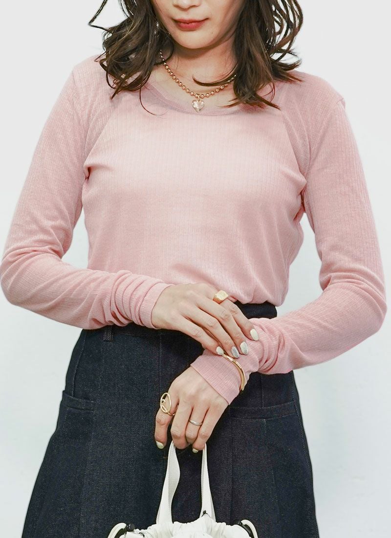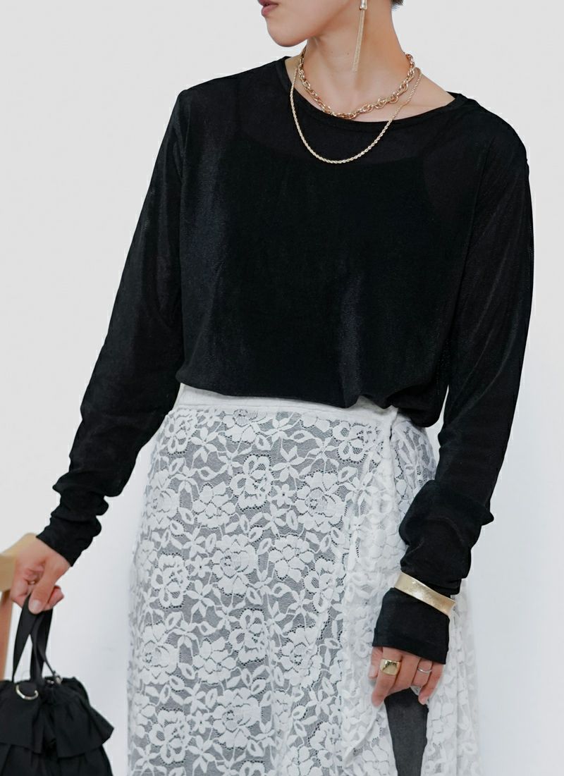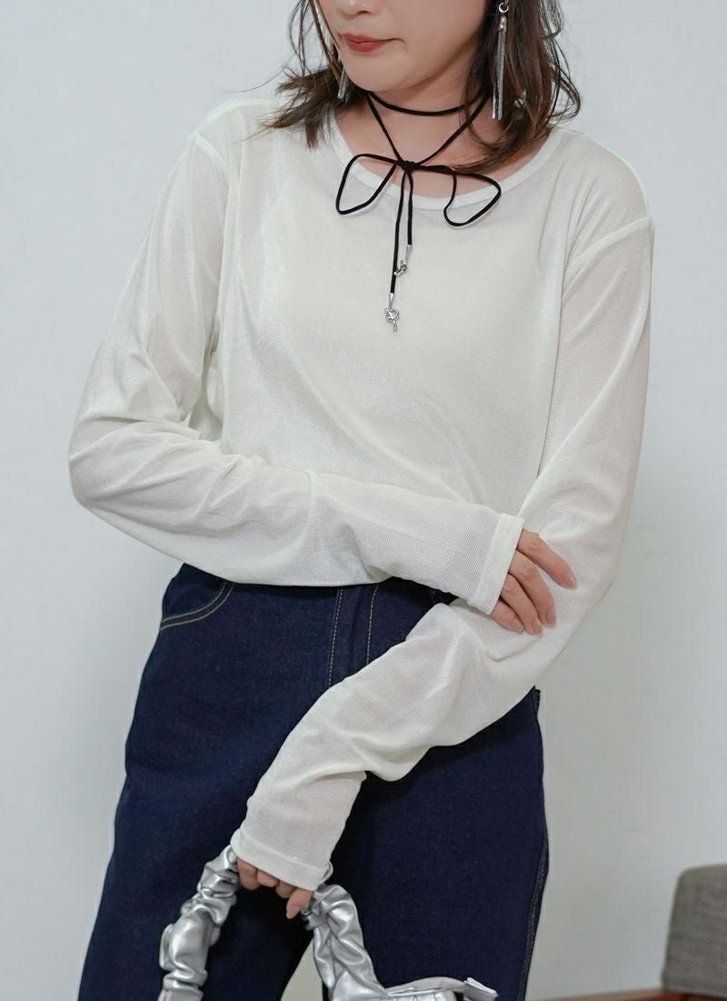 revoam【涼しげシアーとラメの上品さが絶妙バランス。カジュアルからきれいめまで、幅広く使える夏トップス】 【20%OFF】ラメテレコシアーヘム コンパクトTee