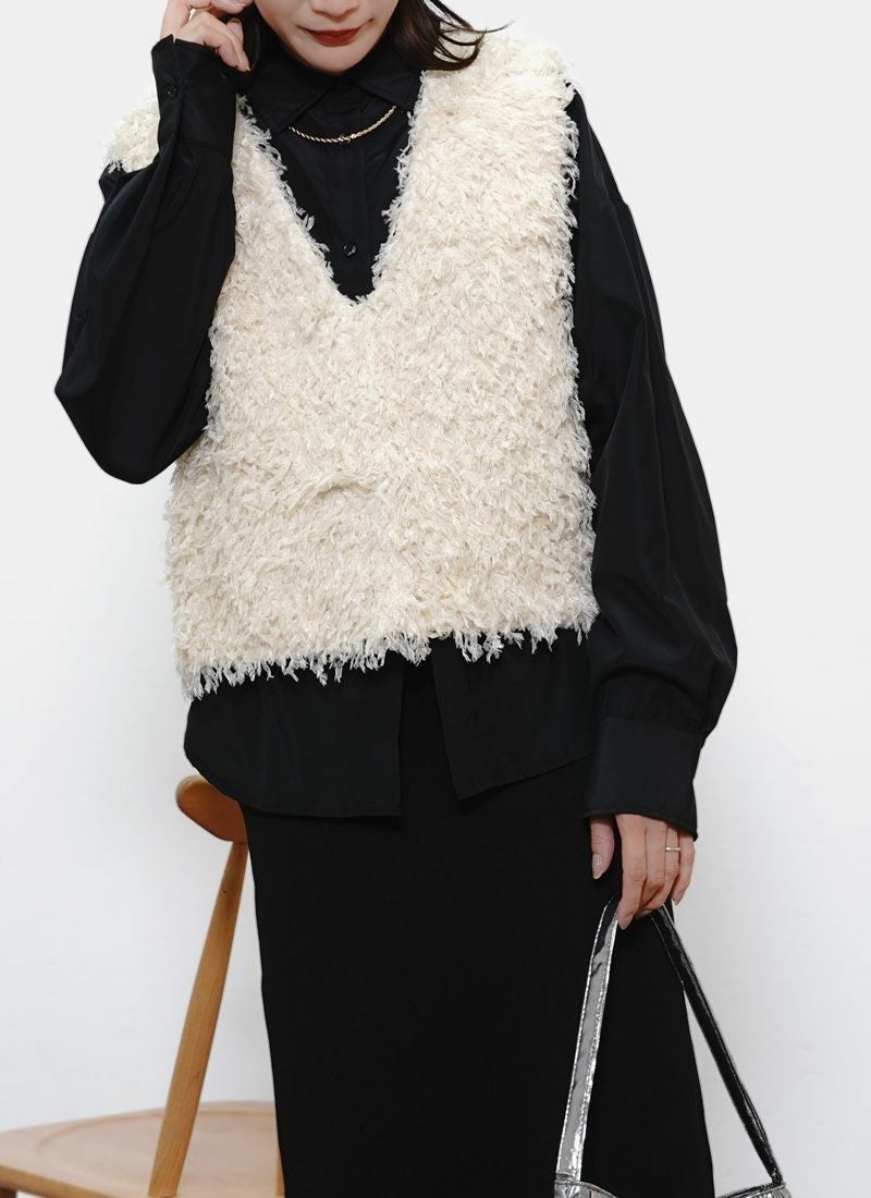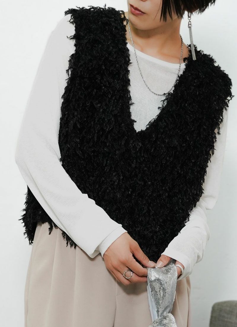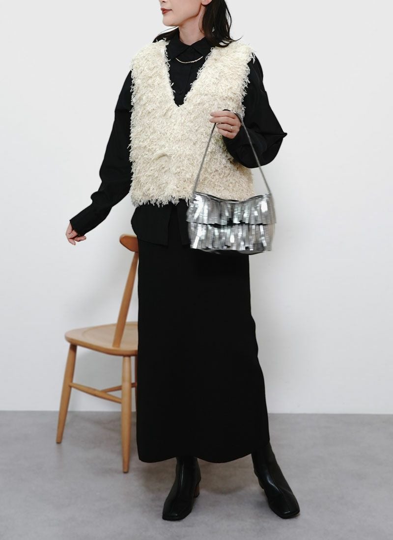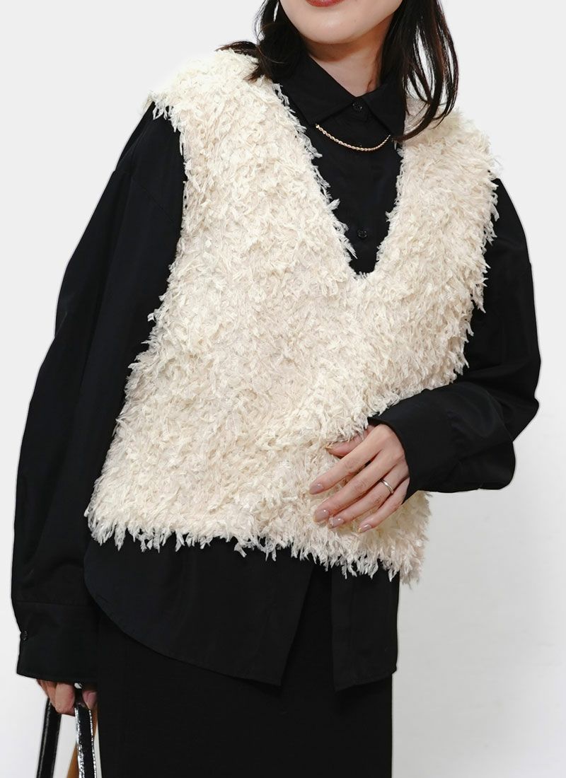 revoam【立体的なフリンジが動くたび映える。前後2WAYで着回し自在の万能ベスト】 【30%OFF】フリンジ2wayベスト