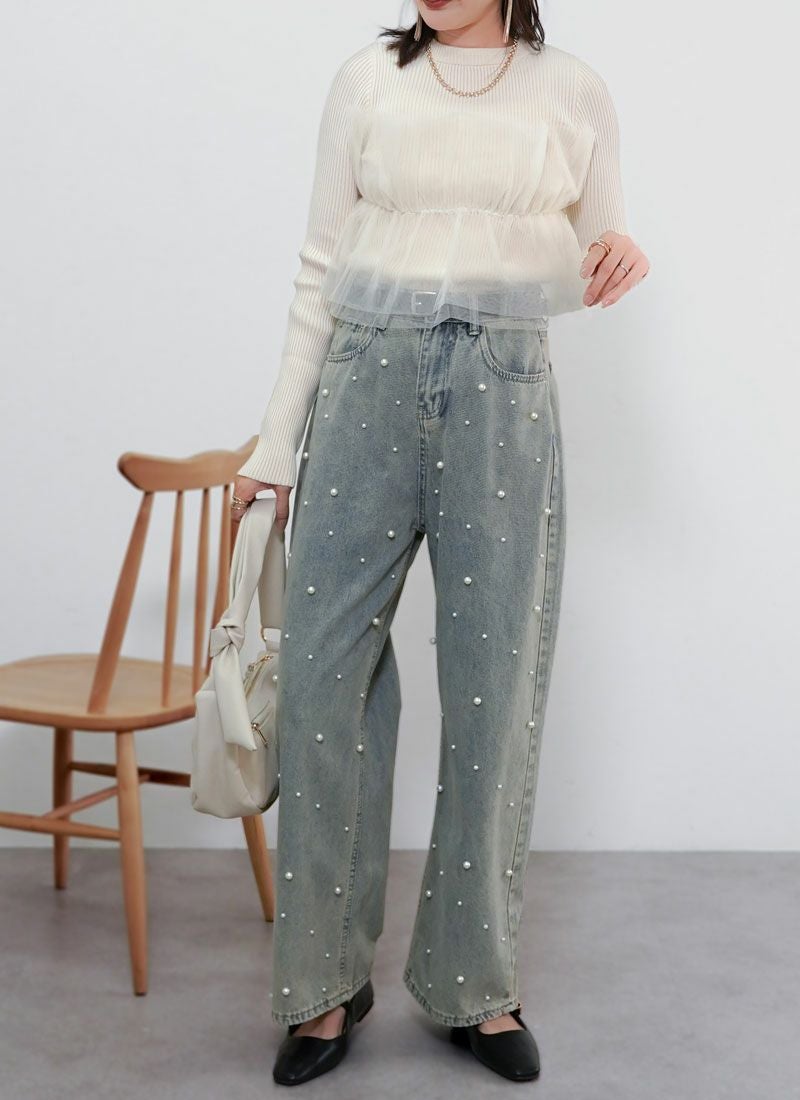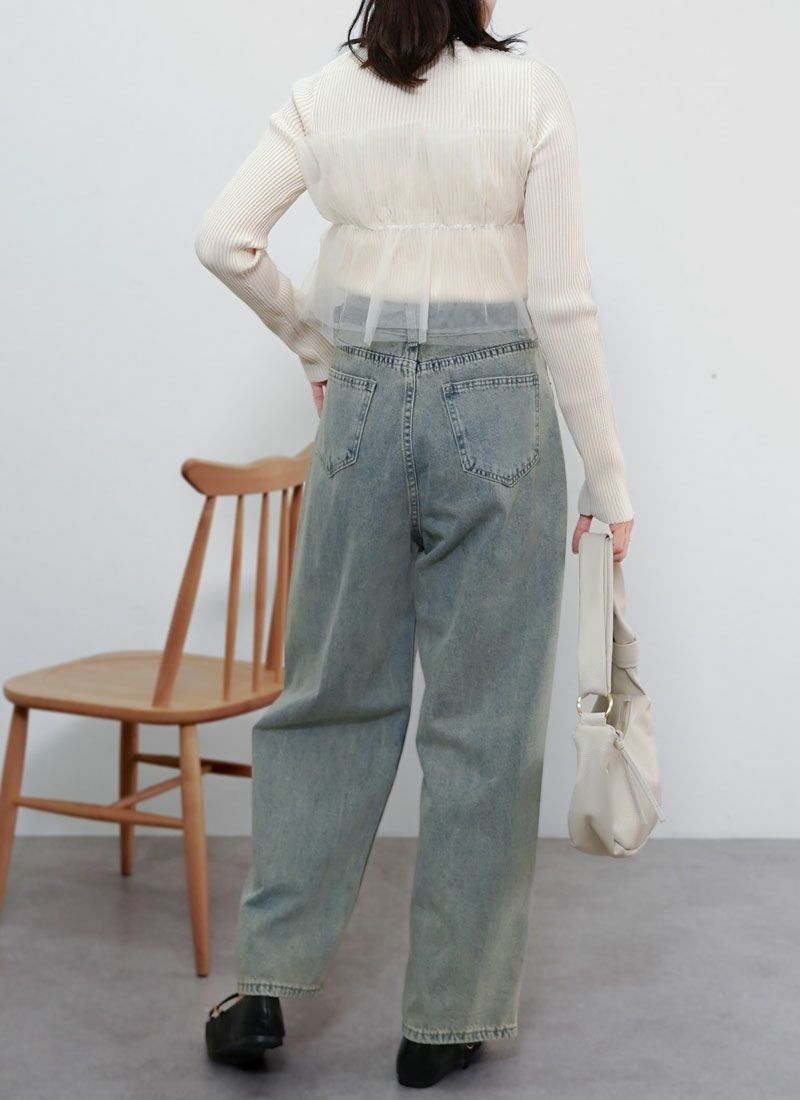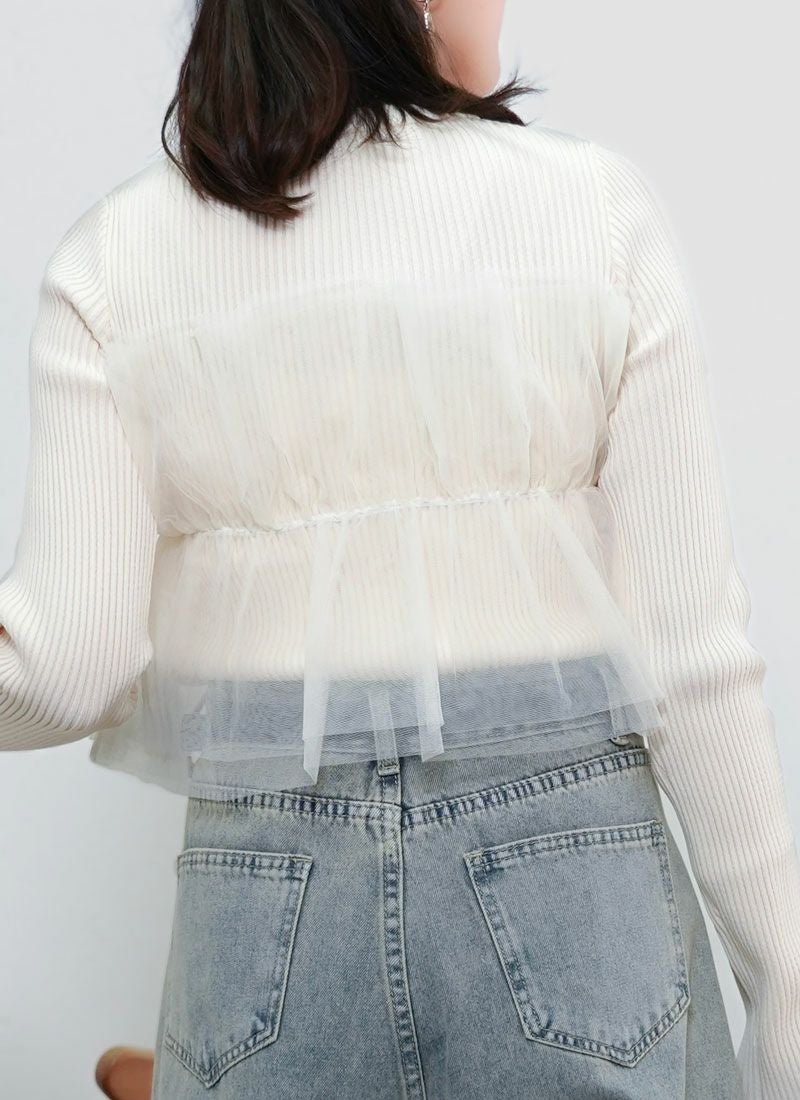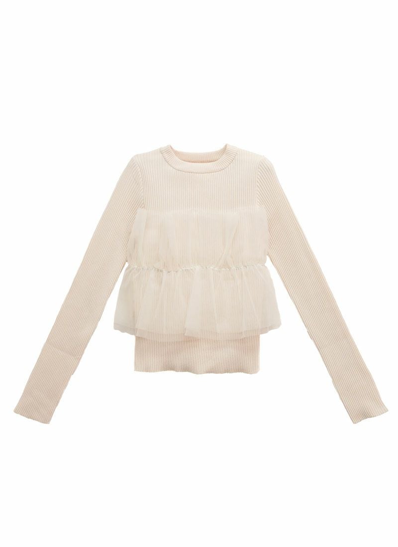 【新作おすすめ】 【30%OFF】チュールドッキングリブプルオーバー