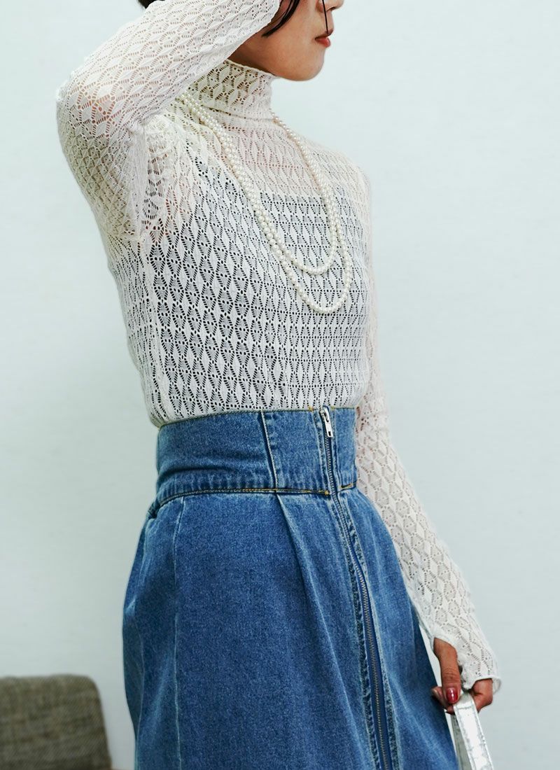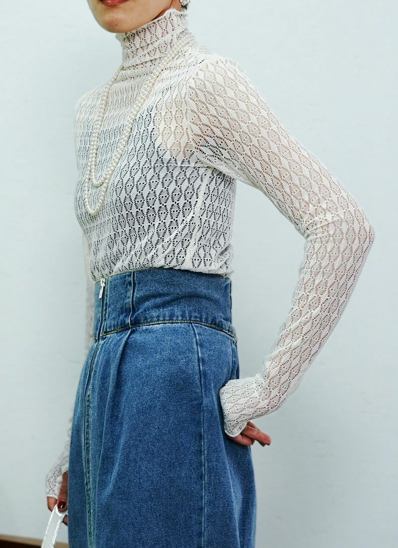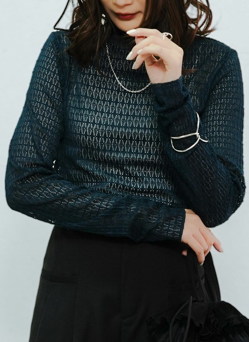 revoam【繊細レースで上品に。重ね着コーデを華やかに仕上げるハイネック】 【20%OFF】レースハイネックプルオーバー