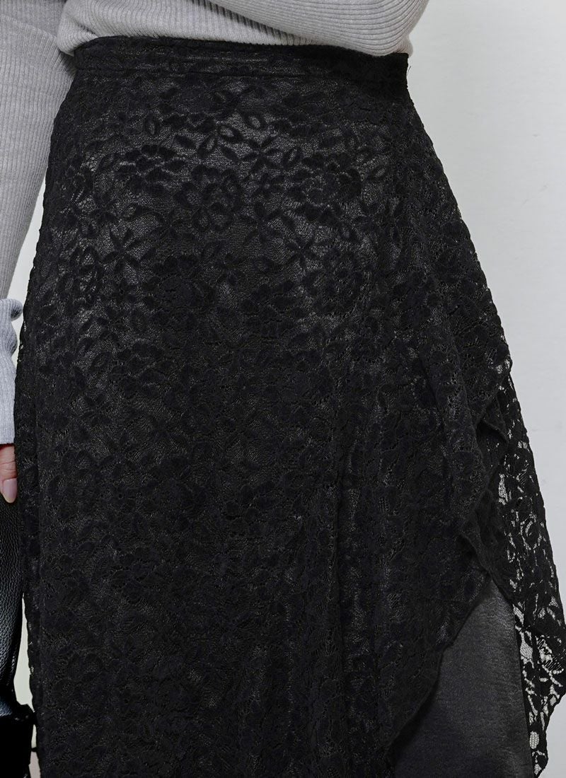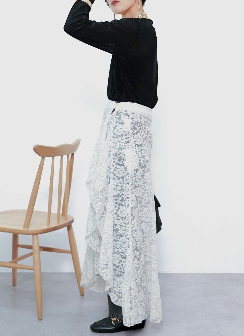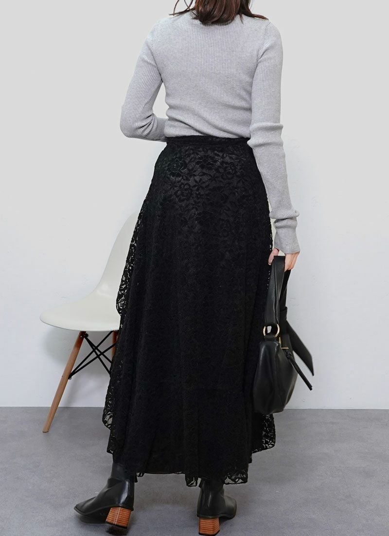 revoam【繊細レースが揺れる。大人フェミニンを引き立てるラップスカート】 【30%OFF】レースラップスカート