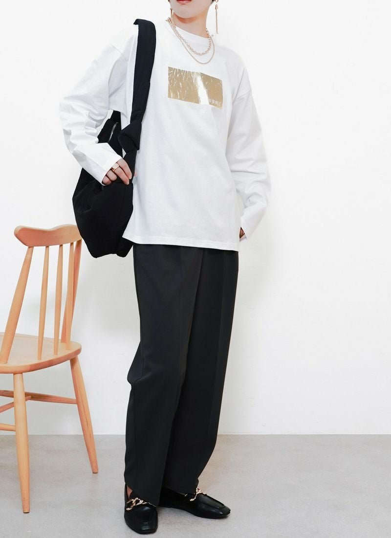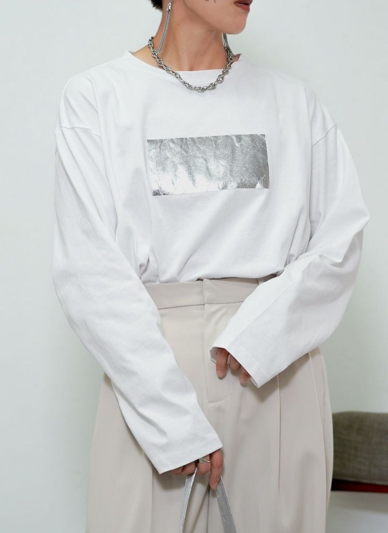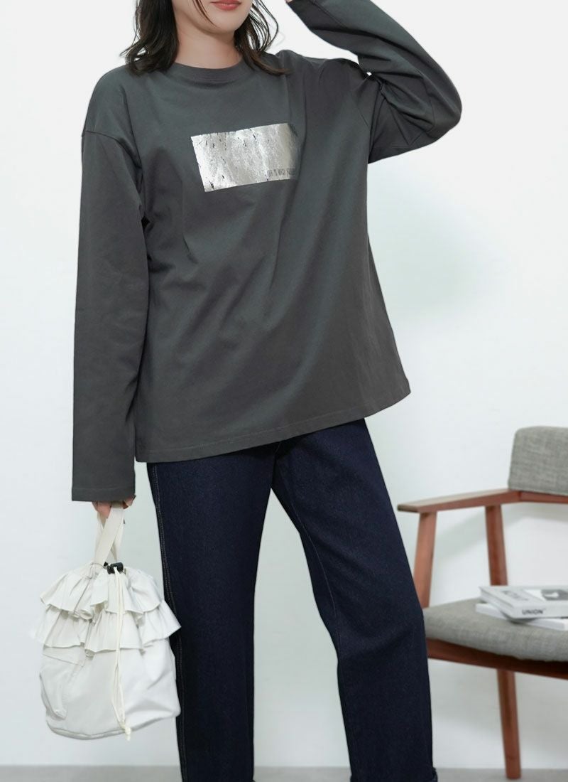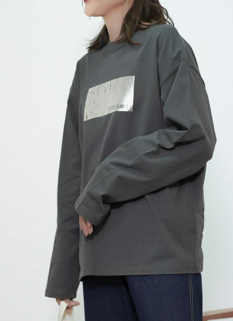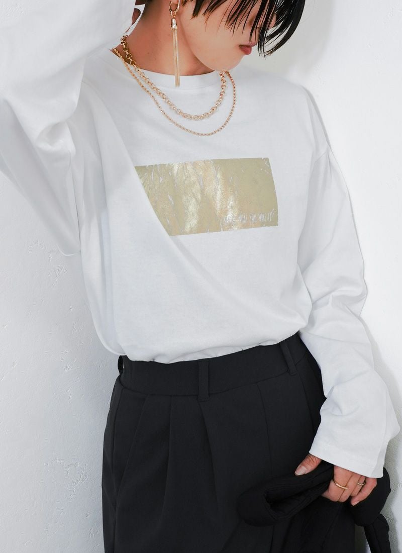 revoam【きらめく箔プリントが主役。大人モードなオーバーサイズTee】 【20%OFF】オーバーサイズ箔プリントロンTee