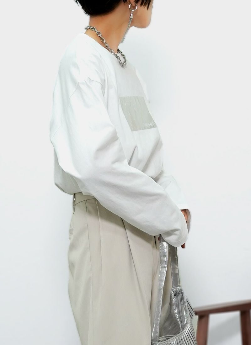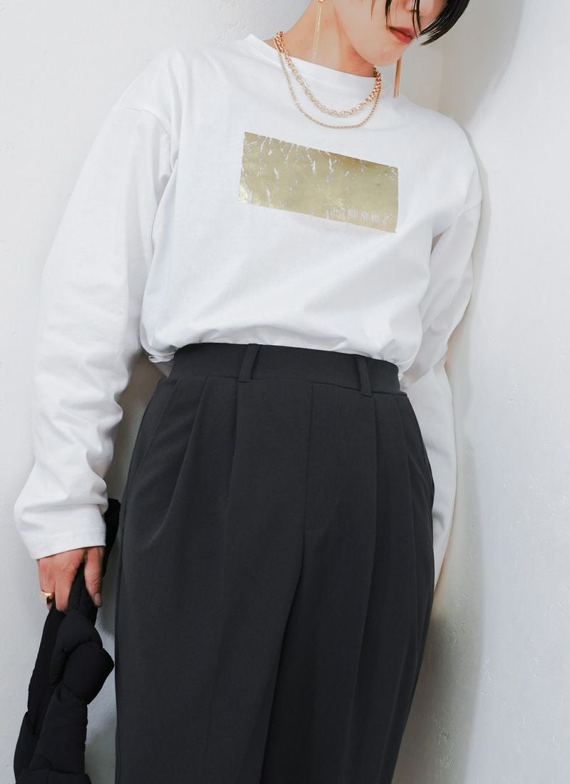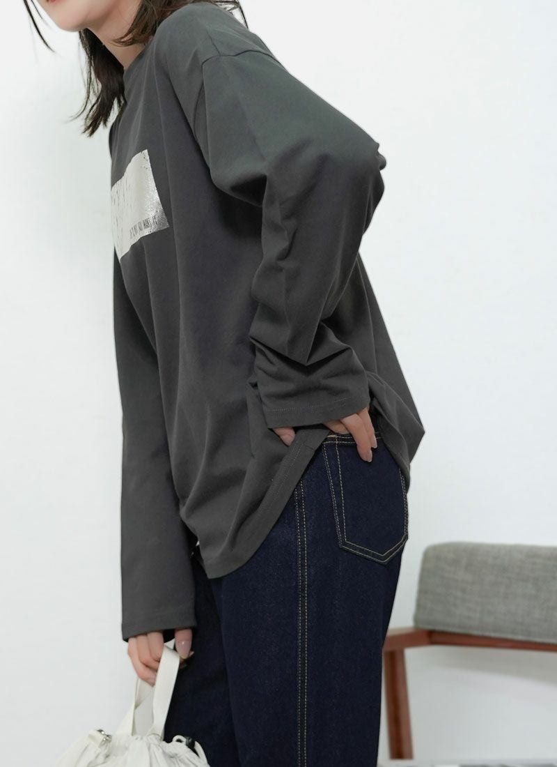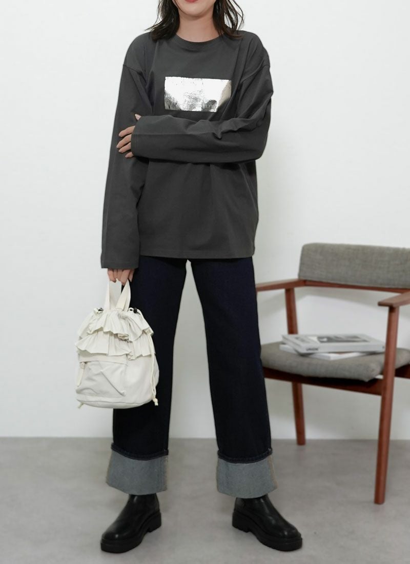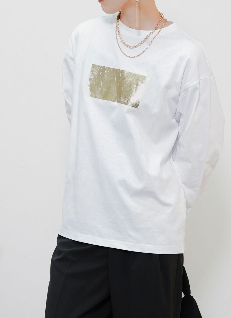 revoam【きらめく箔プリントが主役。大人モードなオーバーサイズTee】 【20%OFF】オーバーサイズ箔プリントロンTee