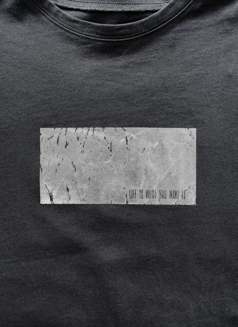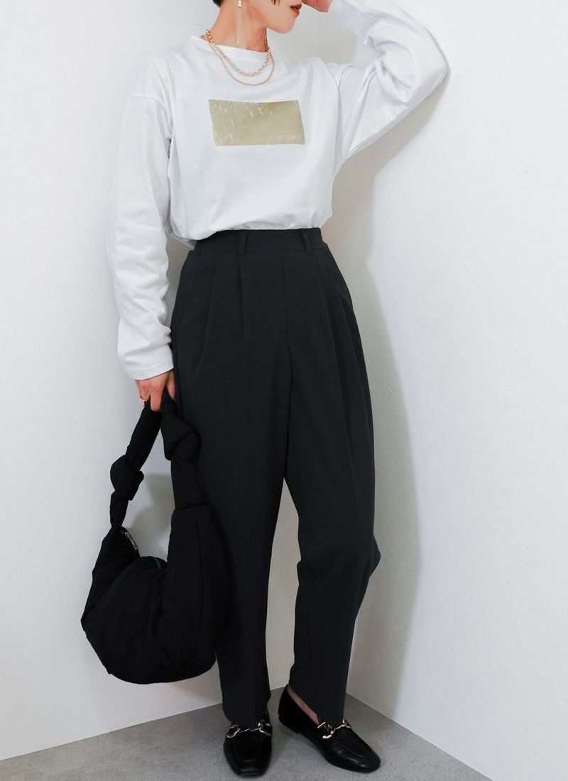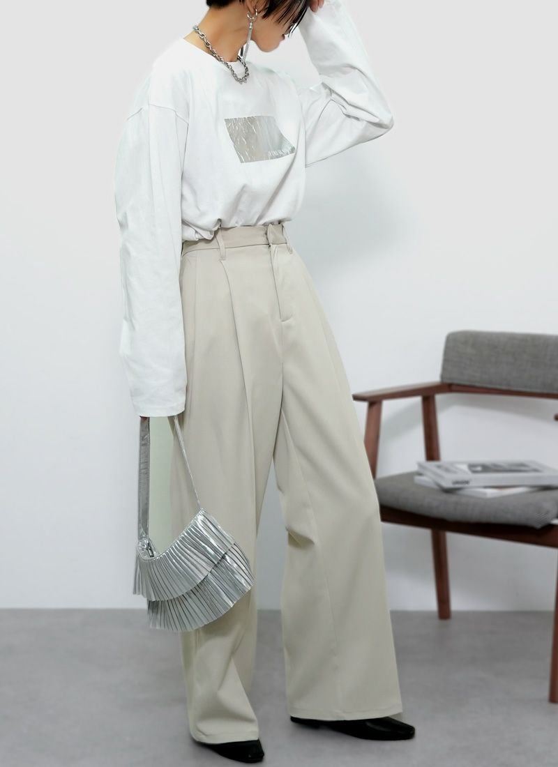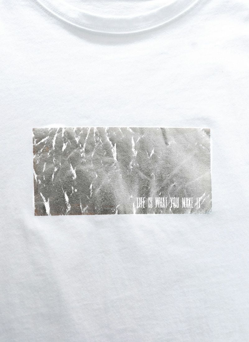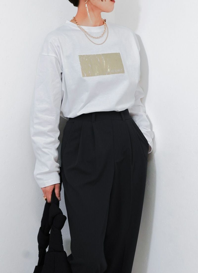 revoam【きらめく箔プリントが主役。大人モードなオーバーサイズTee】 【20%OFF】オーバーサイズ箔プリントロンTee