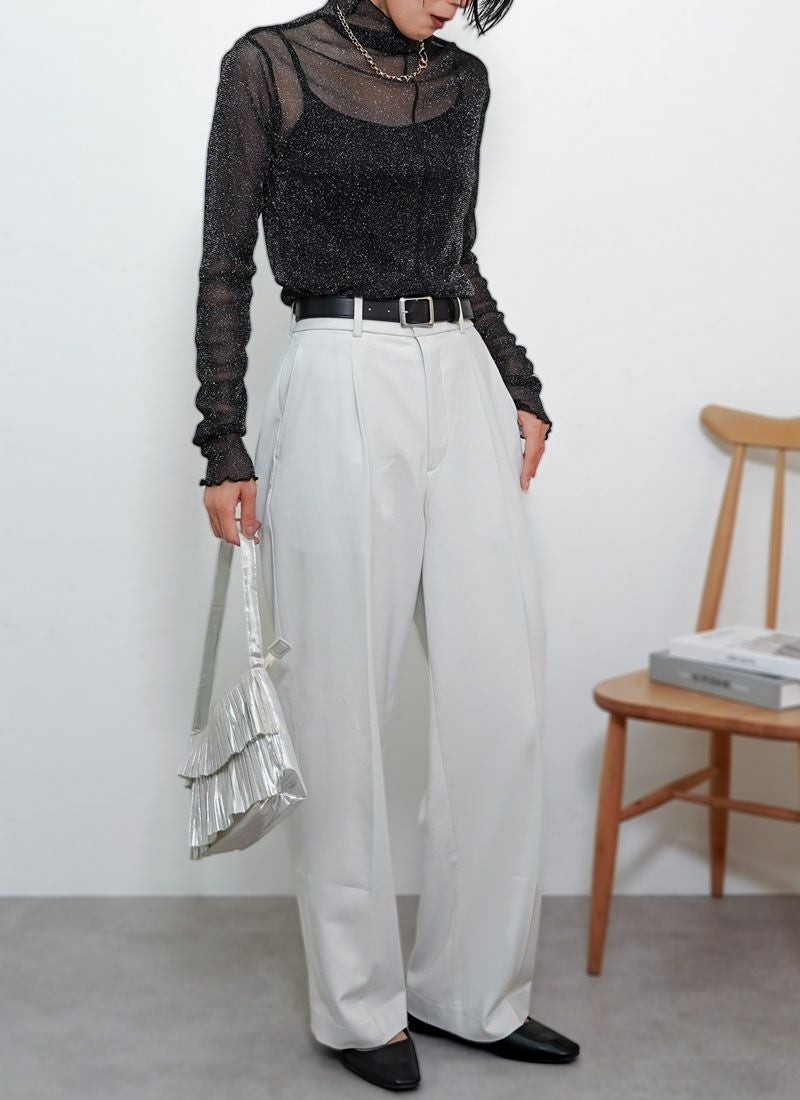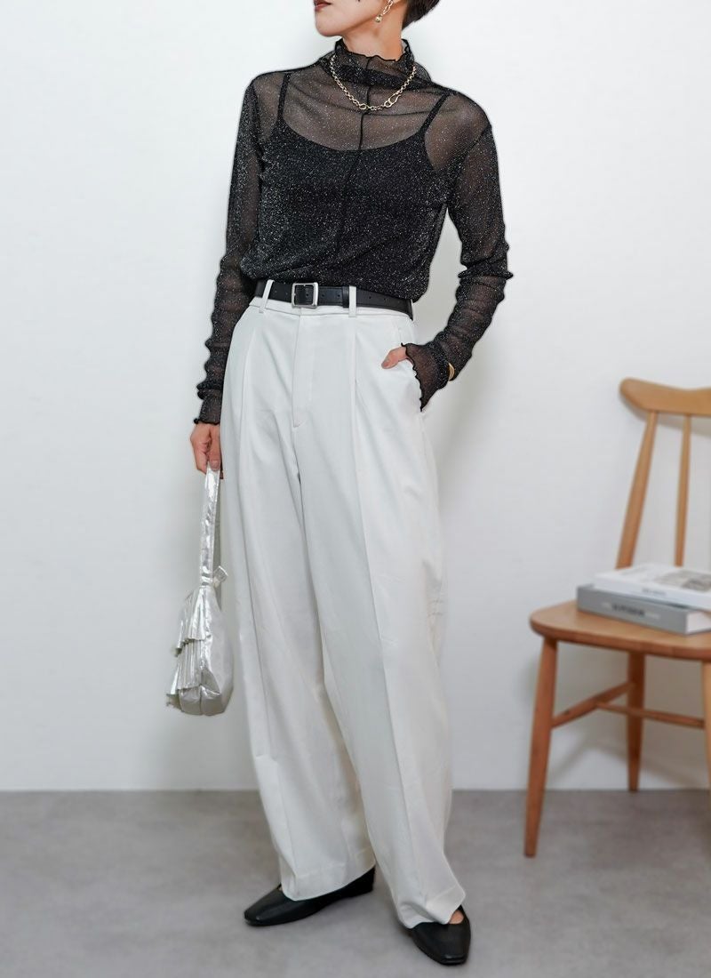revoam【メロウフリルが女性らしさをプラス。重ね着に映えるラメ入りプルオーバー】 【20%OFF】シアーラメメロウプルオーバー