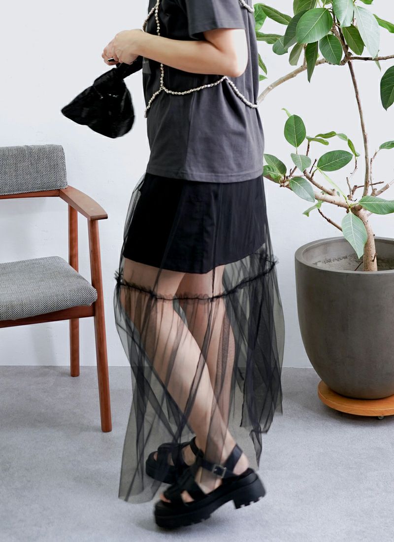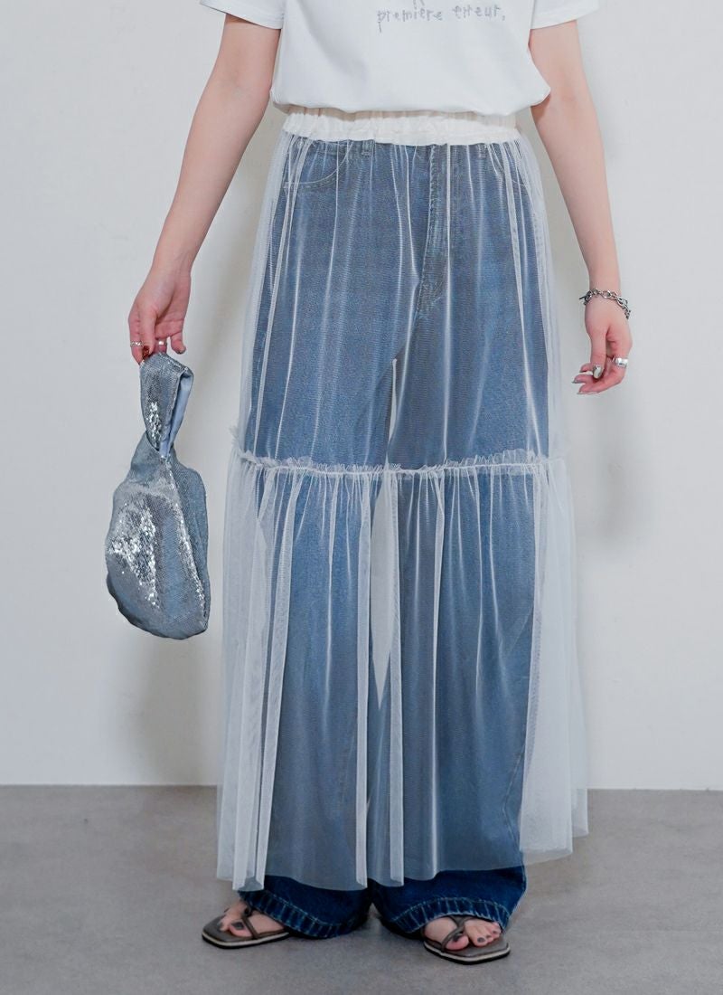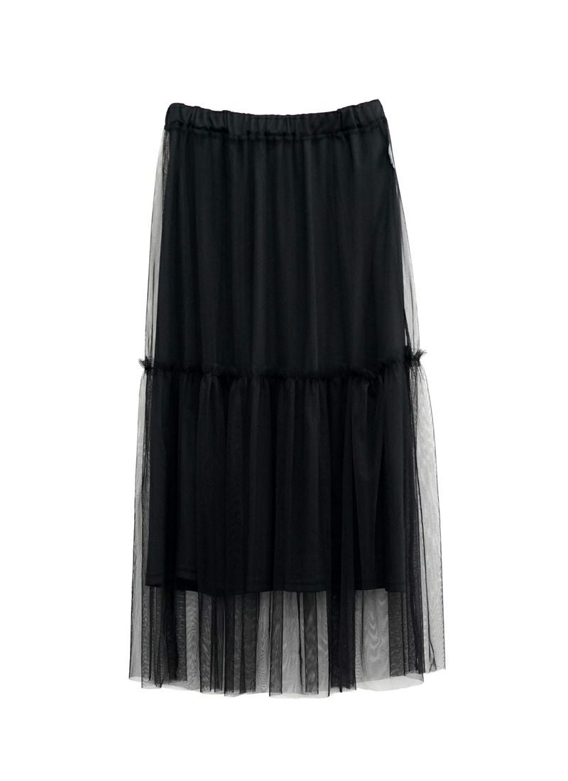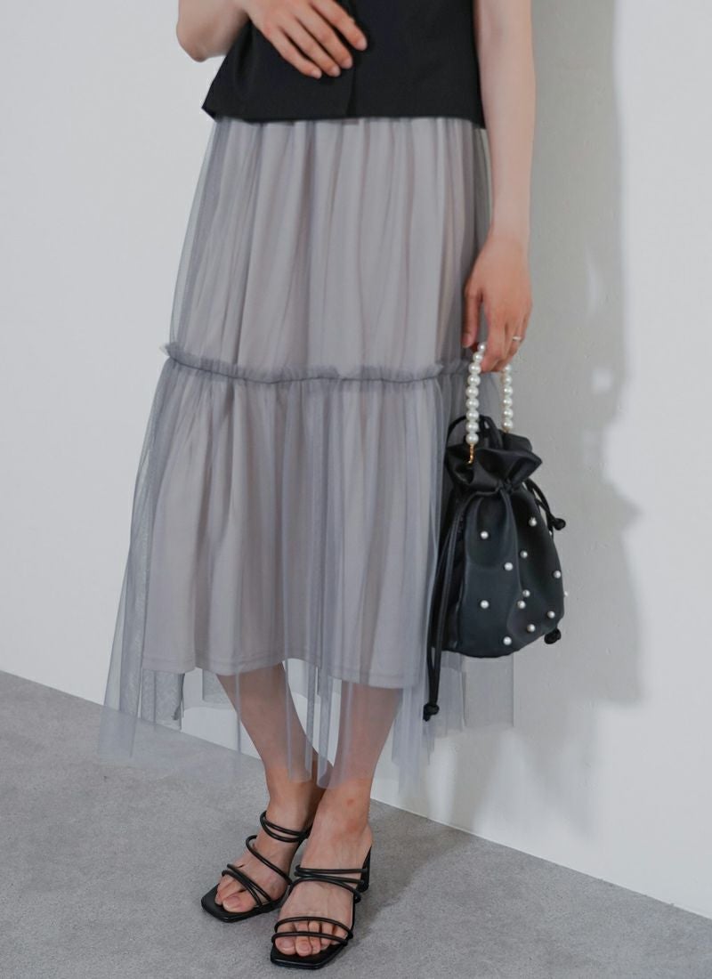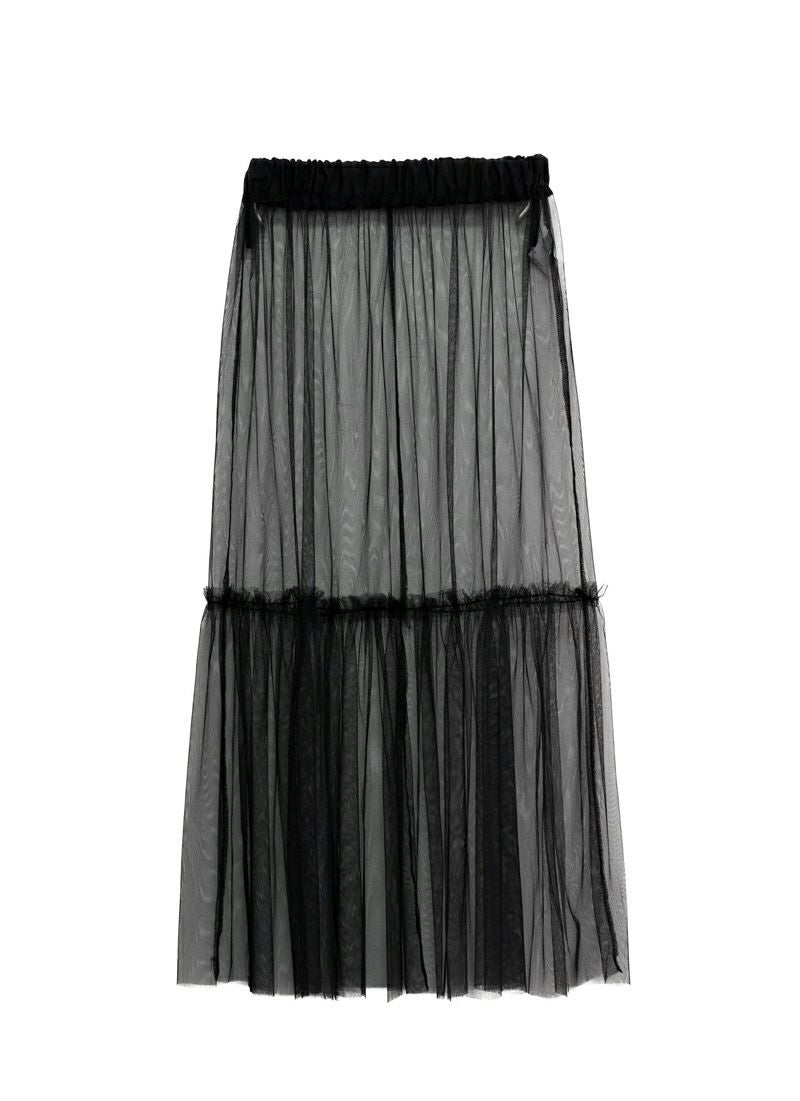 revoam【軽やかに、甘さをまとう。上品チュール×ふんわりギャザーで、きれいめフェミニンに】 【15%OFF】チュールシアー ギャザーフレアスカート