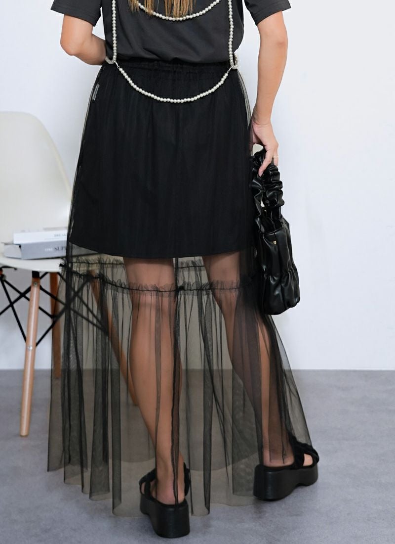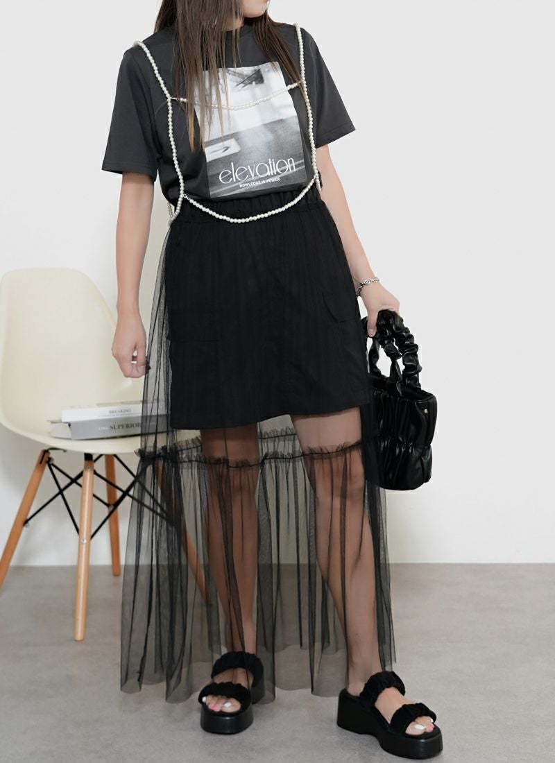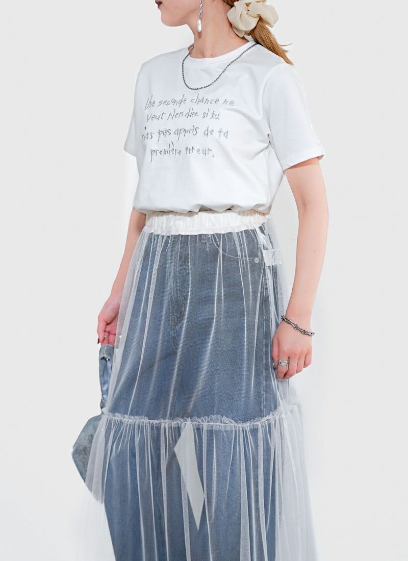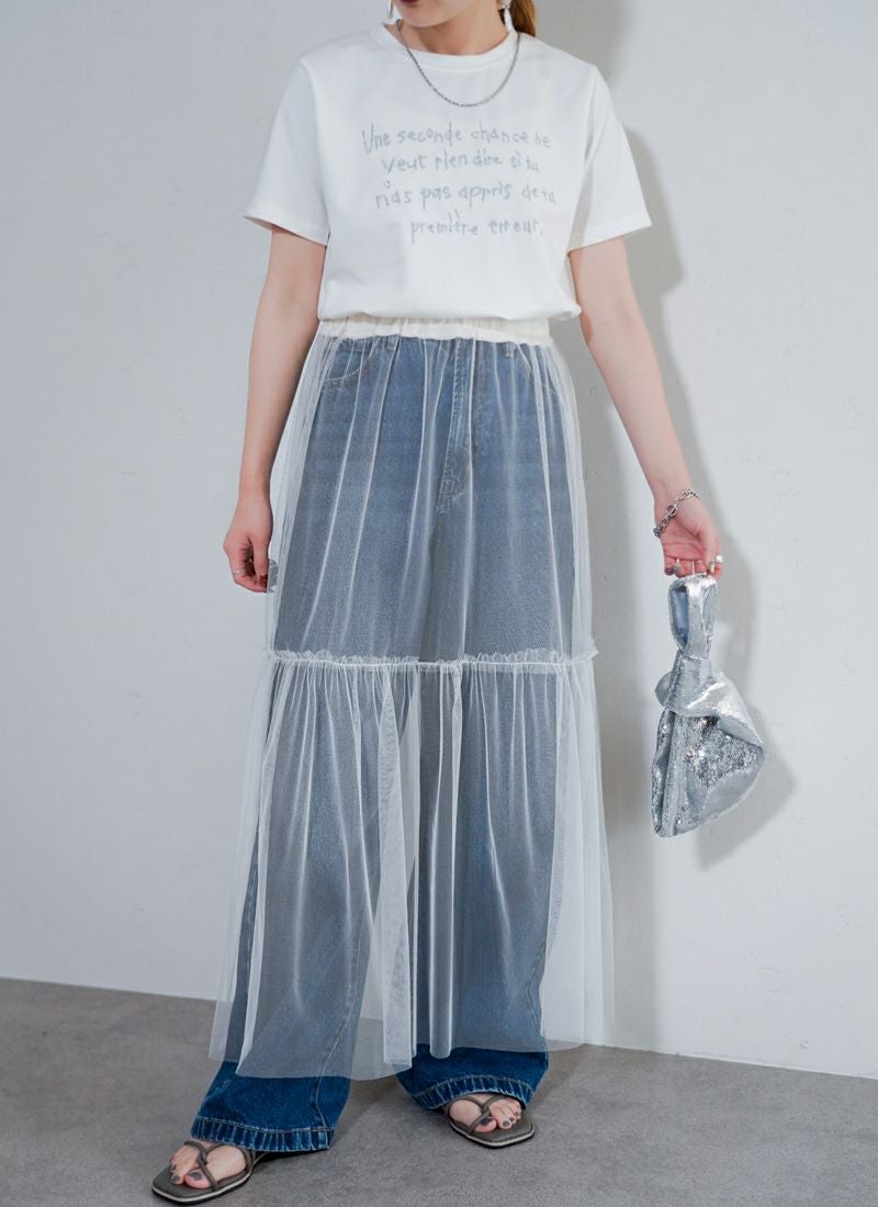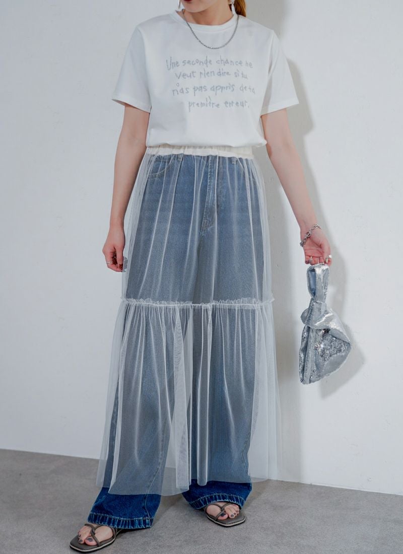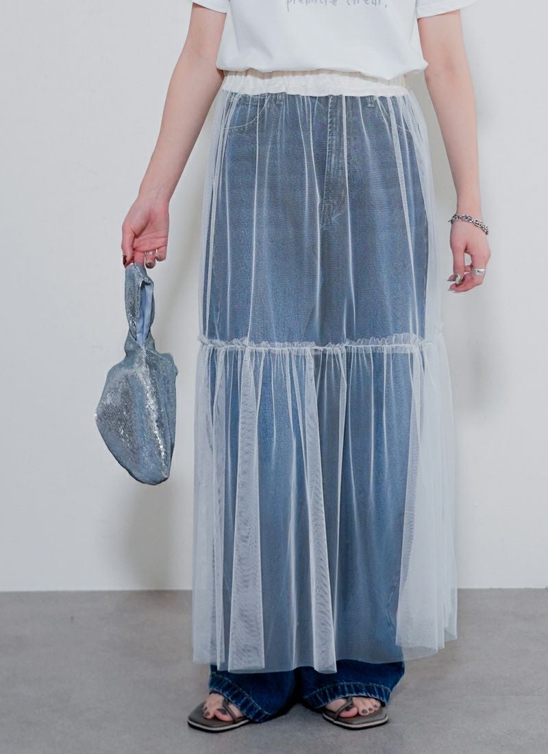 revoam【軽やかに、甘さをまとう。上品チュール×ふんわりギャザーで、きれいめフェミニンに】 【15%OFF】チュールシアー ギャザーフレアスカート