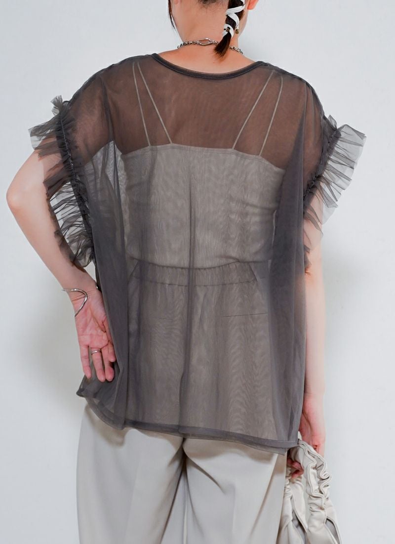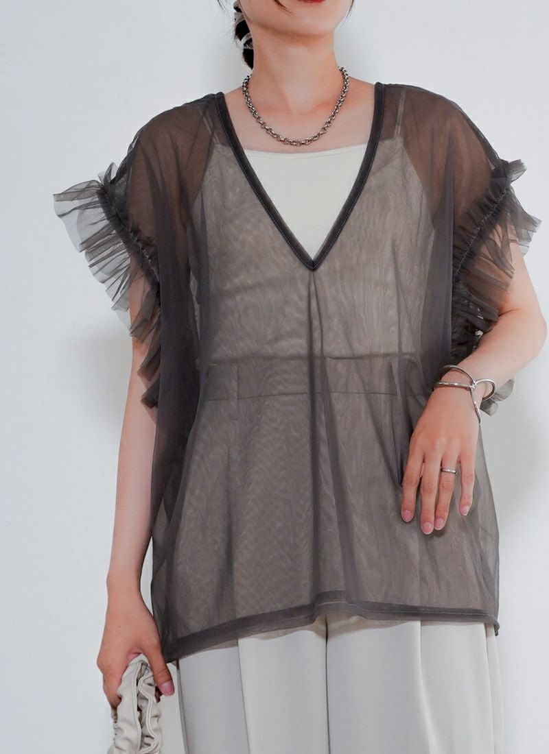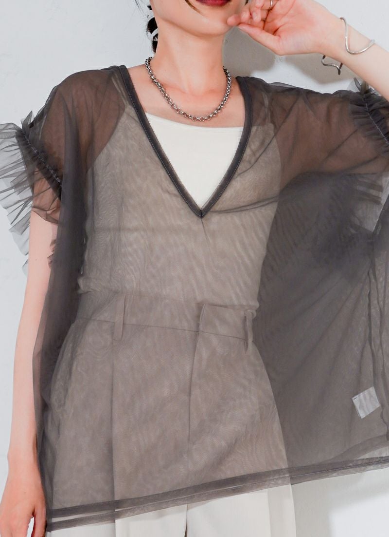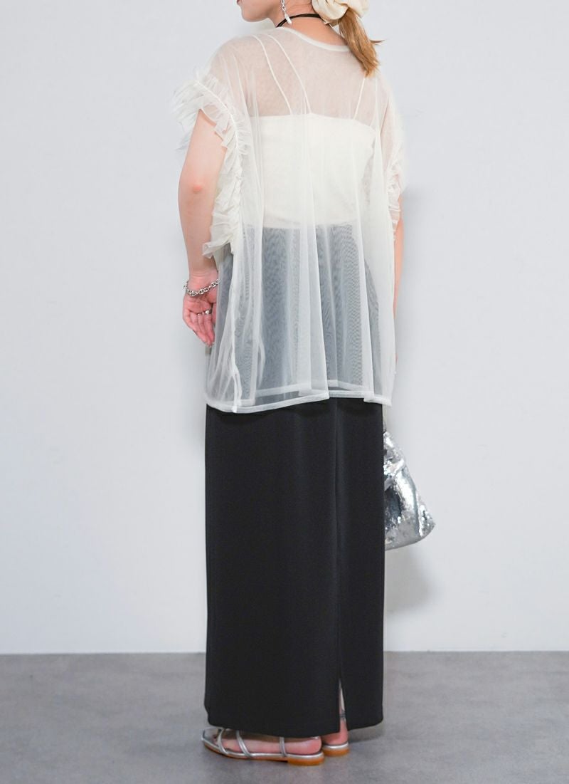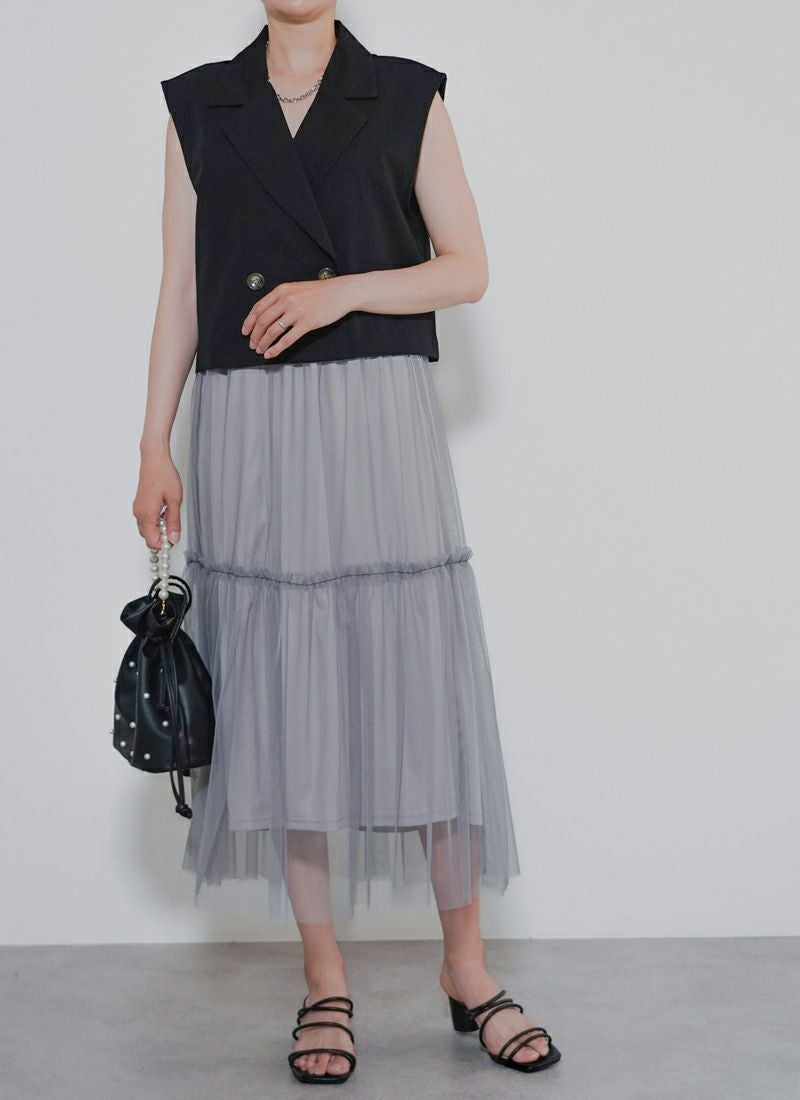 revoam【透け感×フリルで魅せる、大人のフェミニンレイヤード。Tシャツやワンピに重ねて、いつものコーデをブラッシュアップ】 【15%OFF】シアーチュールベスト
