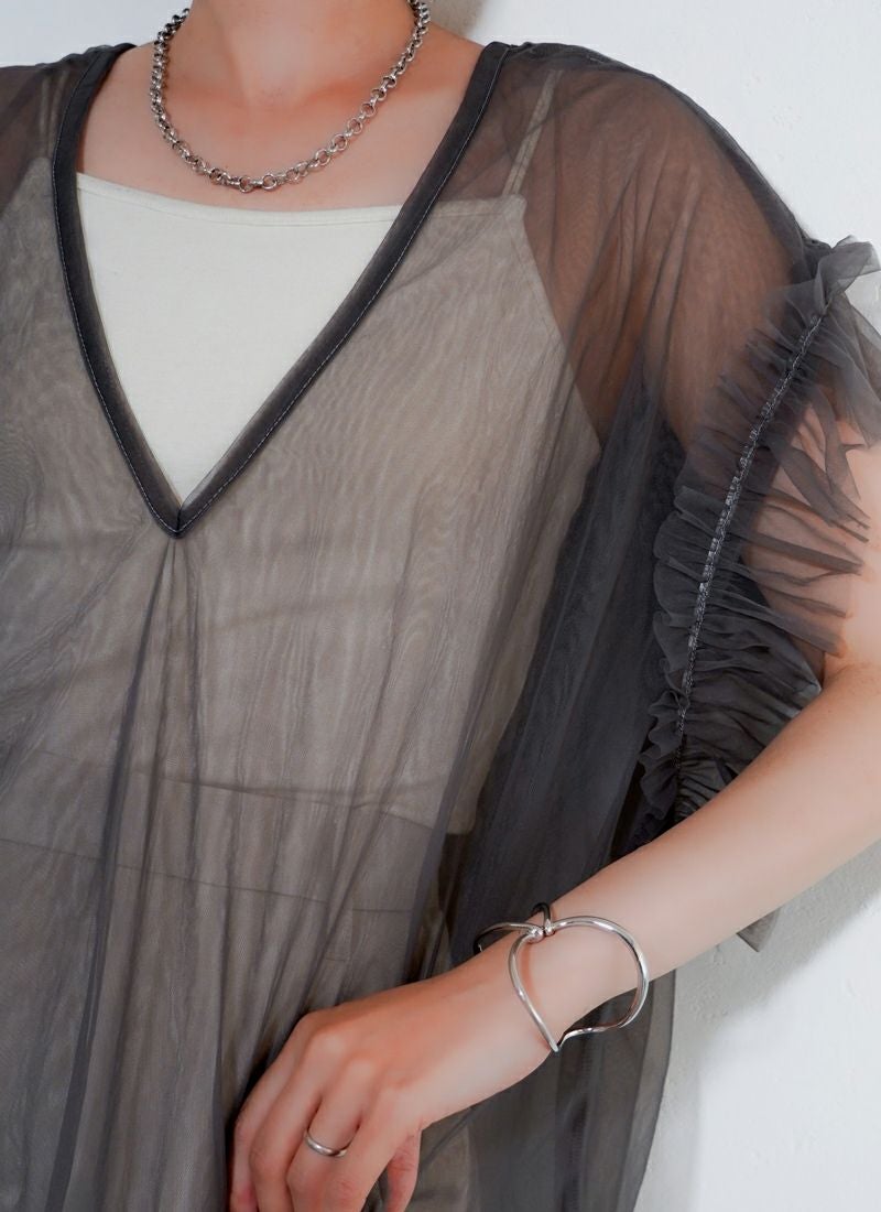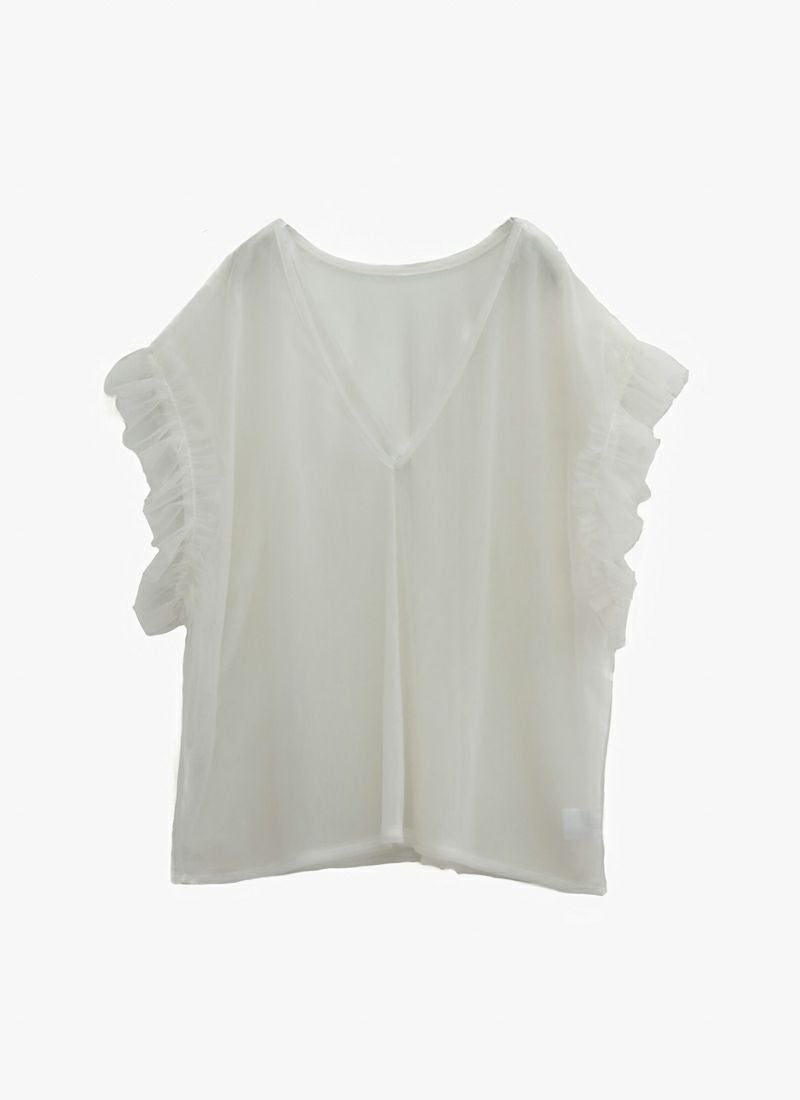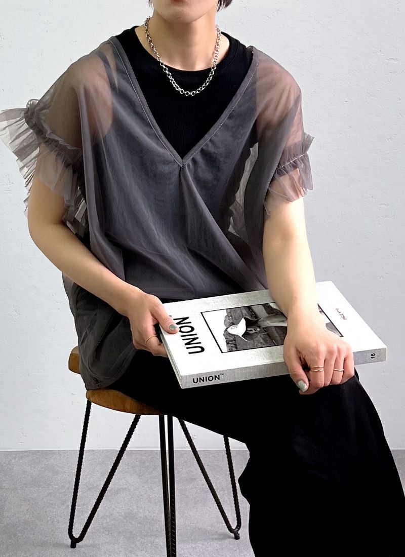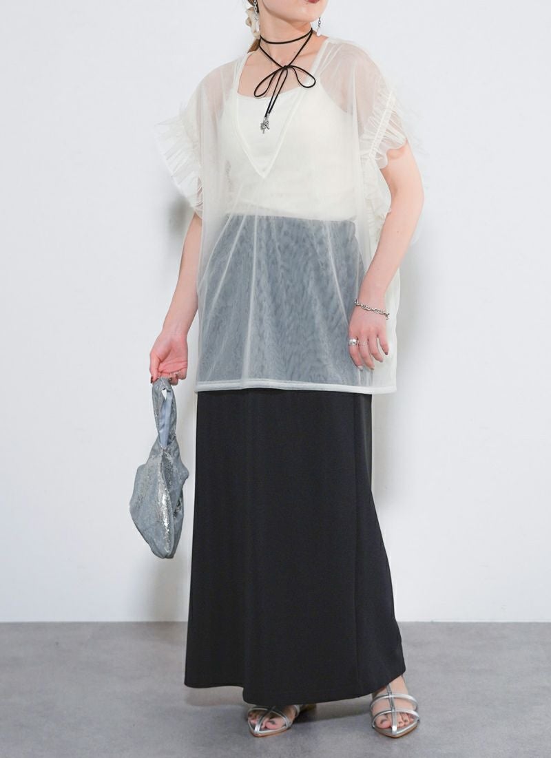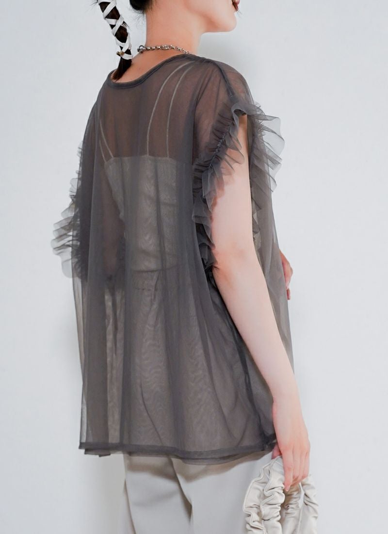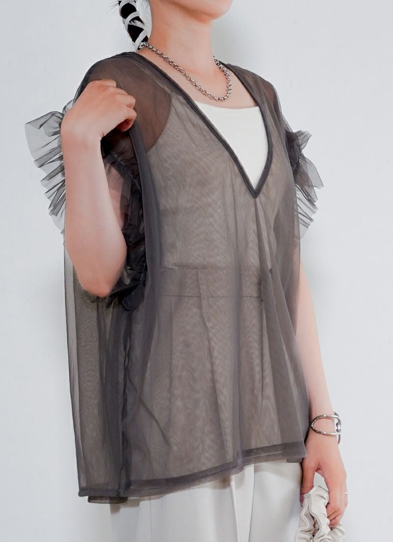revoam【透け感×フリルで魅せる、大人のフェミニンレイヤード。Tシャツやワンピに重ねて、いつものコーデをブラッシュアップ】 【15%OFF】シアーチュールベスト