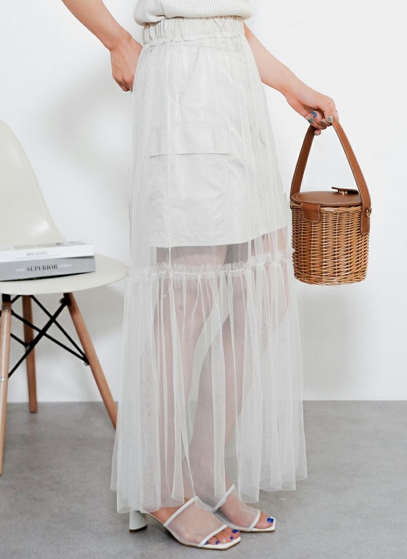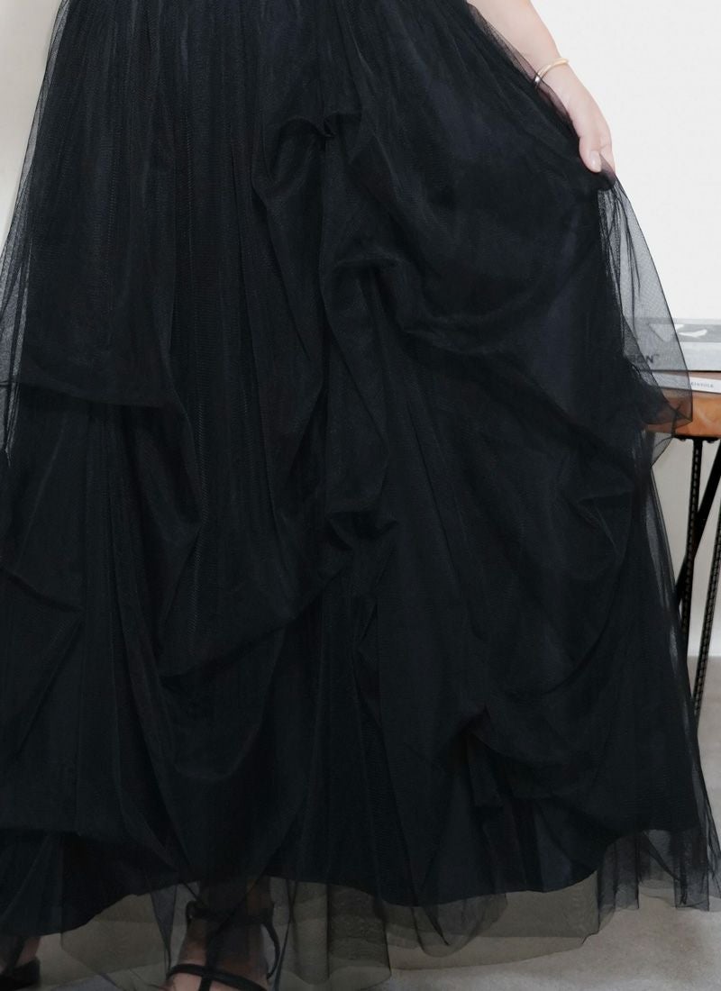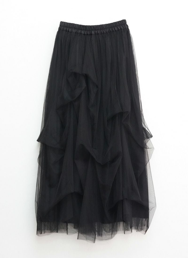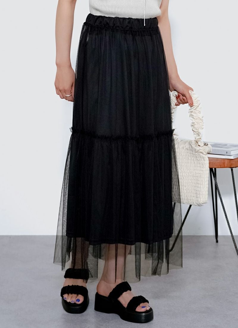 revoam【大人フェミニンに着こなす、ふんわり軽やかロングスカート】 【25%OFF】タックボリューム チュールスカート