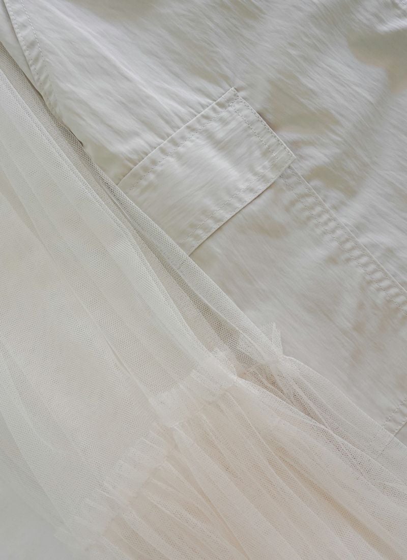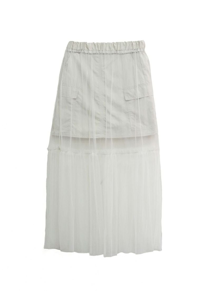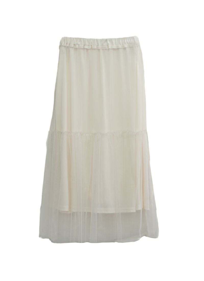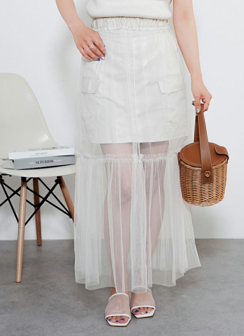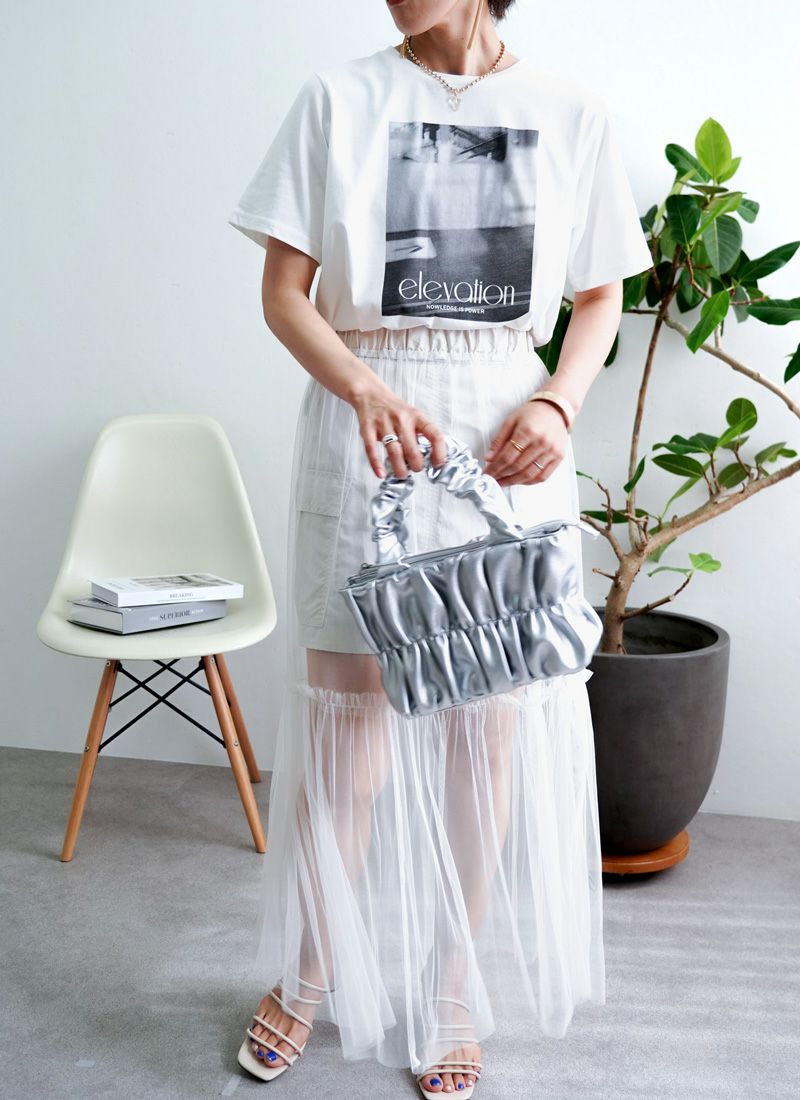 revoam【透け感×ボリュームが、ひと目で可愛い。動きに揺れる、レイヤードチュールスカート】 【25%OFF】タフタ×チュール レイヤードスカート