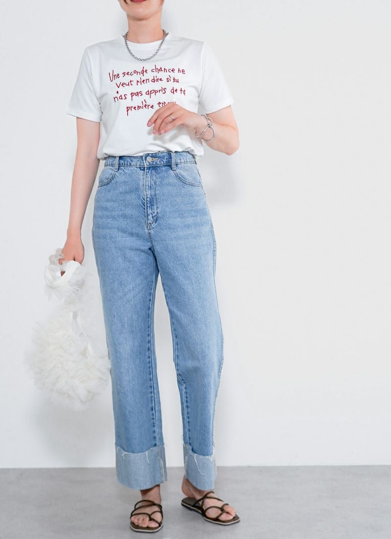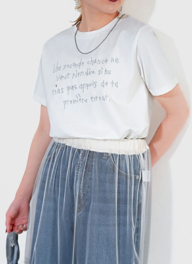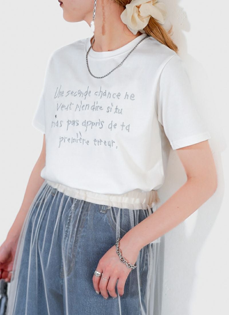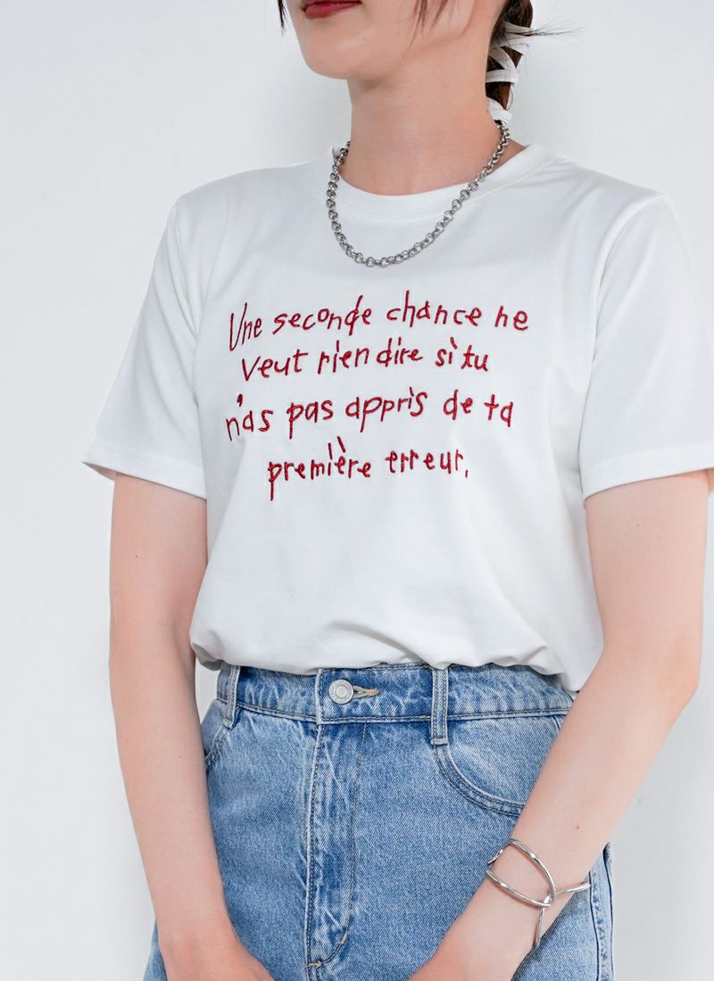 revoam【コーデの主役になる、フレンチロゴ×刺繍の映えT】 【40%OFF】ラメ糸刺繍ロゴTシャツ