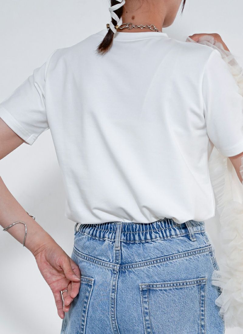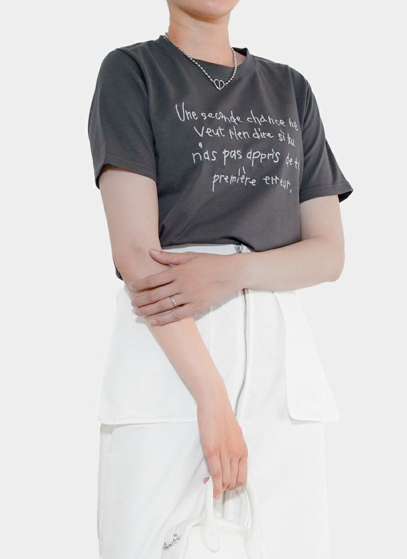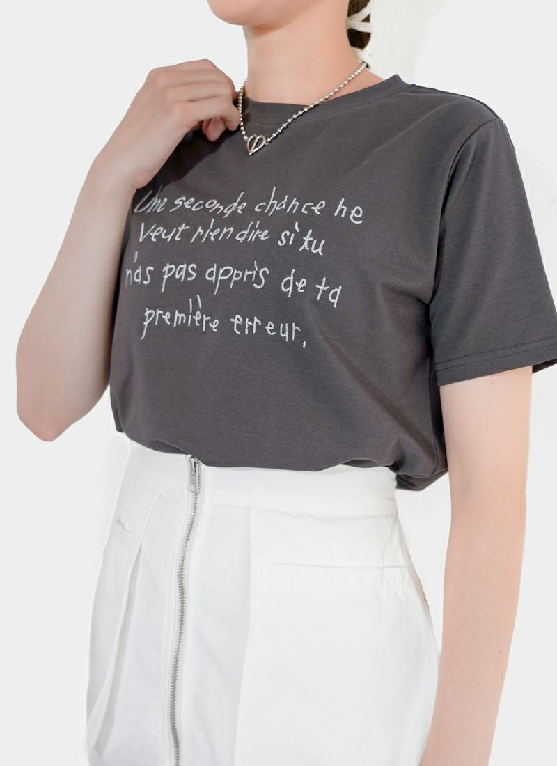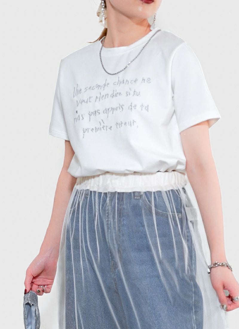 revoam【コーデの主役になる、フレンチロゴ×刺繍の映えT】 【40%OFF】ラメ糸刺繍ロゴTシャツ