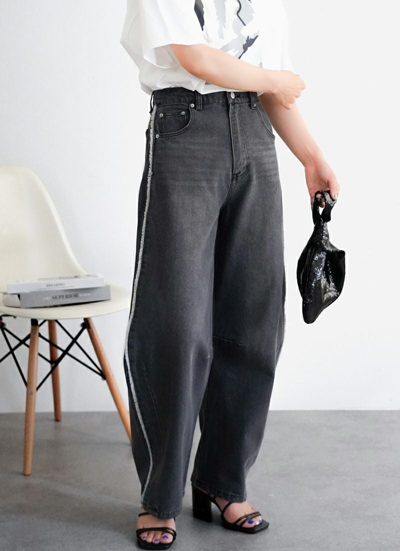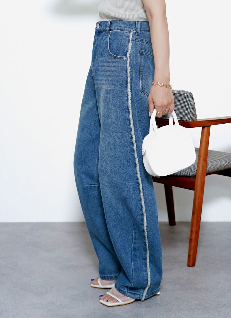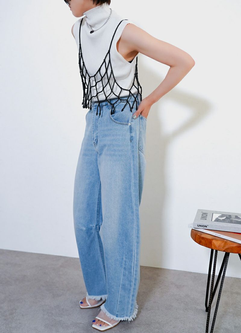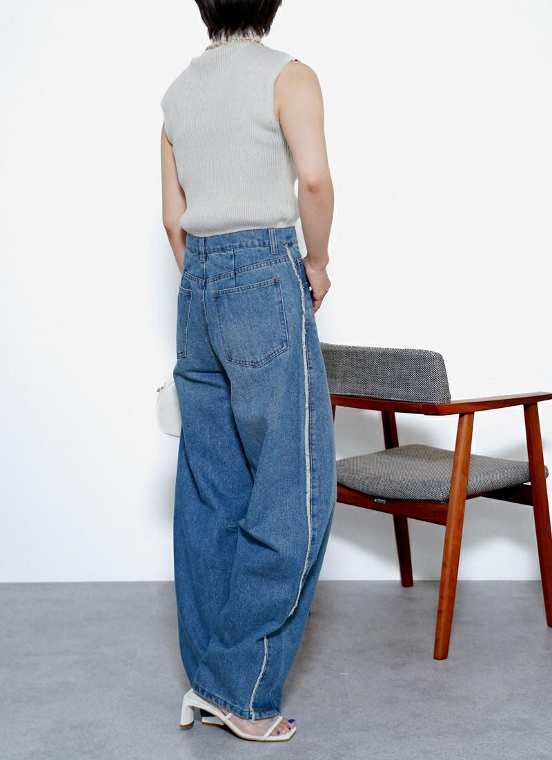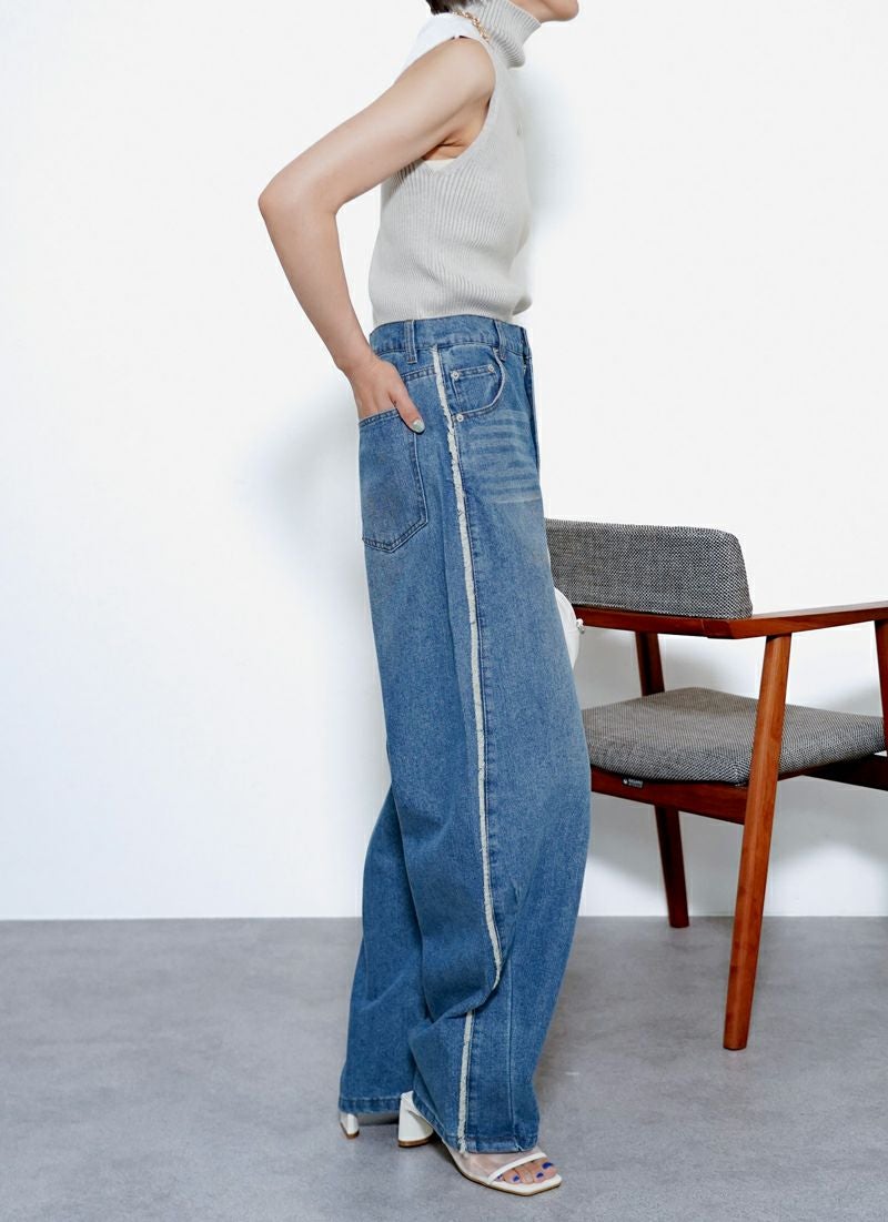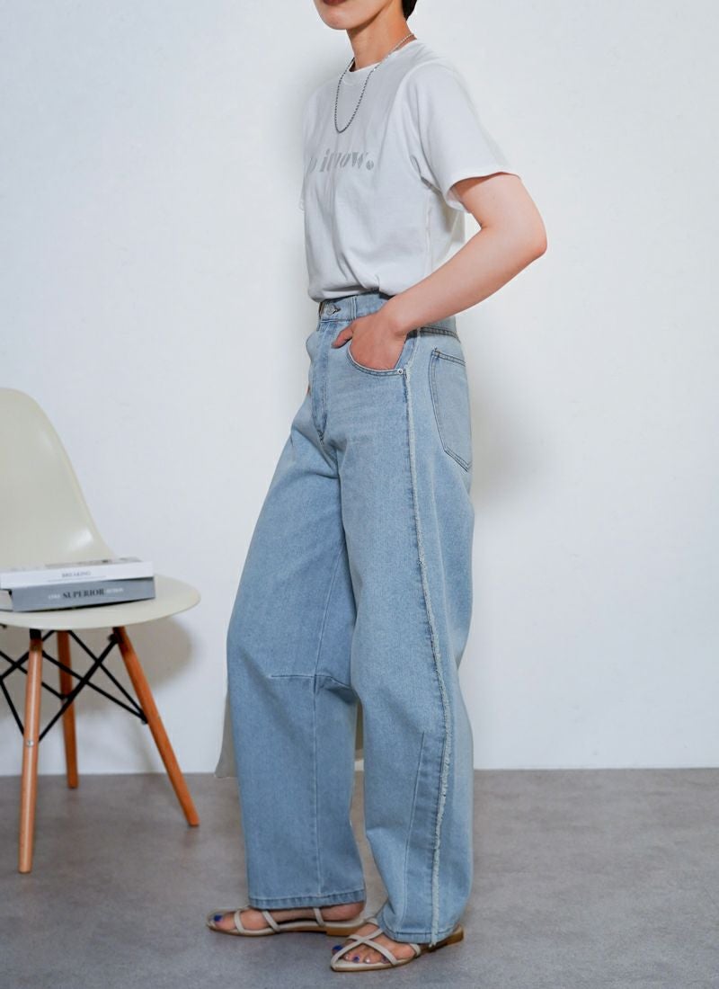 revoam【ゆるっと感が、こなれの鍵。ラインで魅せる旬バランス、楽しておしゃれが叶う一本】 【10%OFF】サイドフリンジデニム カーブパンツ