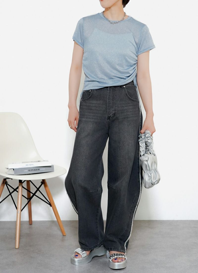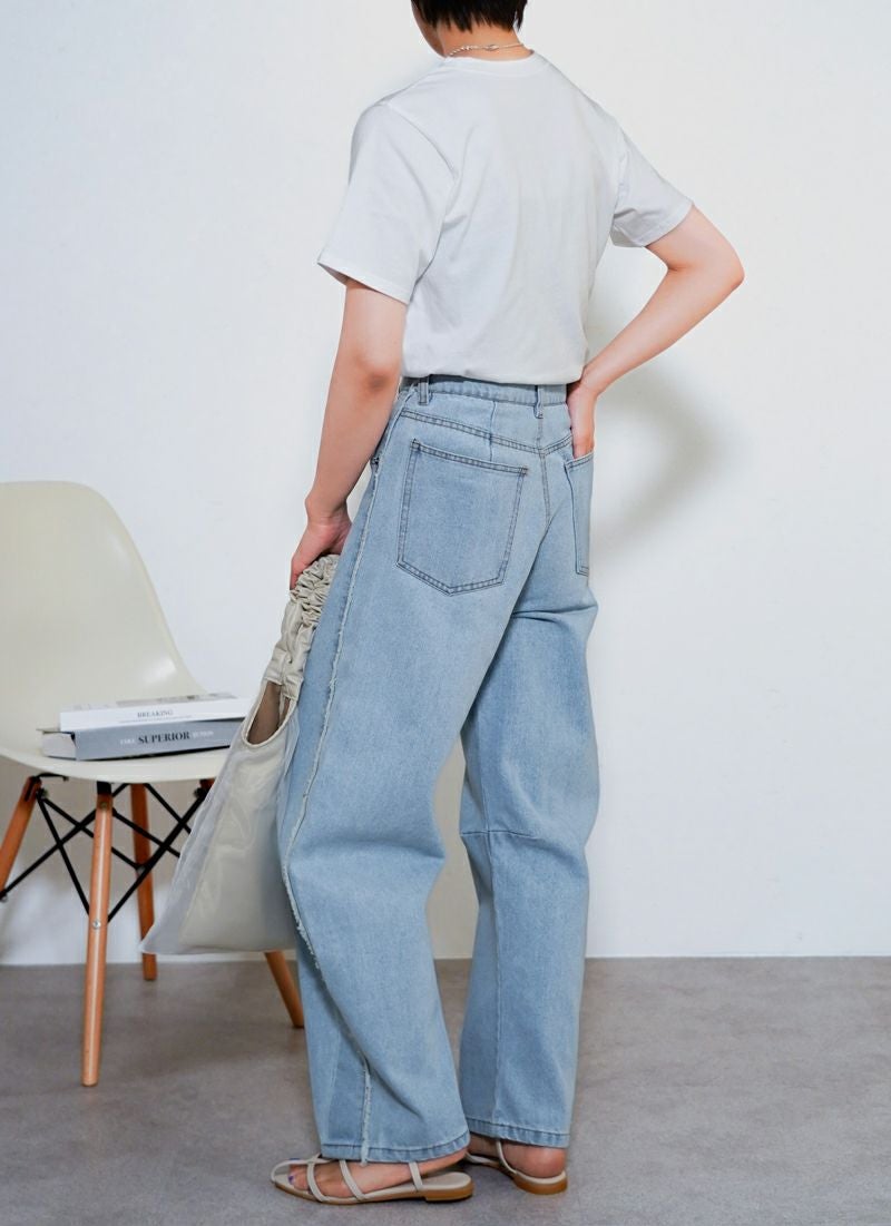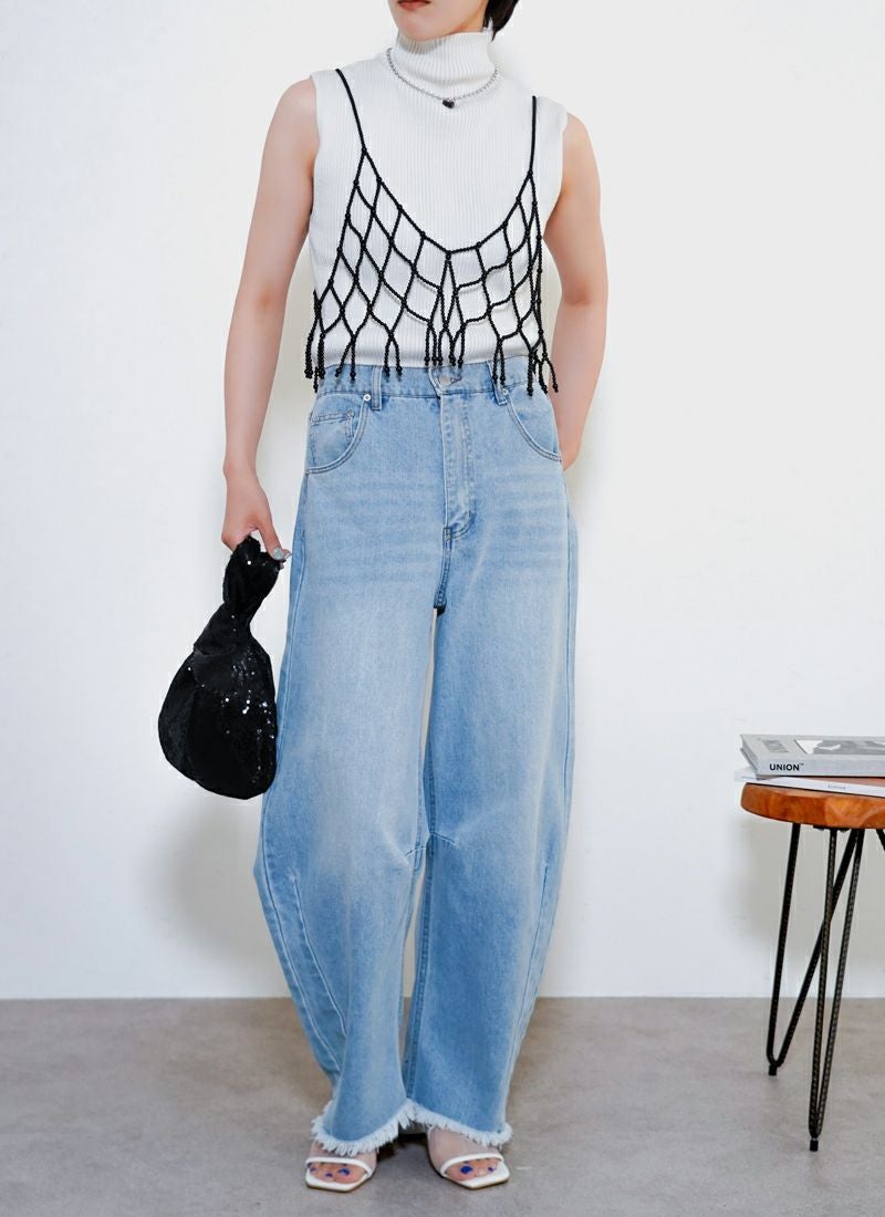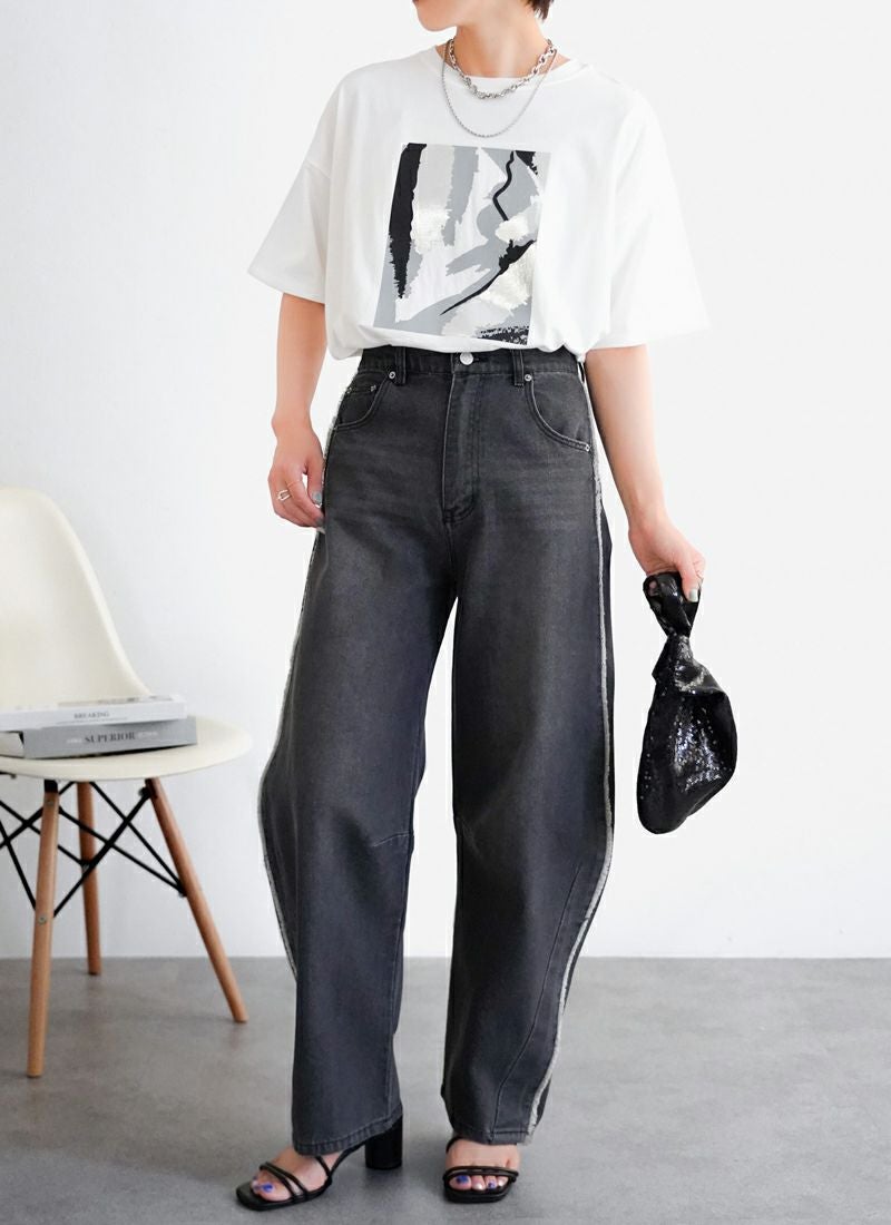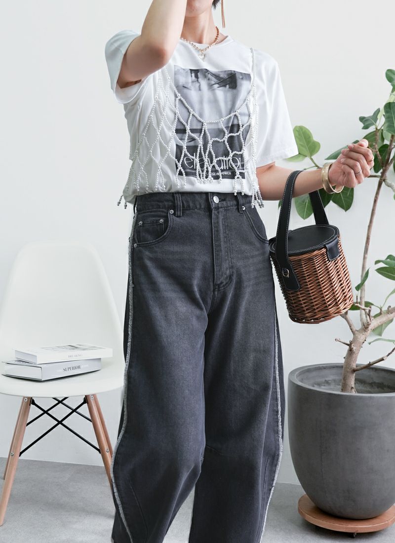 revoam【ゆるっと感が、こなれの鍵。ラインで魅せる旬バランス、楽しておしゃれが叶う一本】 【10%OFF】サイドフリンジデニム カーブパンツ