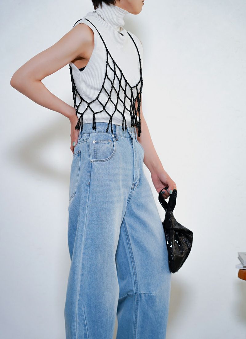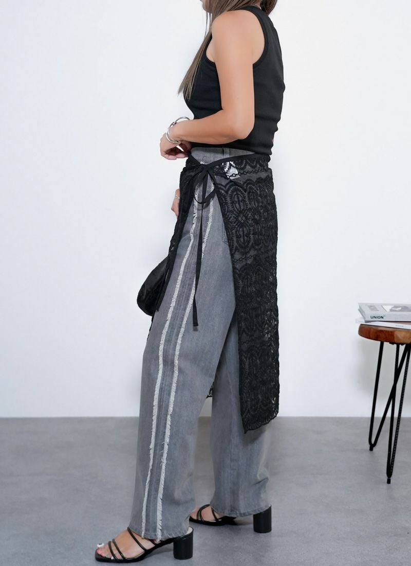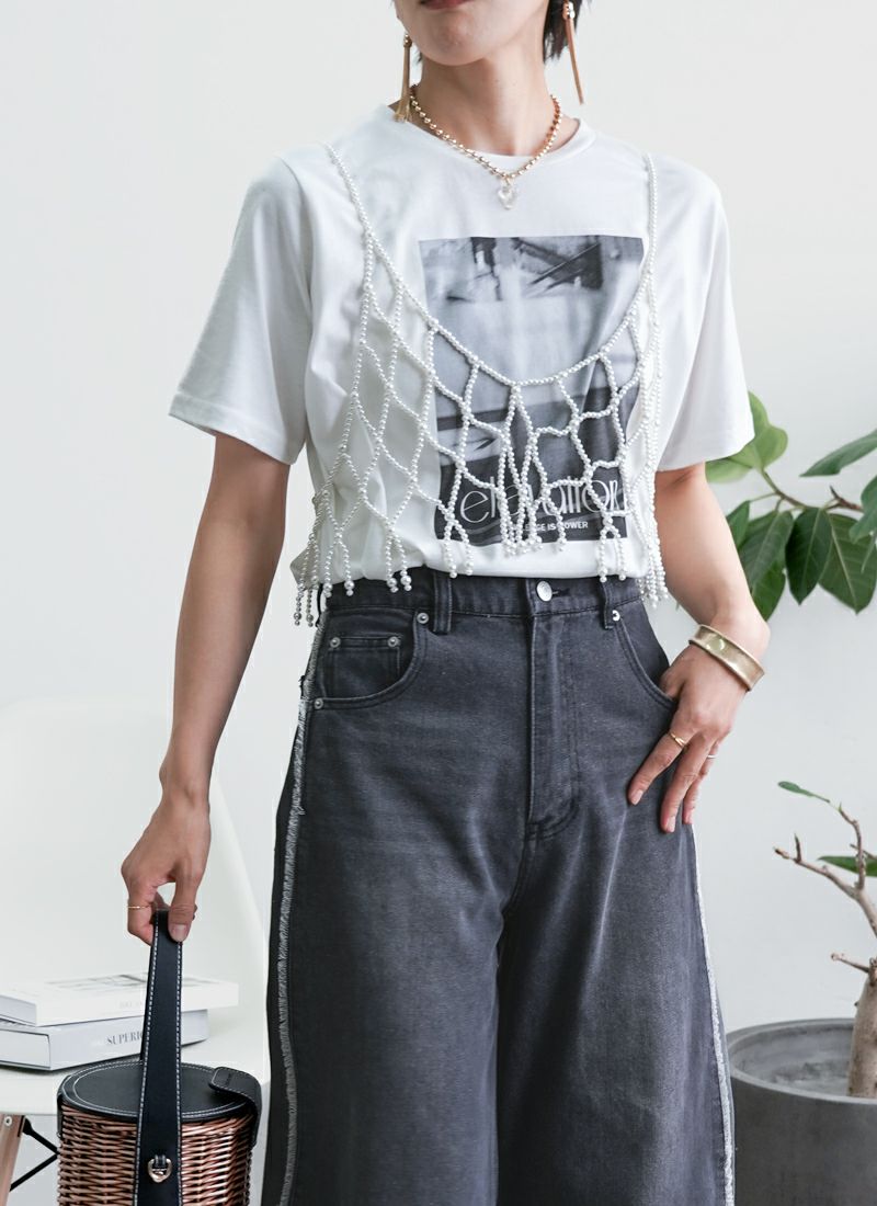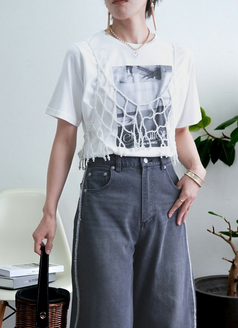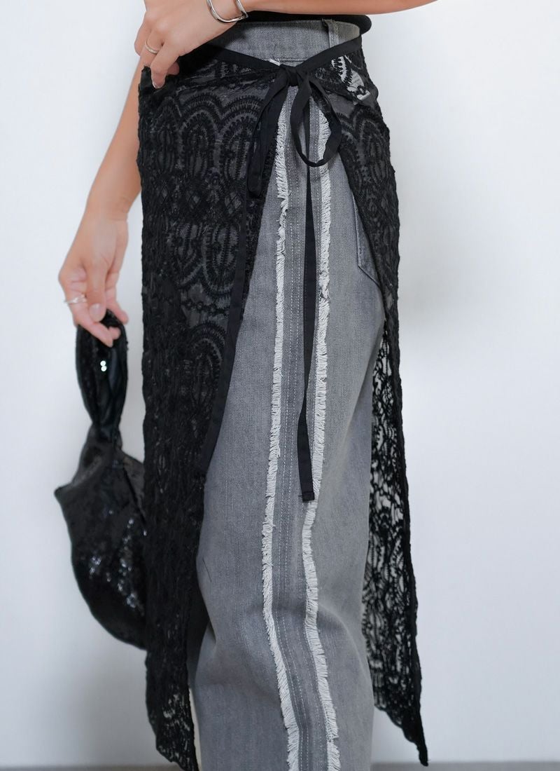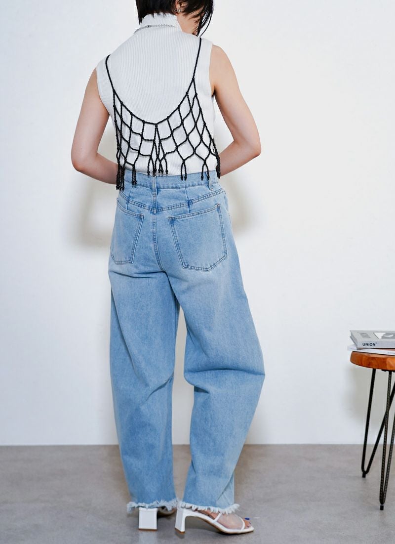 revoam【ゆるっと感が、こなれの鍵。ラインで魅せる旬バランス、楽しておしゃれが叶う一本】 【10%OFF】サイドフリンジデニム カーブパンツ