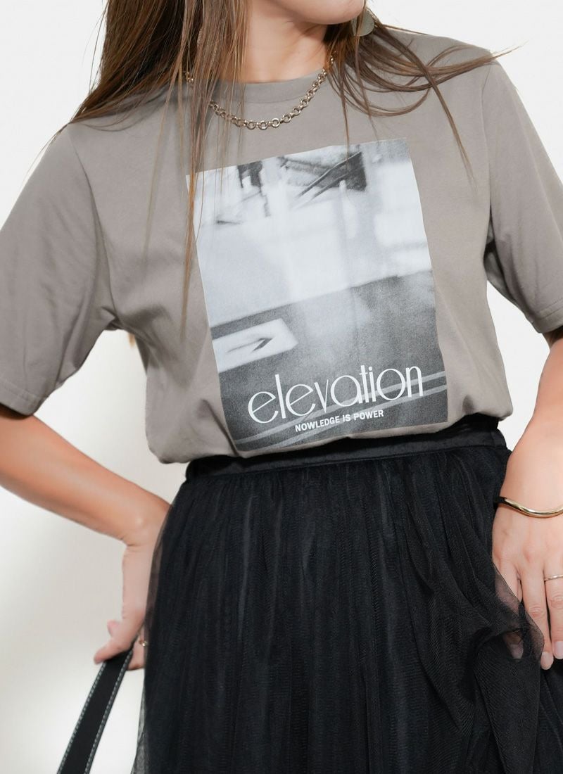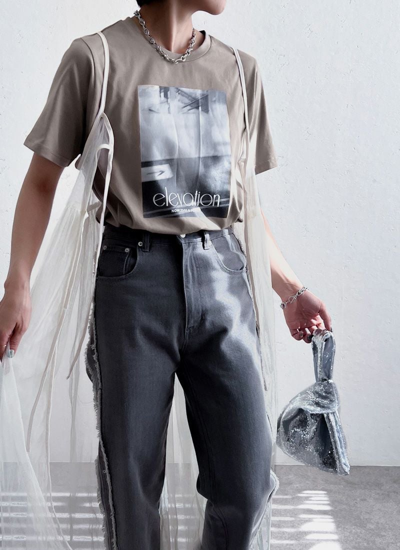 revoam【シンプルな中に、さりげない存在感。ニュアンスカラーで、大人の夏スタイルに映える1枚】 【40%OFF】フォト&ロゴプリントTシャツ