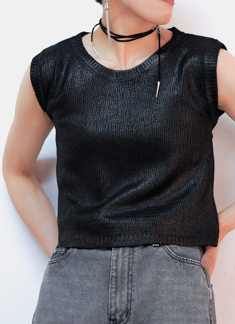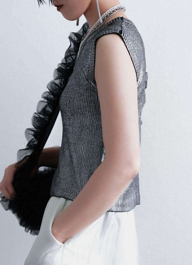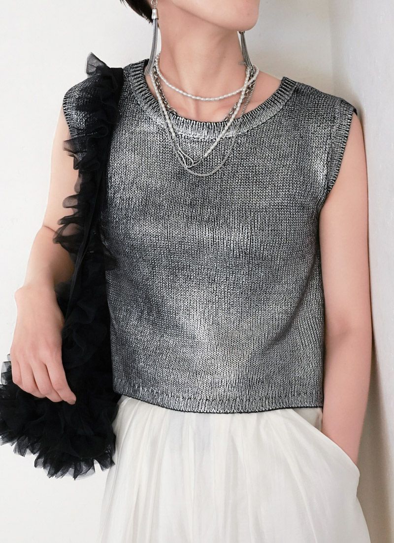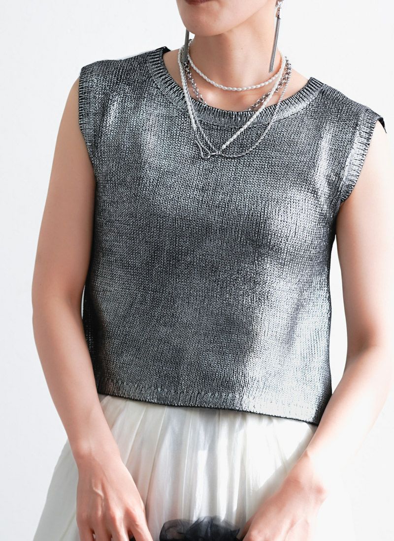 revoam【シンプルなのに印象に残る。上品モードで大人の夏スタイルをアップデート】 【40%OFF】ショート丈箔ニットベスト