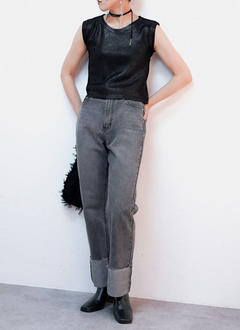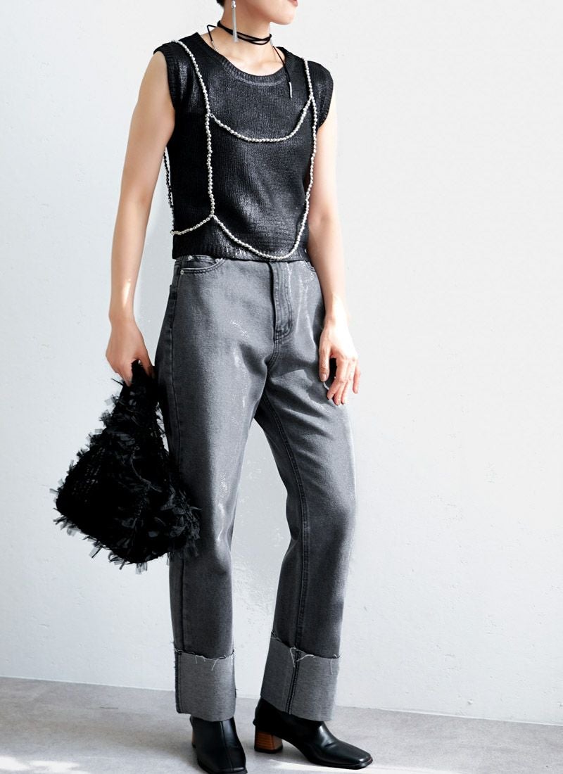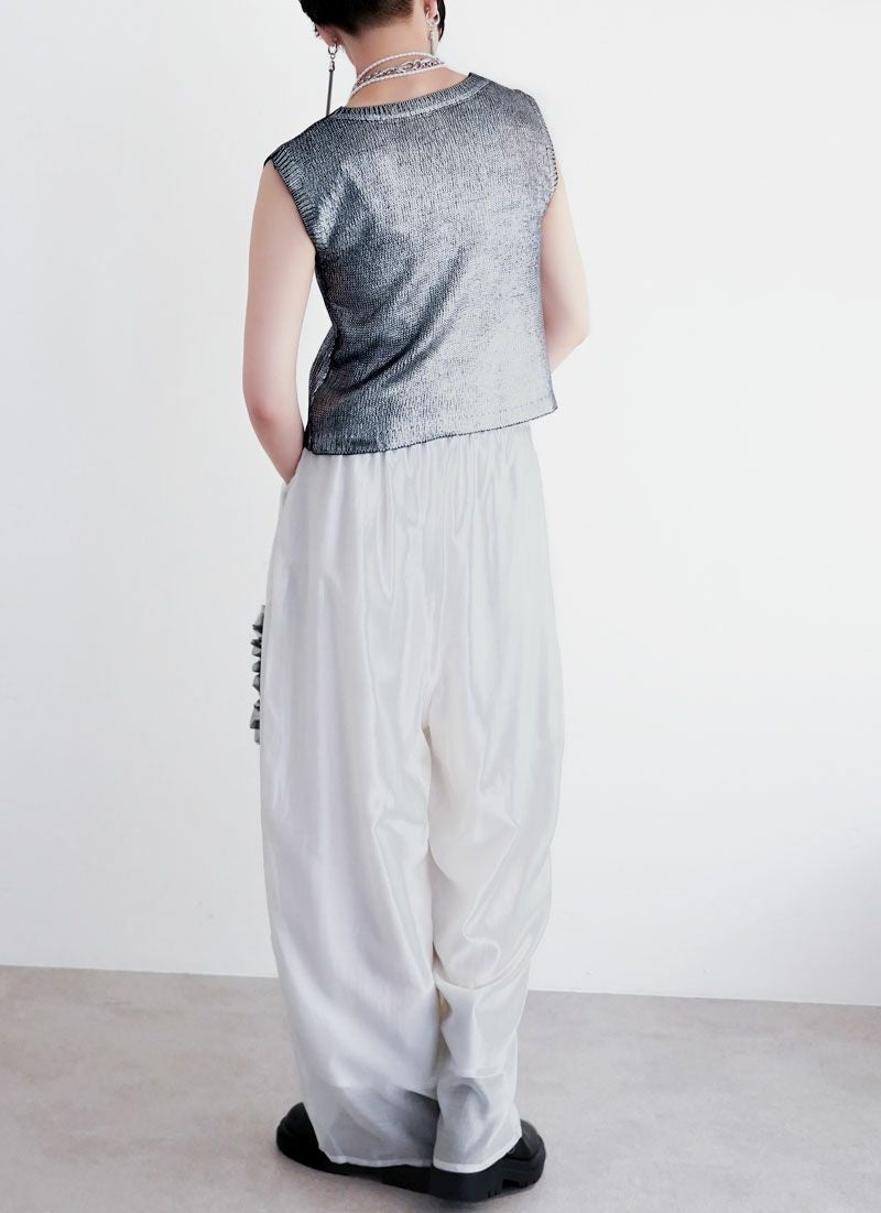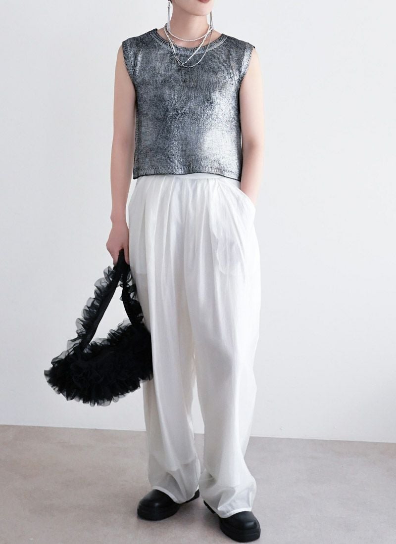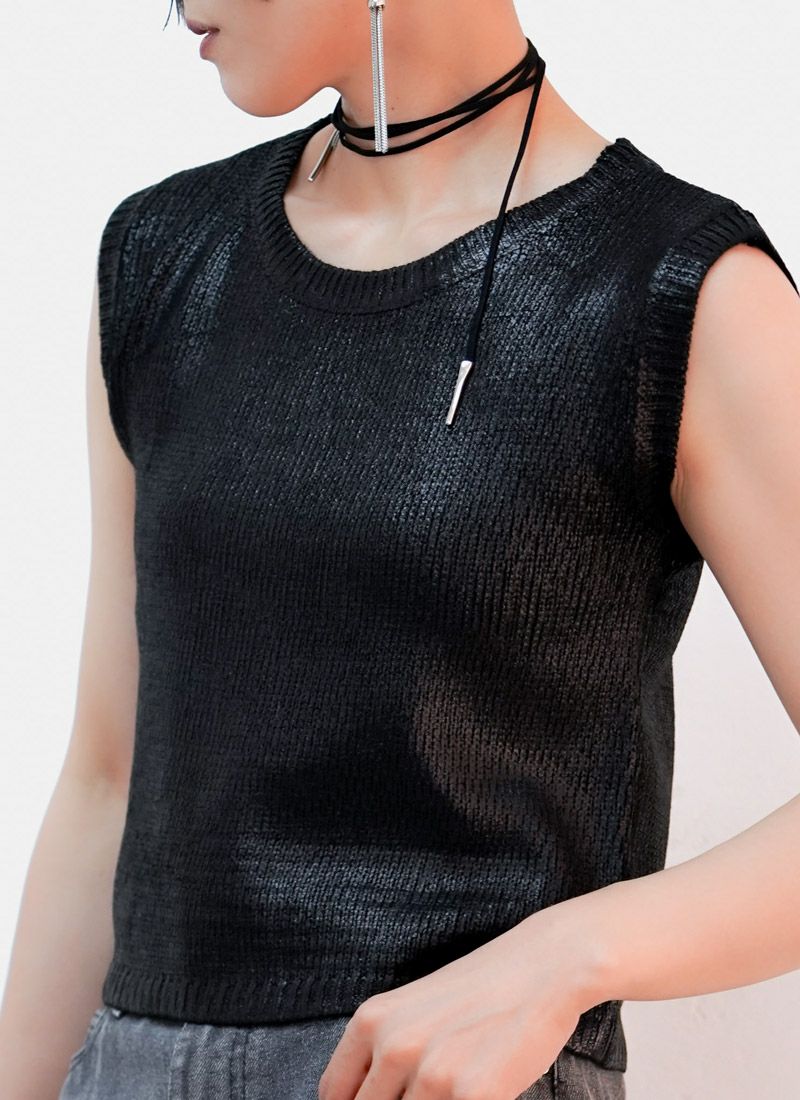 revoam【シンプルなのに印象に残る。上品モードで大人の夏スタイルをアップデート】 【40%OFF】ショート丈箔ニットベスト