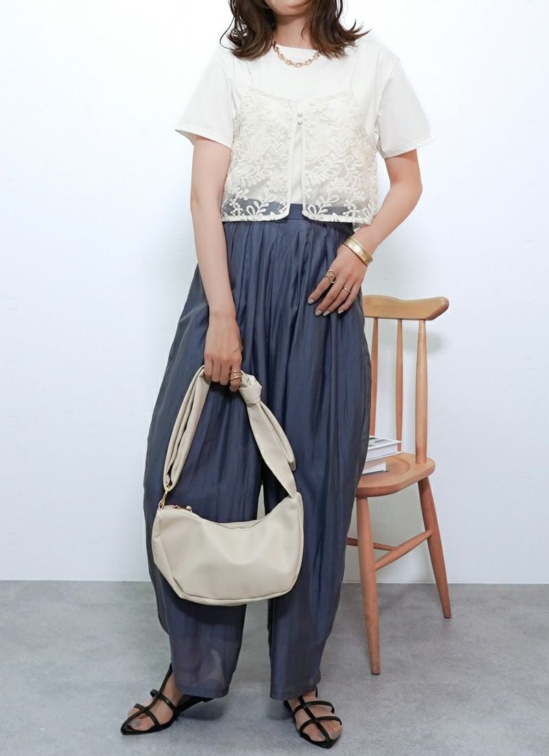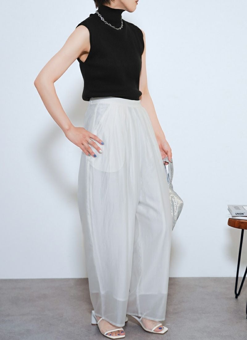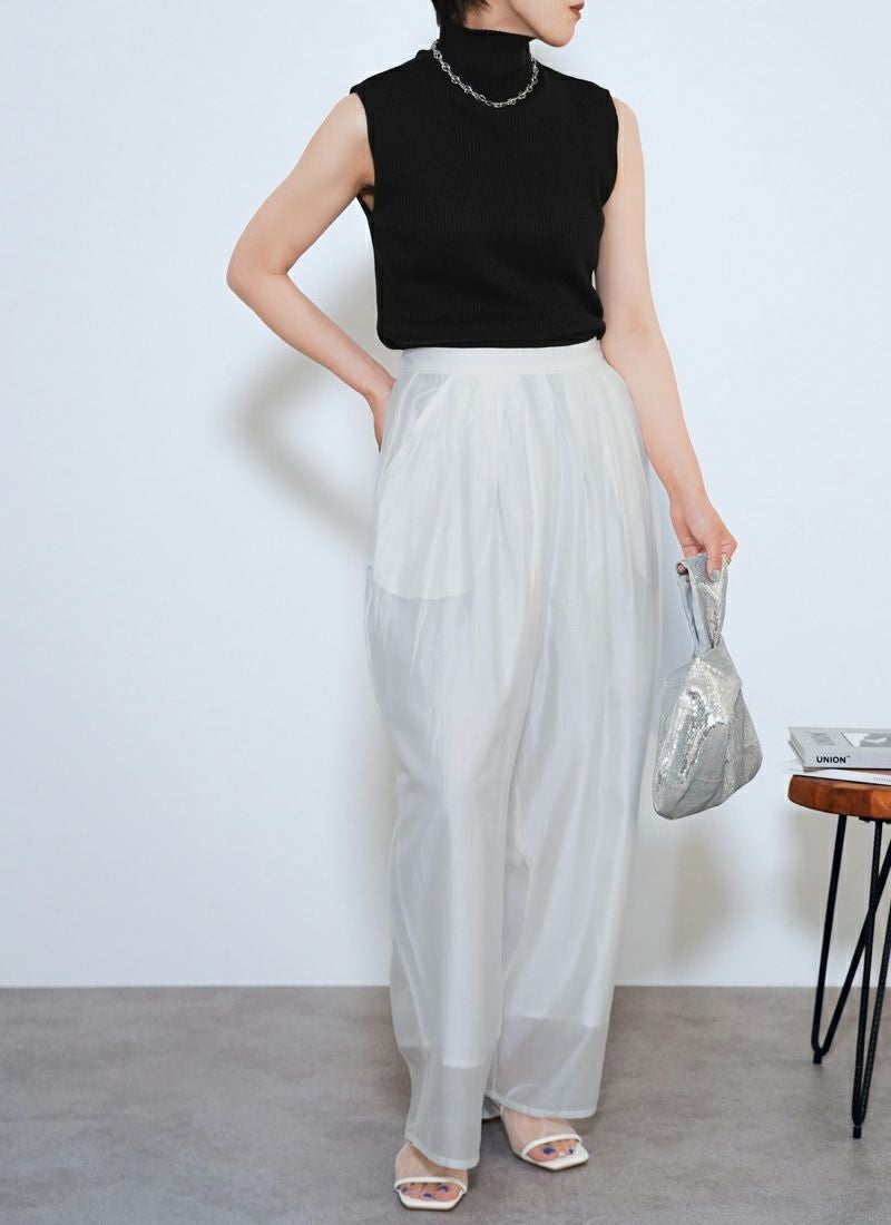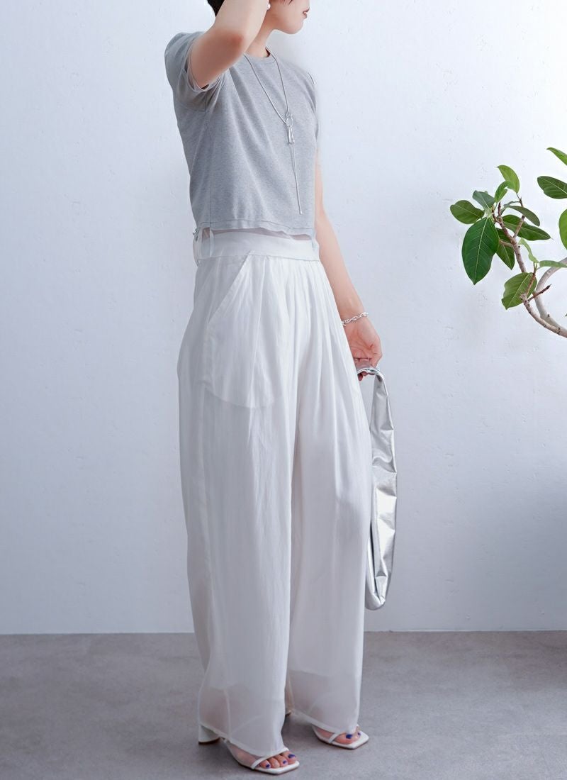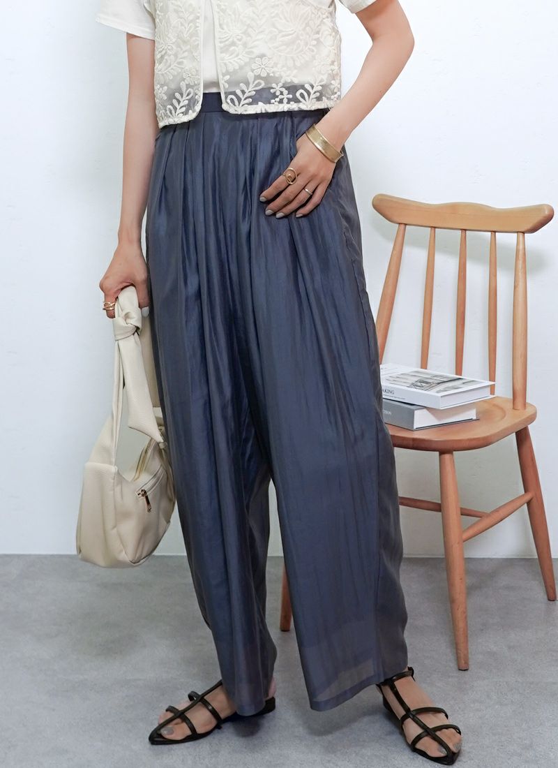 revoam【軽やかに涼しく、だけどきちんと見え。シアー感×タックで魅せる大人の涼感パンツ】 【15%OFF】シアーリヨセルスリータックパンツ