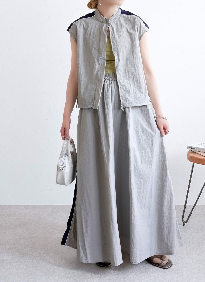 revoam【配色ストラップで魅せる、夏の主役キャミ。ナイロン素材とふんわりシルエットで涼しさも可愛さも両立】 【20%OFF】ナイロン配色ドロストキャミ