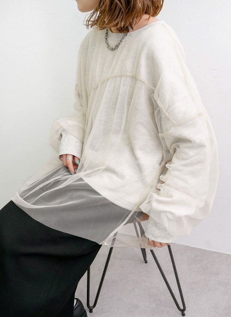 revoam【軽やかな透け感で抜け感をプラス。大人の余裕を感じさせるシアートップス】 【60%OFF】シアーコードオーバーTOPS