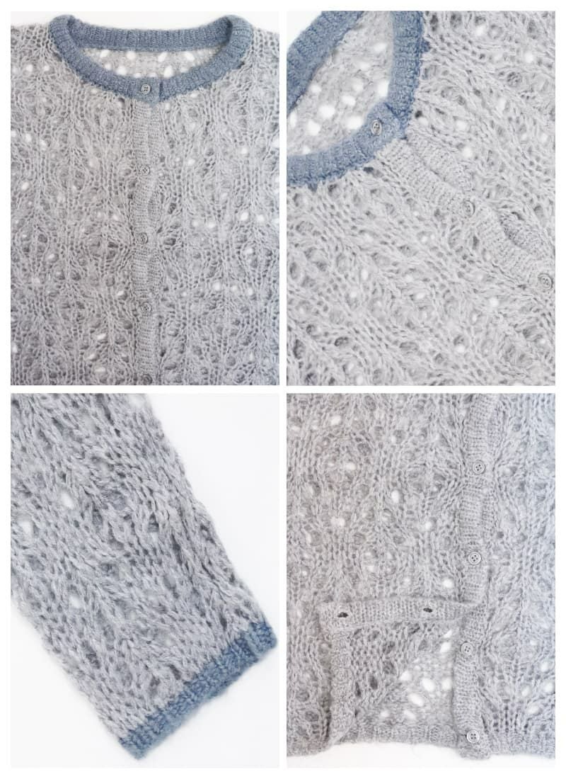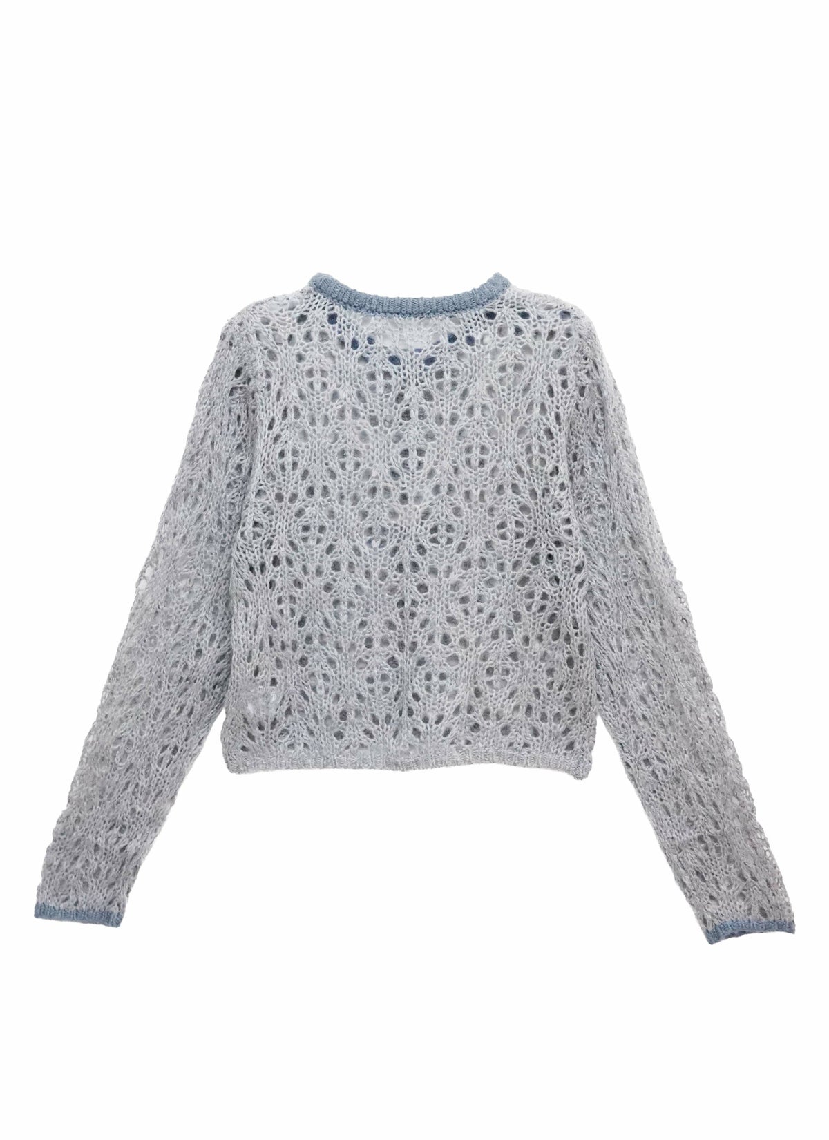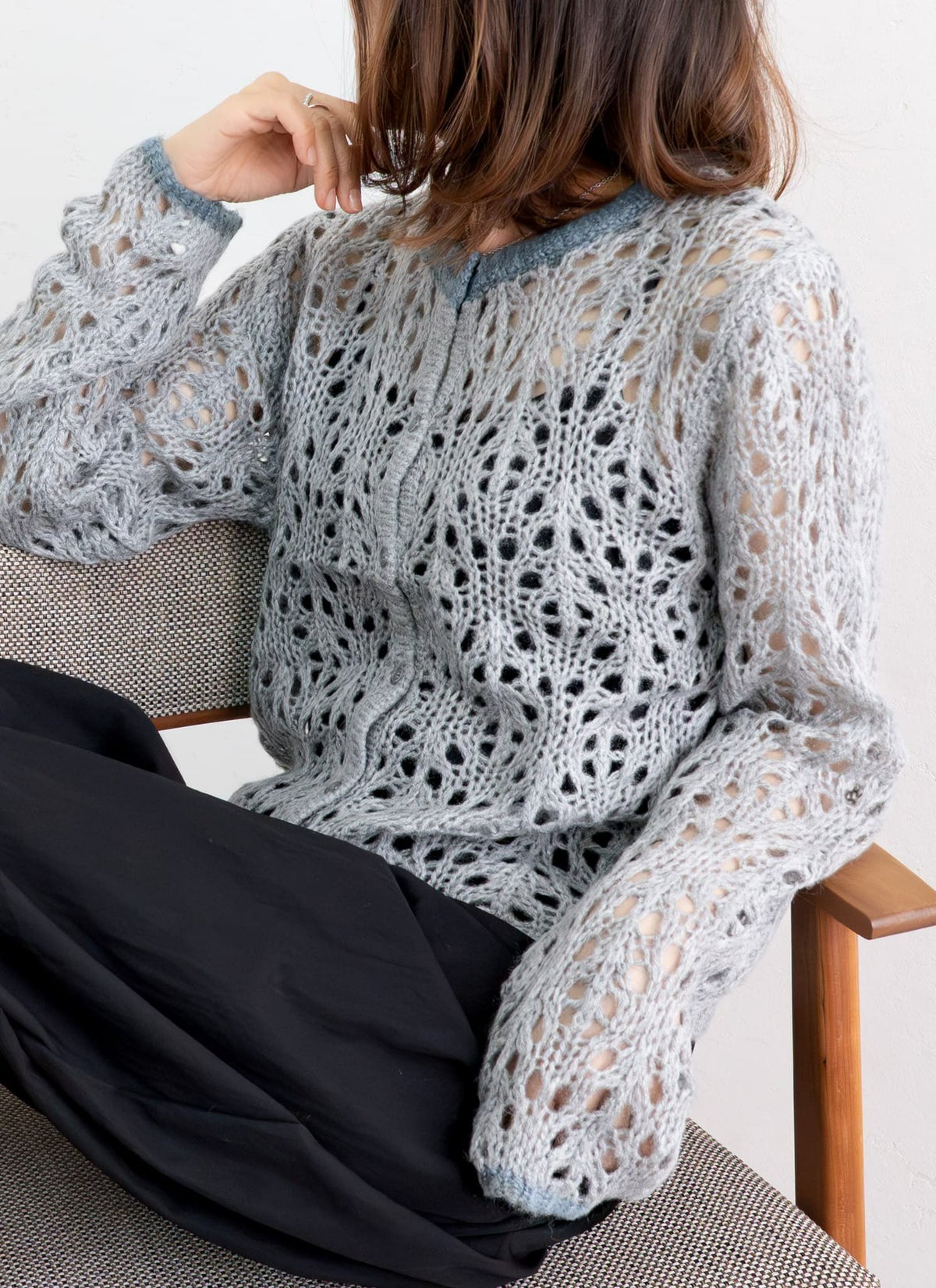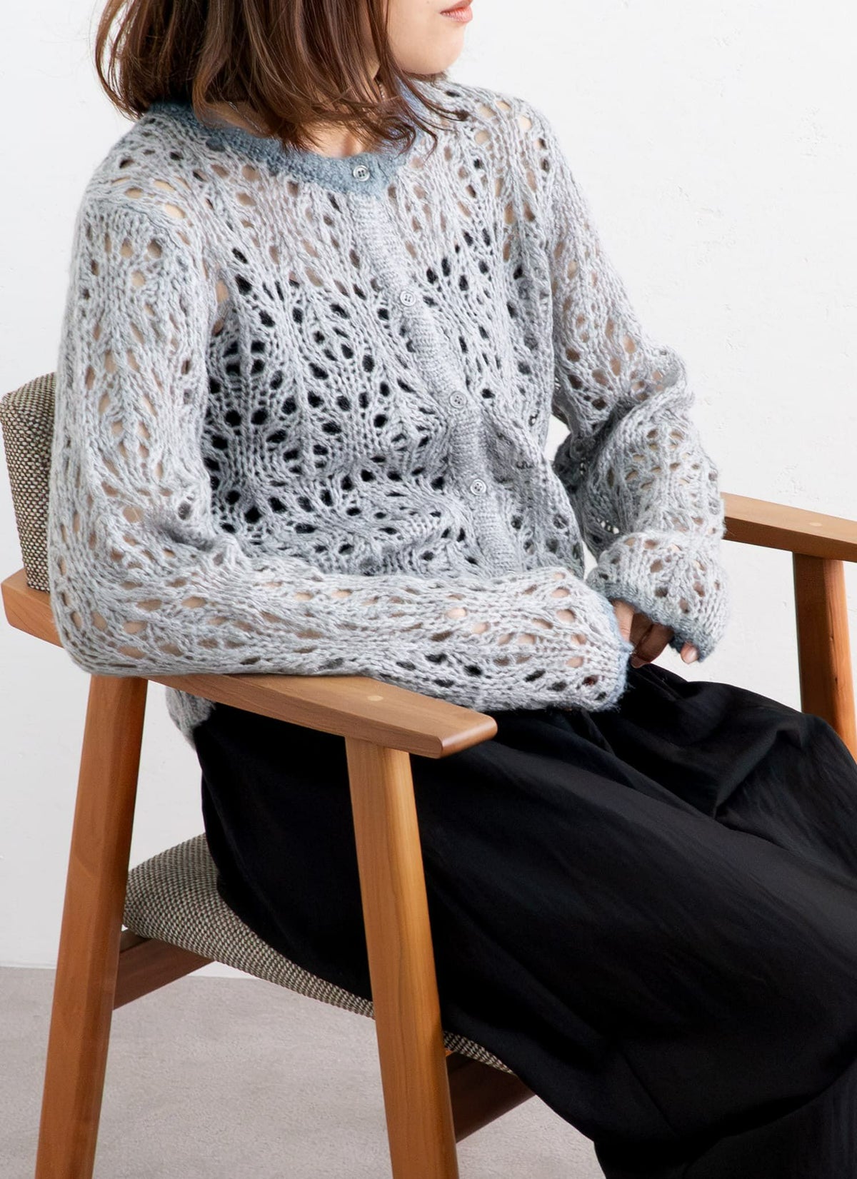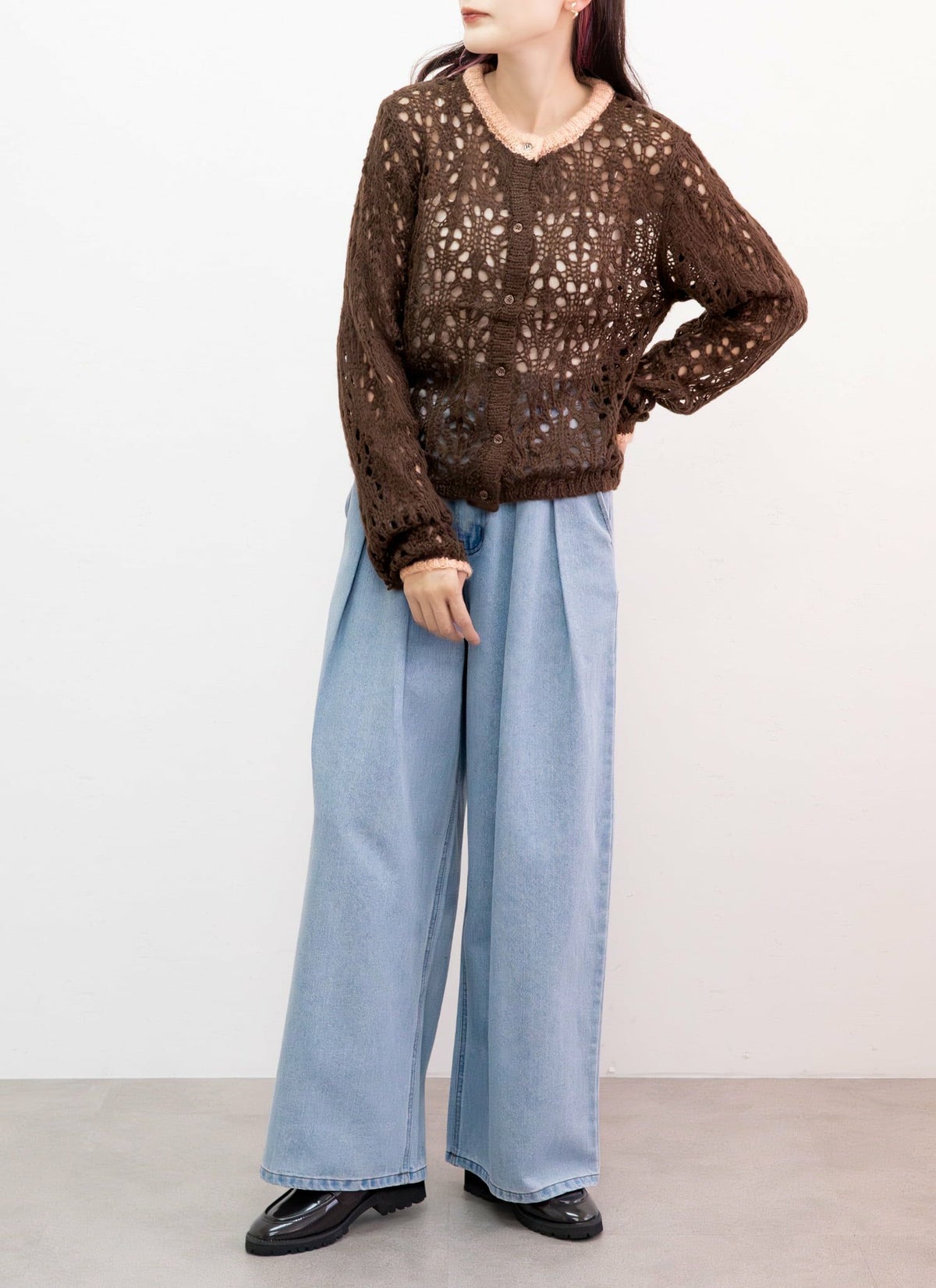 revoam【透かし編みが軽やかなニットカーデ】 【20%OFF】透かし柄配色クルーネックカーデ