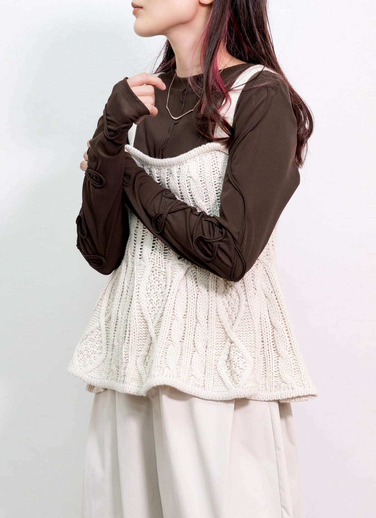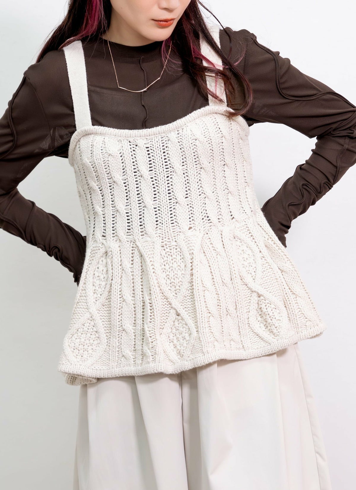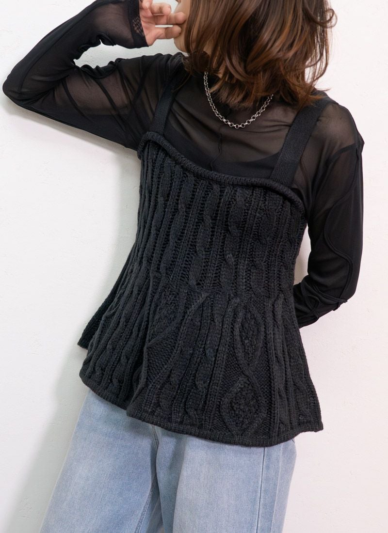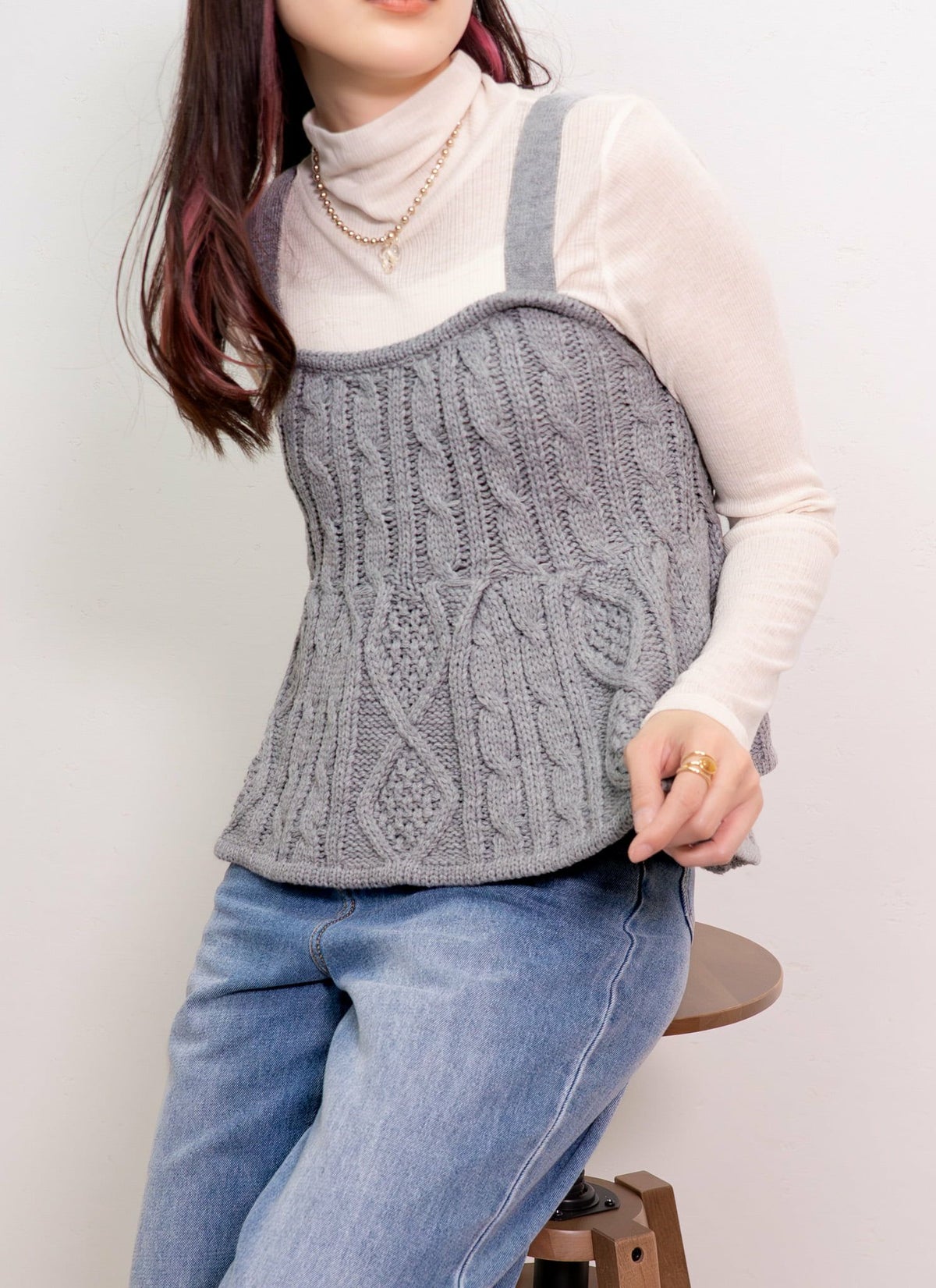 revoam【立体感のあるケーブル編みのビスチェトップス】 【10%OFF】ケーブル編みギャザーフレアビスチェ