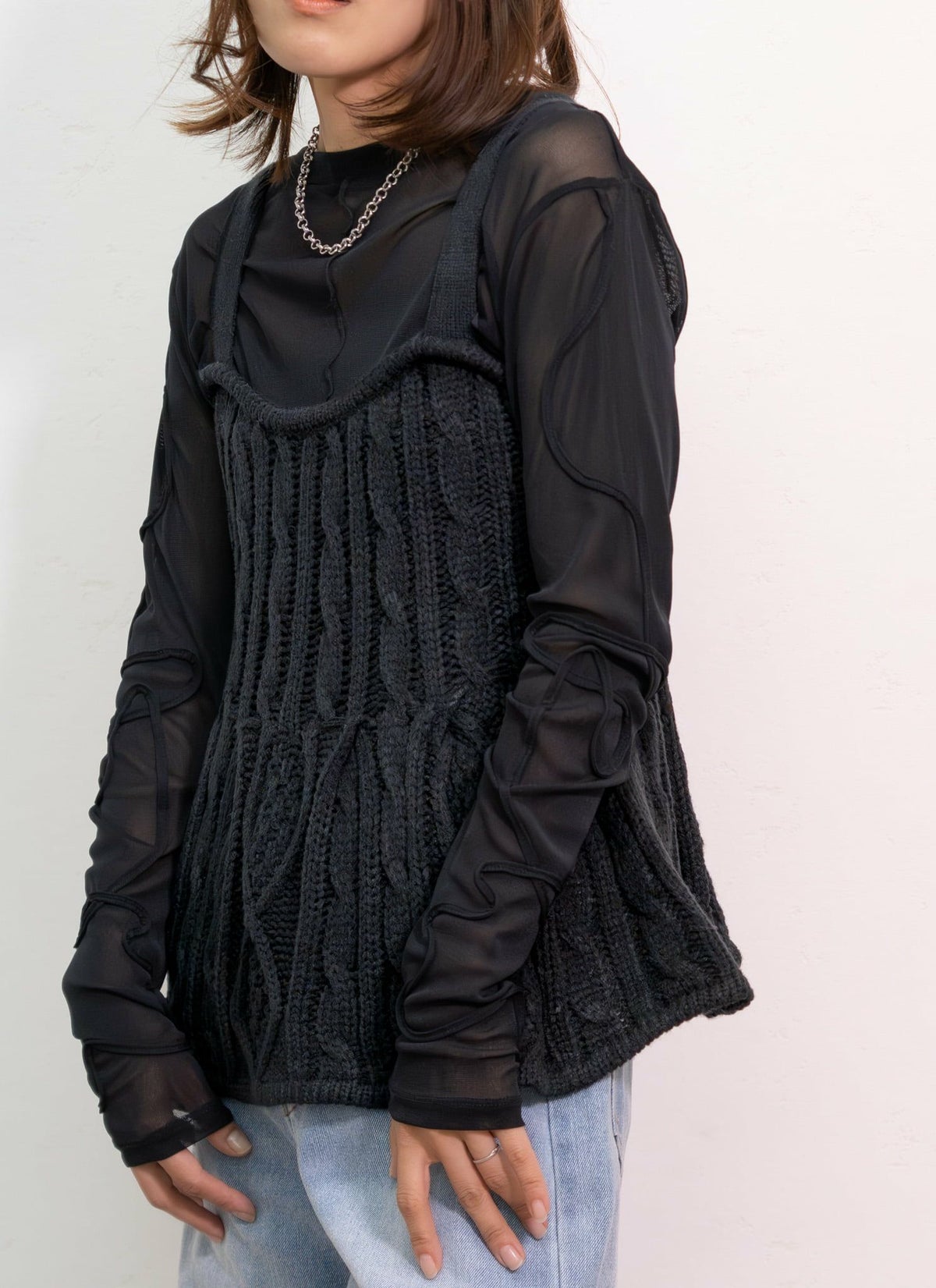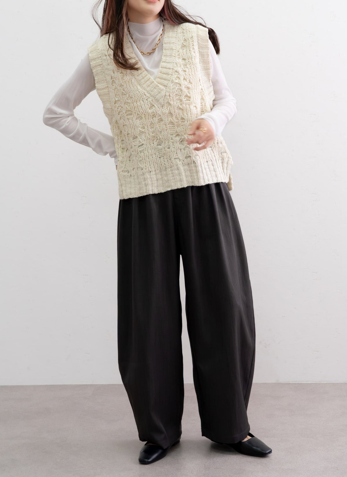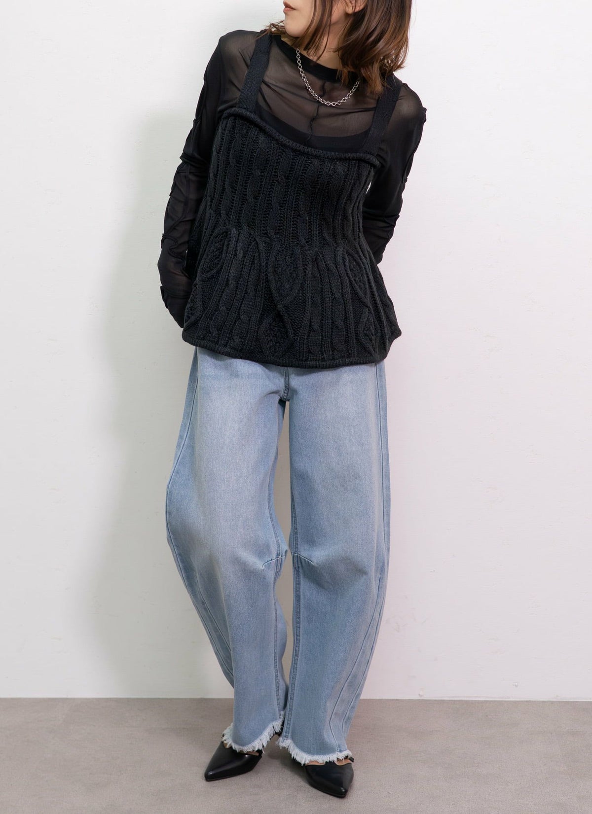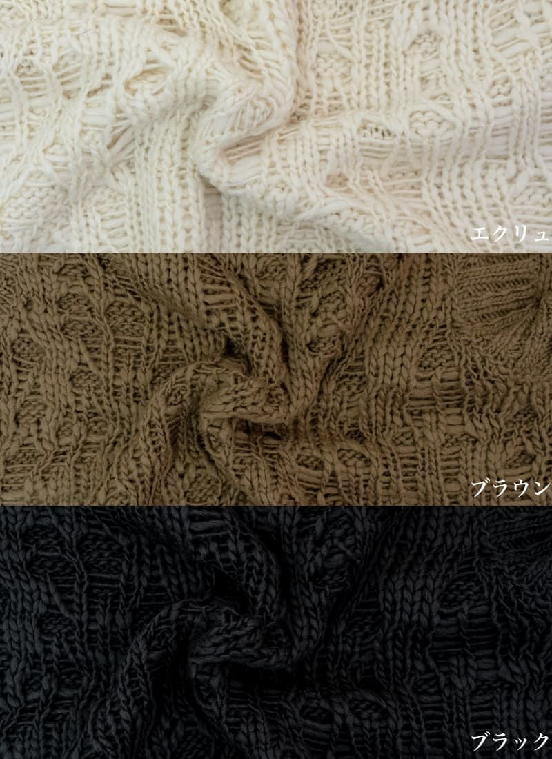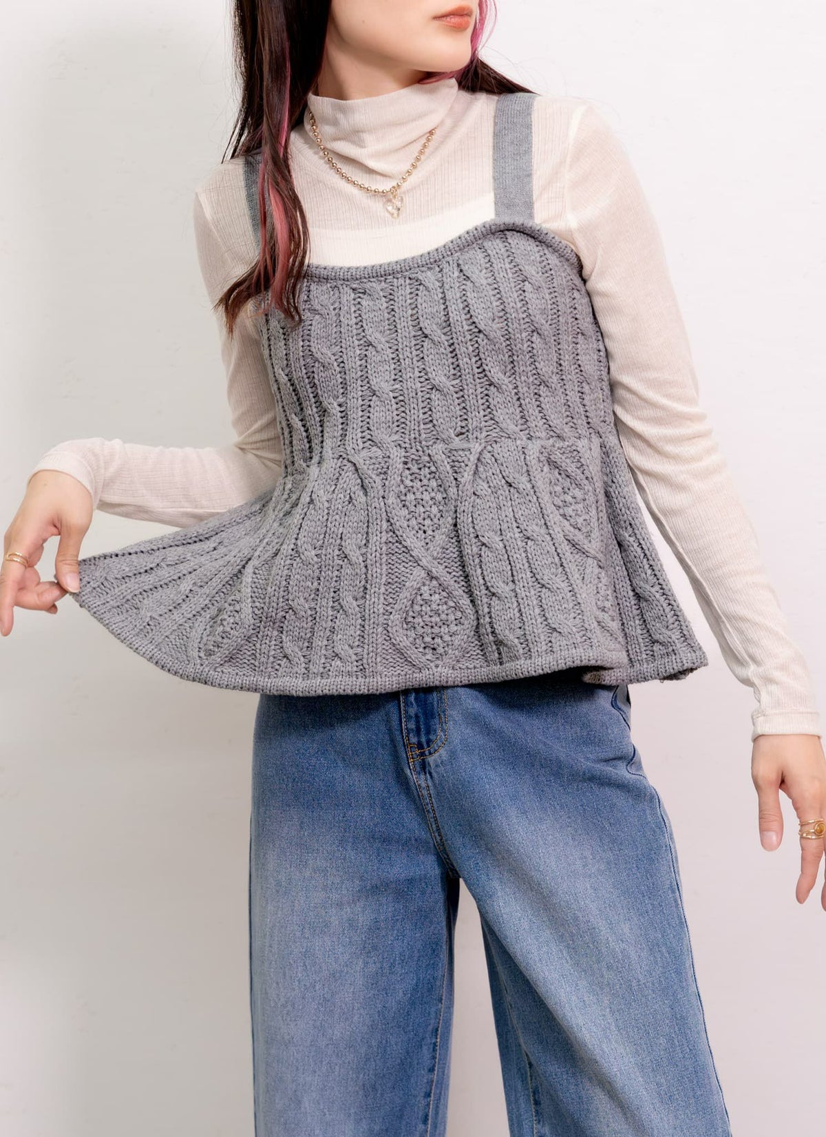 revoam【立体感のあるケーブル編みのビスチェトップス】 【10%OFF】ケーブル編みギャザーフレアビスチェ