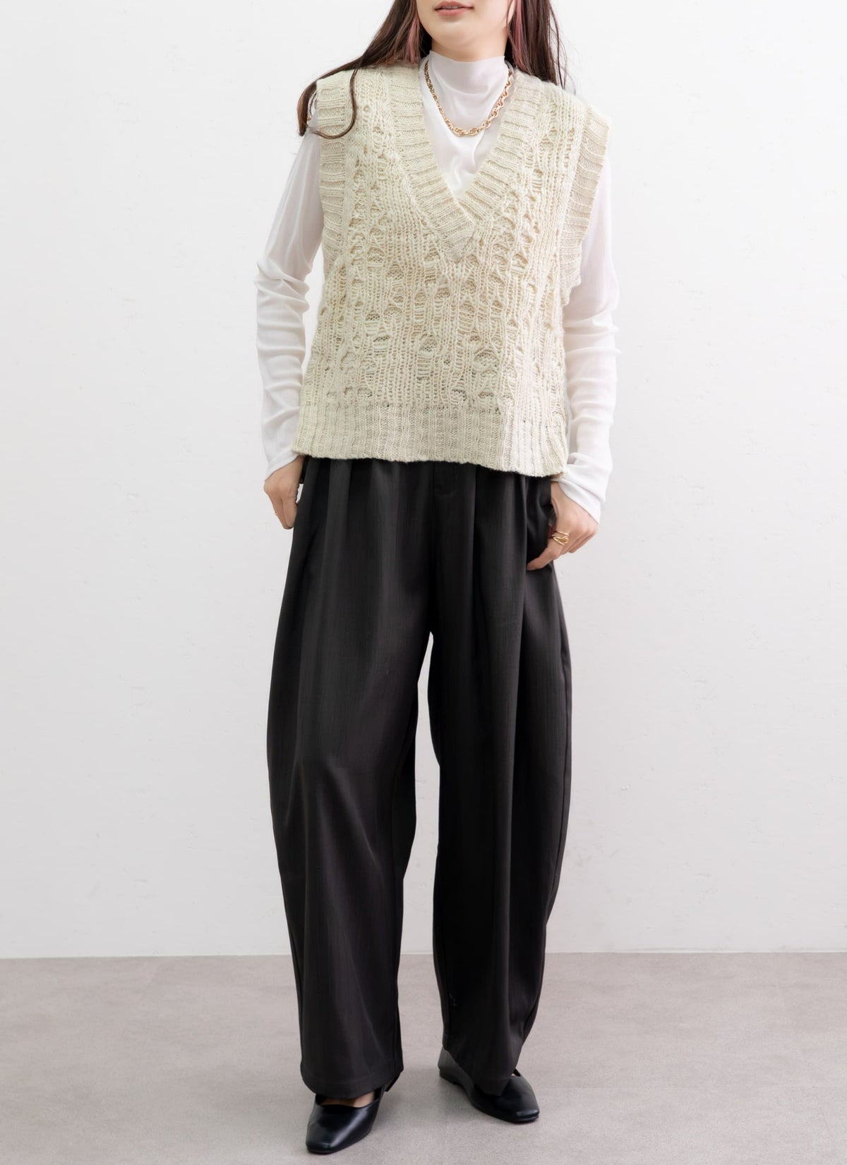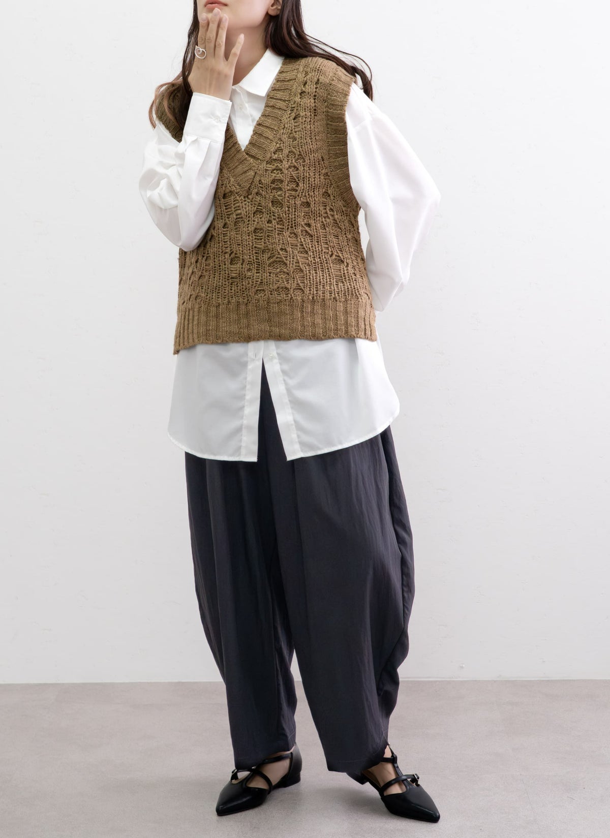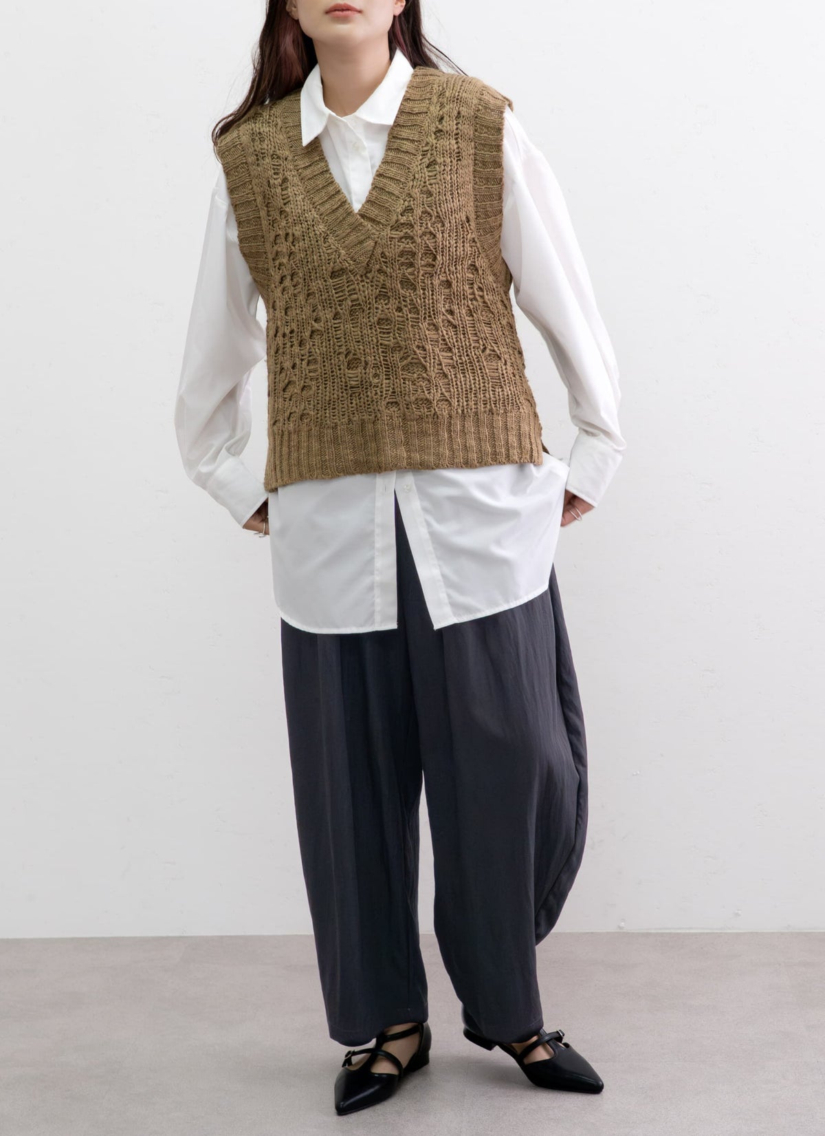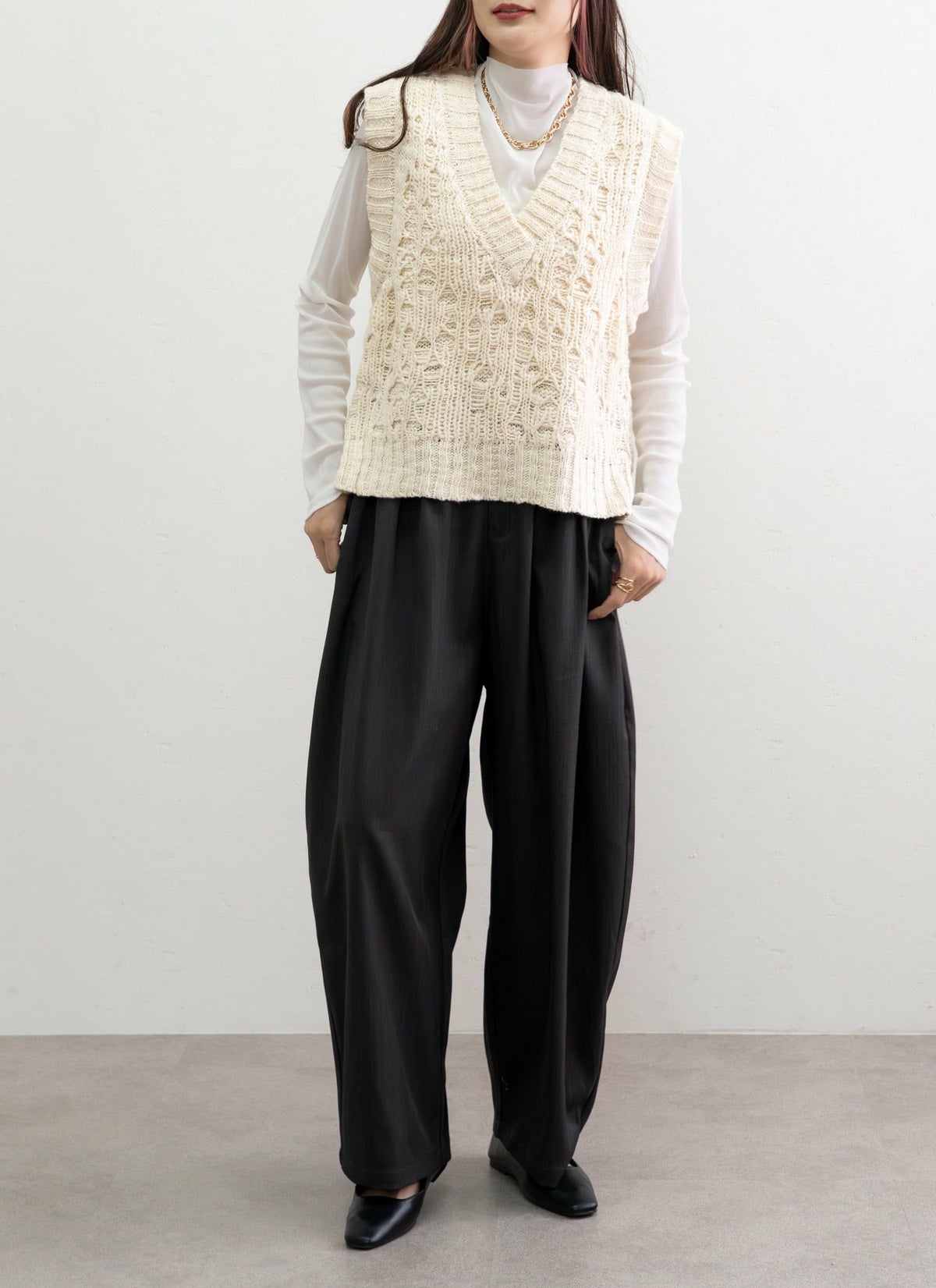 revoam【立体感のあるケーブル編みのビスチェトップス】 【10%OFF】ケーブル編みギャザーフレアビスチェ