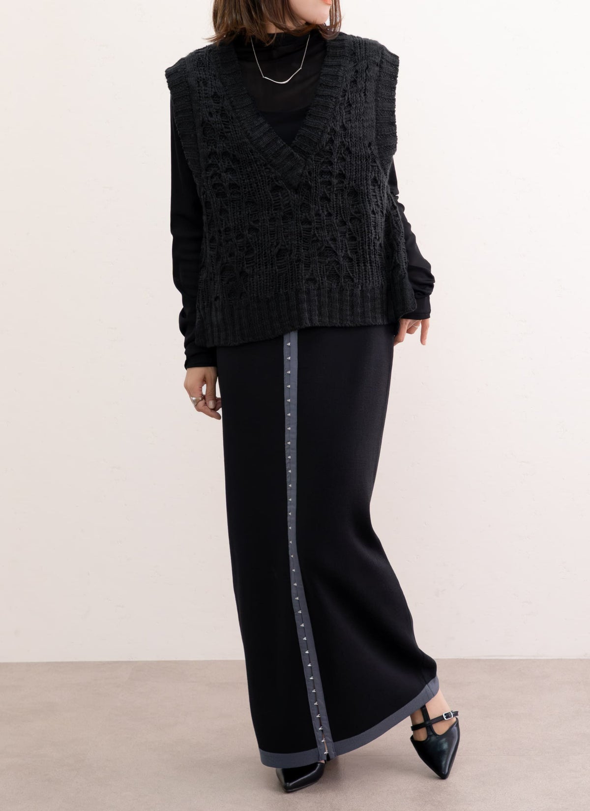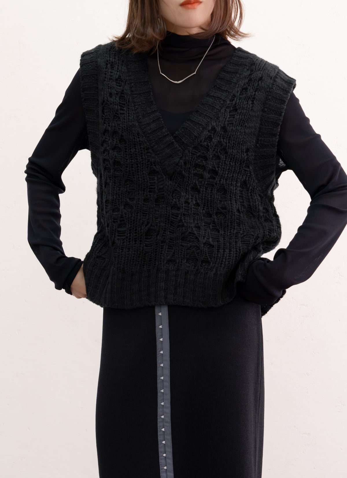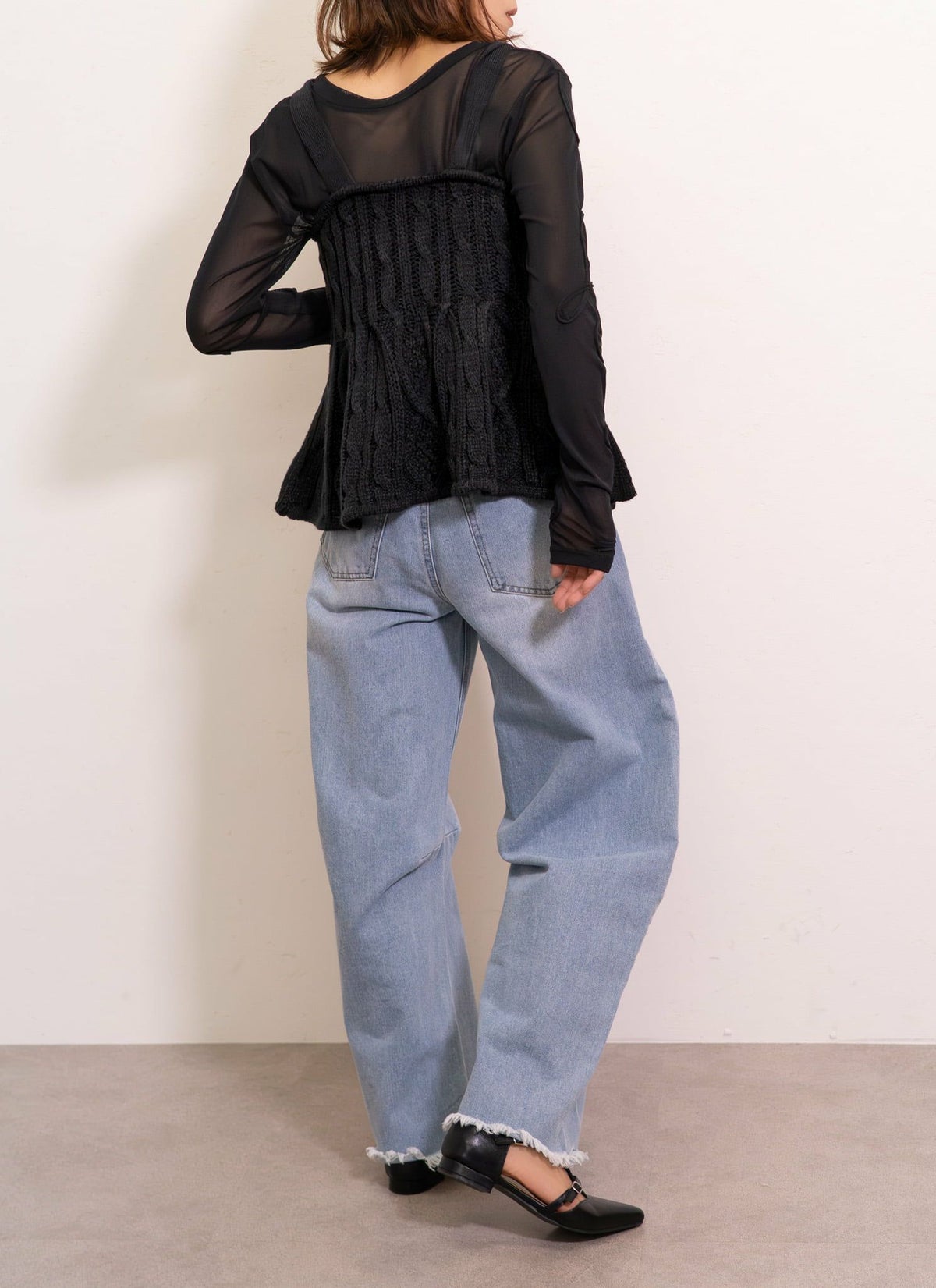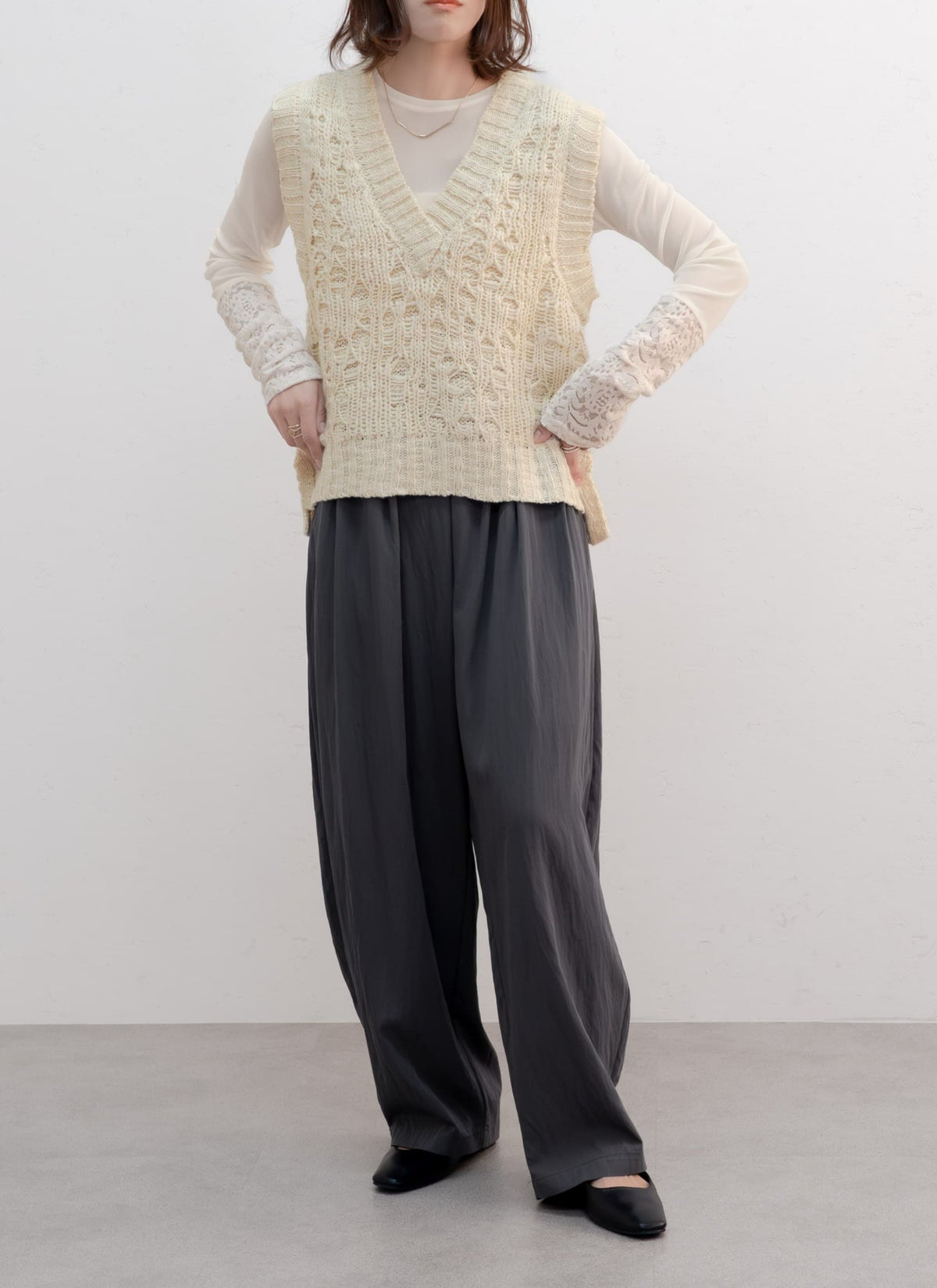 revoam【立体感のあるケーブル編みのビスチェトップス】 【10%OFF】ケーブル編みギャザーフレアビスチェ