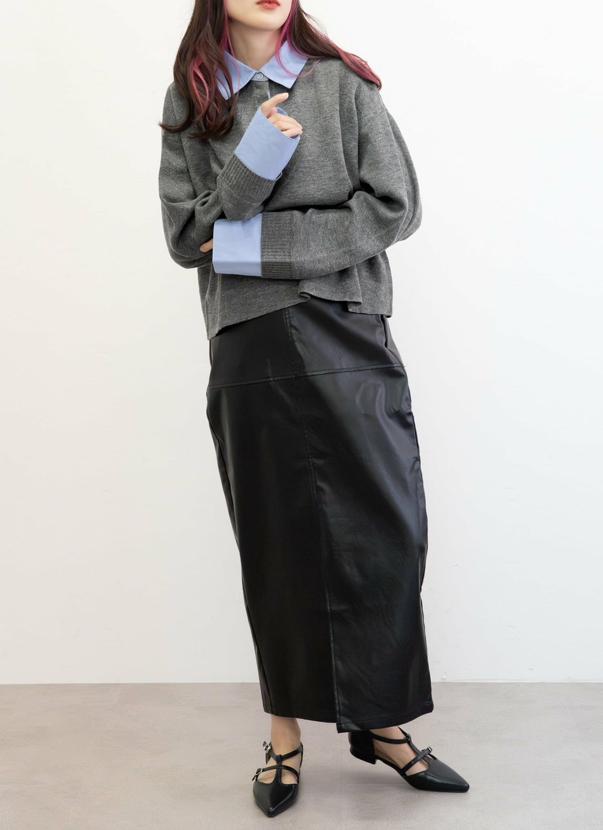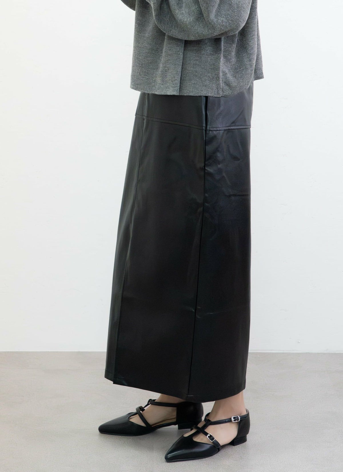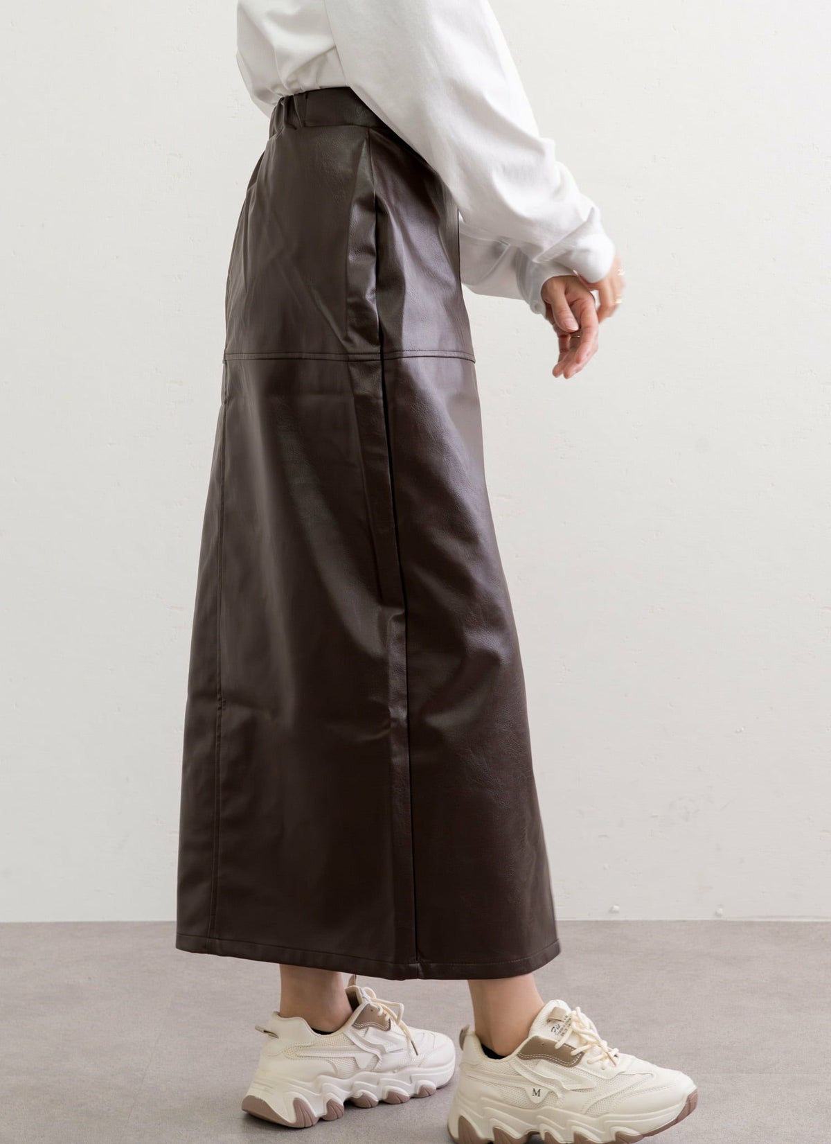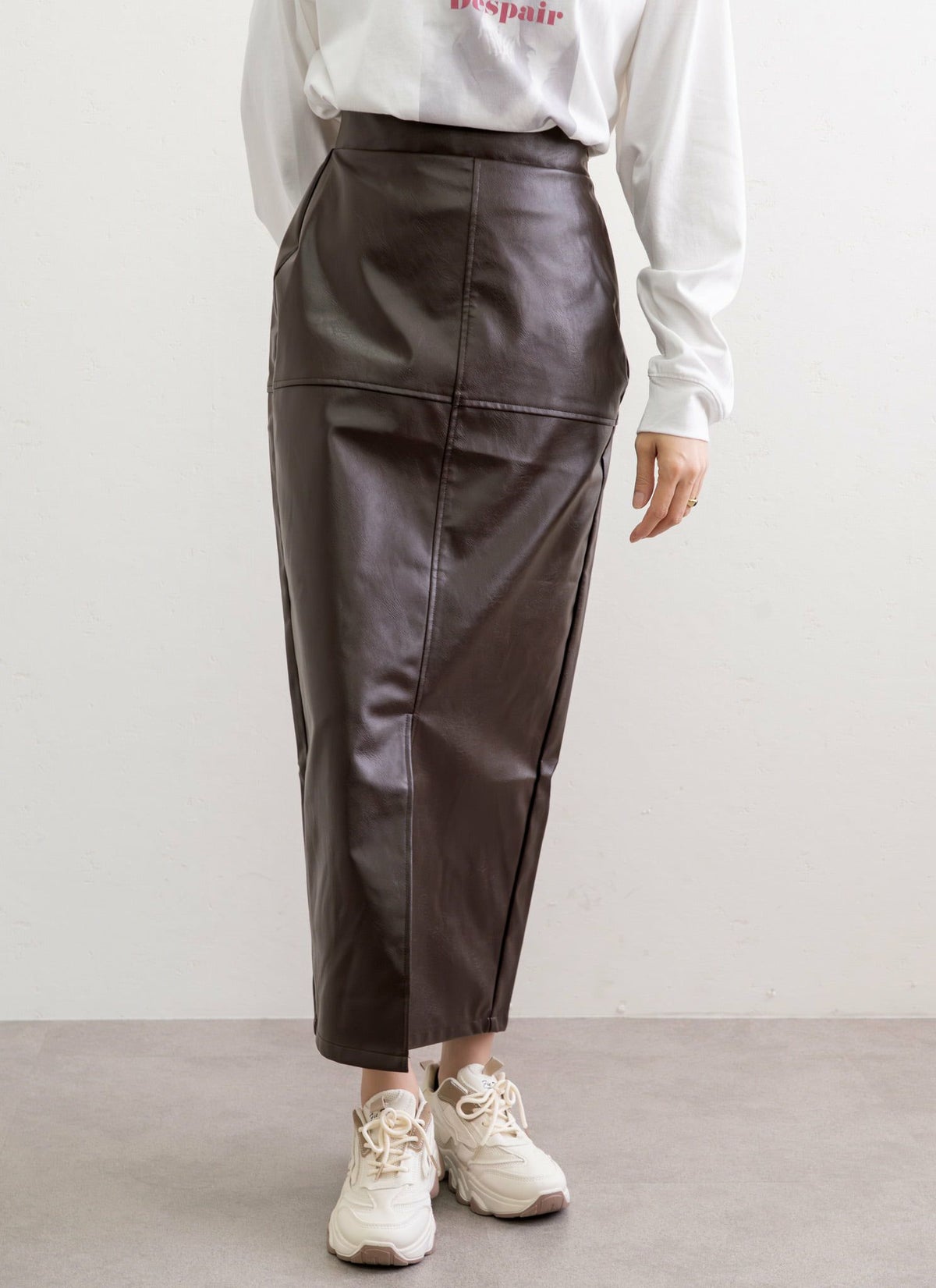 revoam【柔らかなフェイクレザーで仕立てたタイトスカート】 【10%OFF】フェイクレザー切替タイトスカート