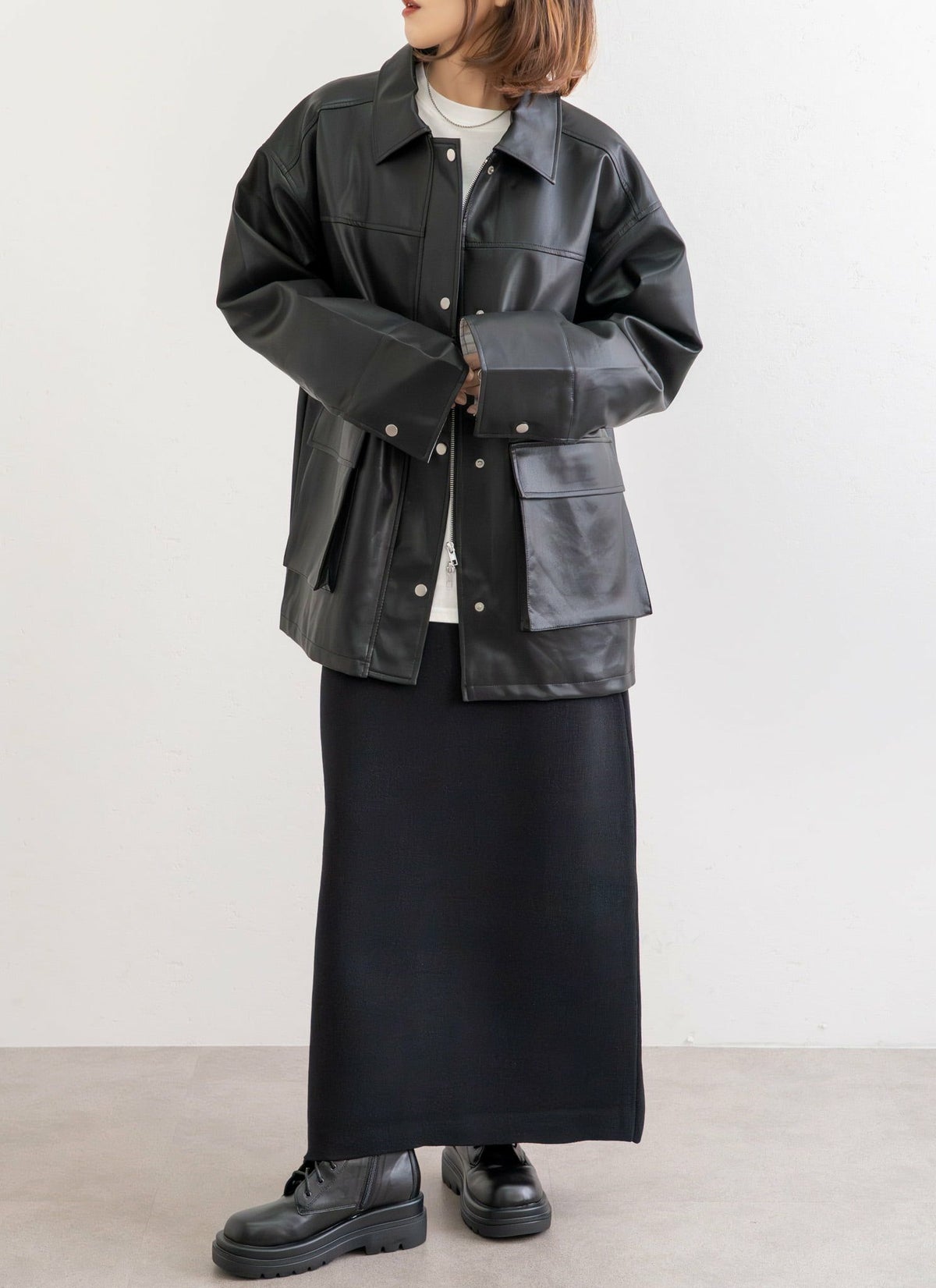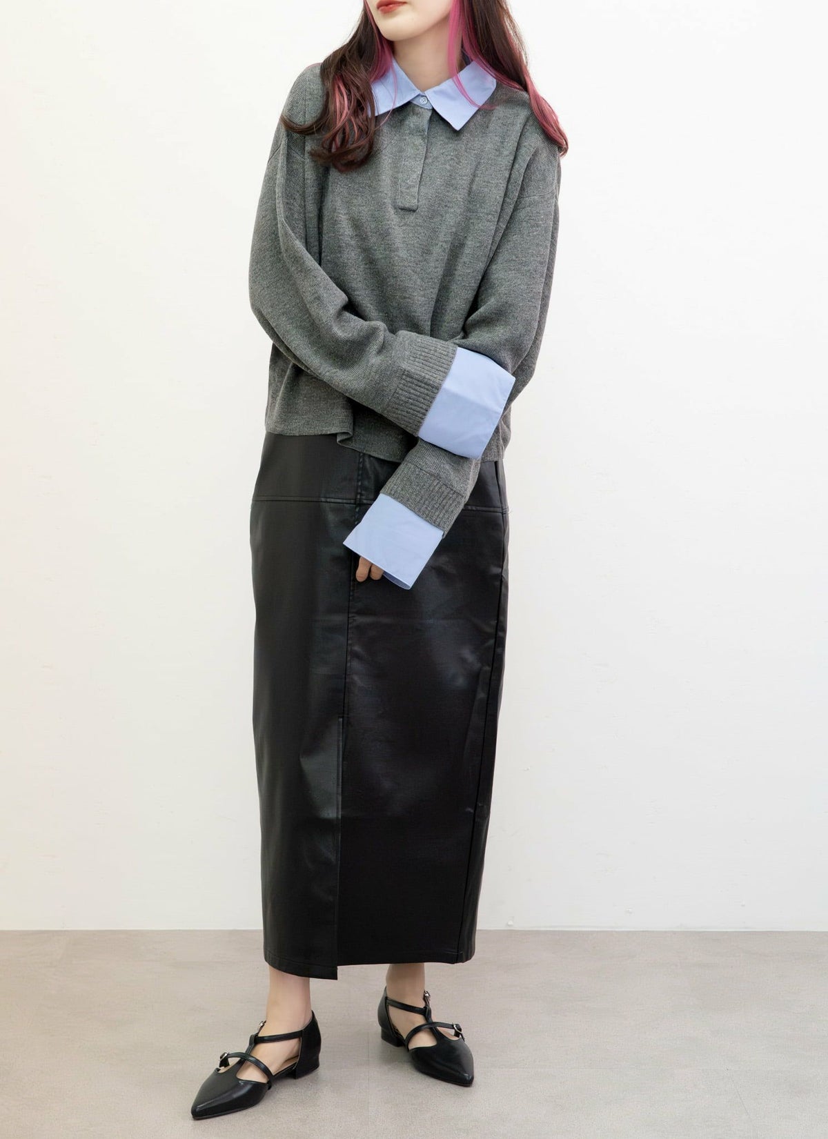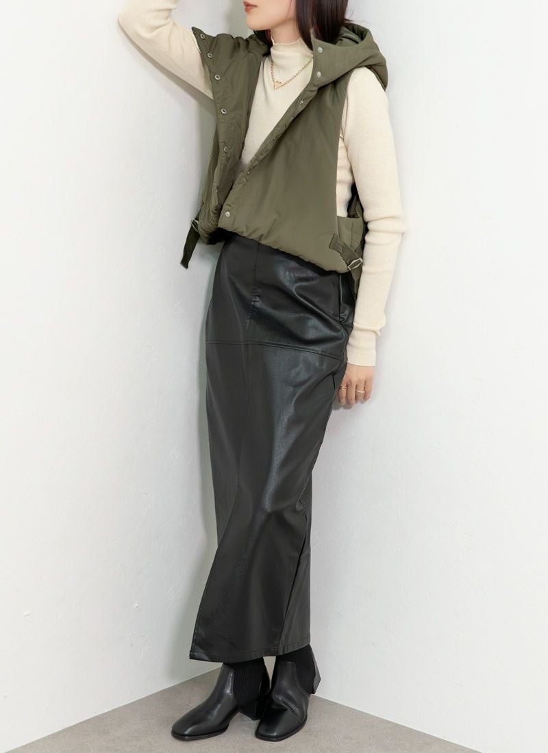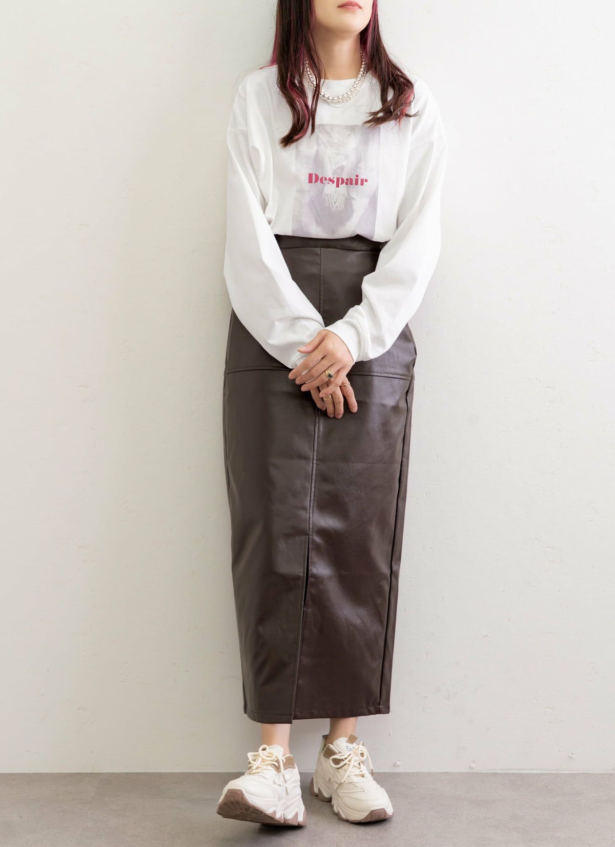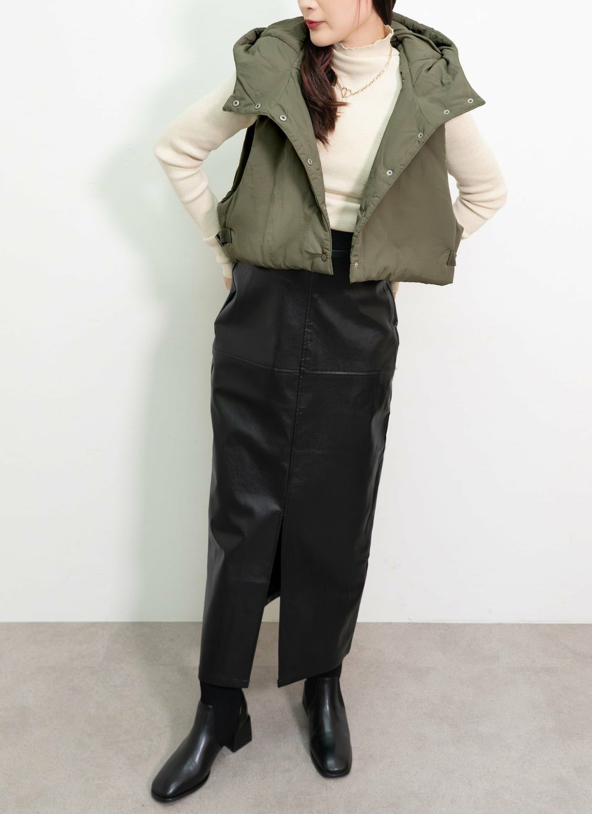revoam【柔らかなフェイクレザーで仕立てたタイトスカート】 【10%OFF】フェイクレザー切替タイトスカート
