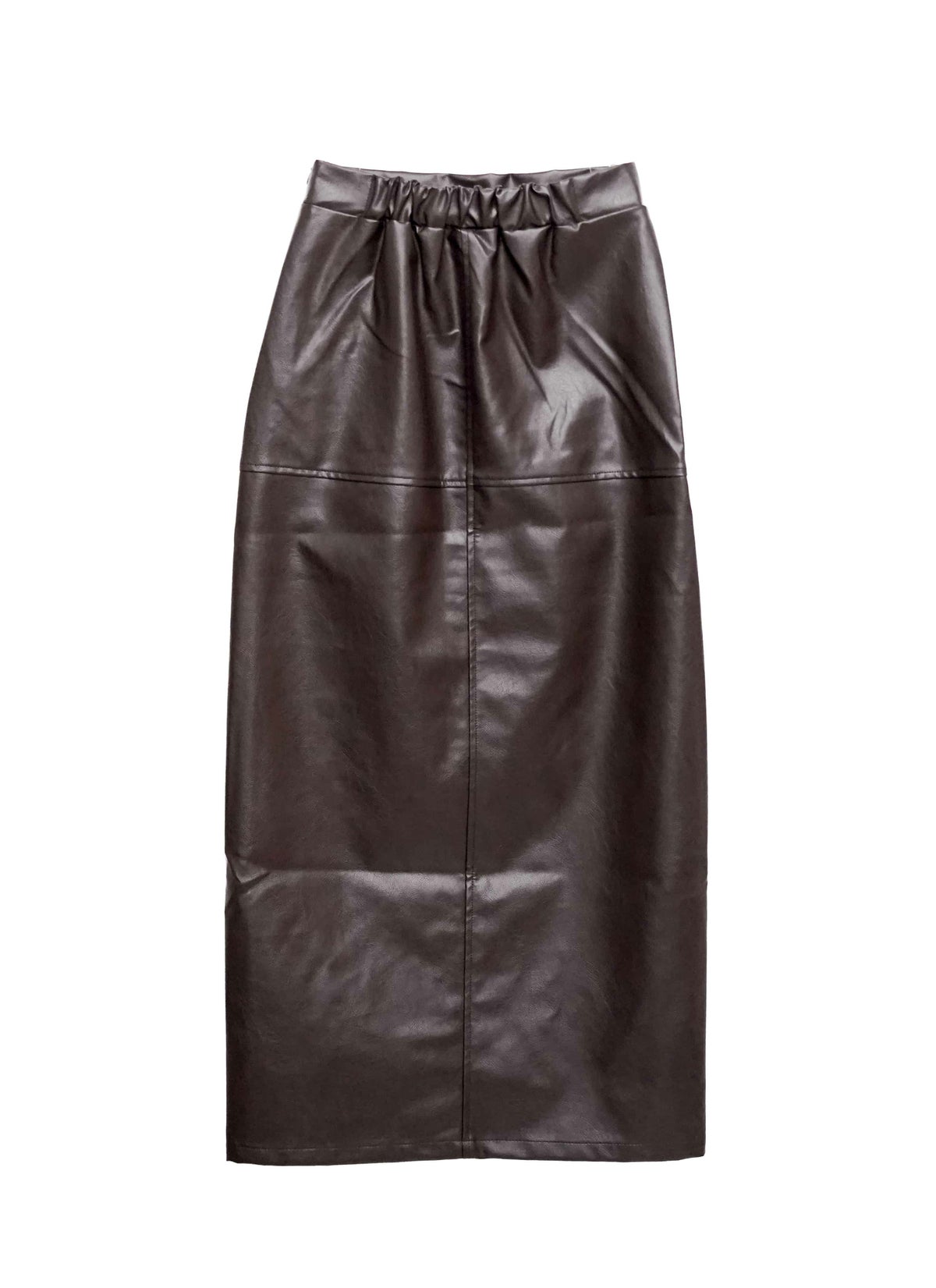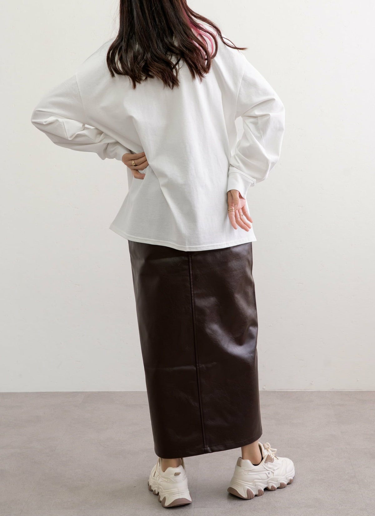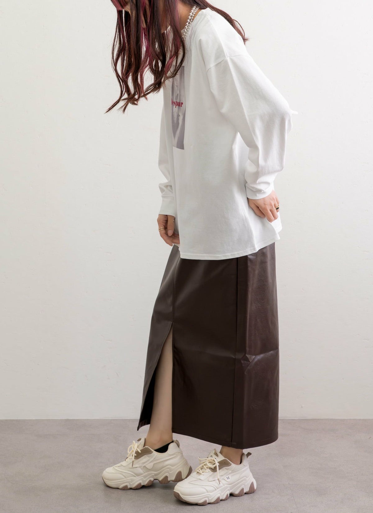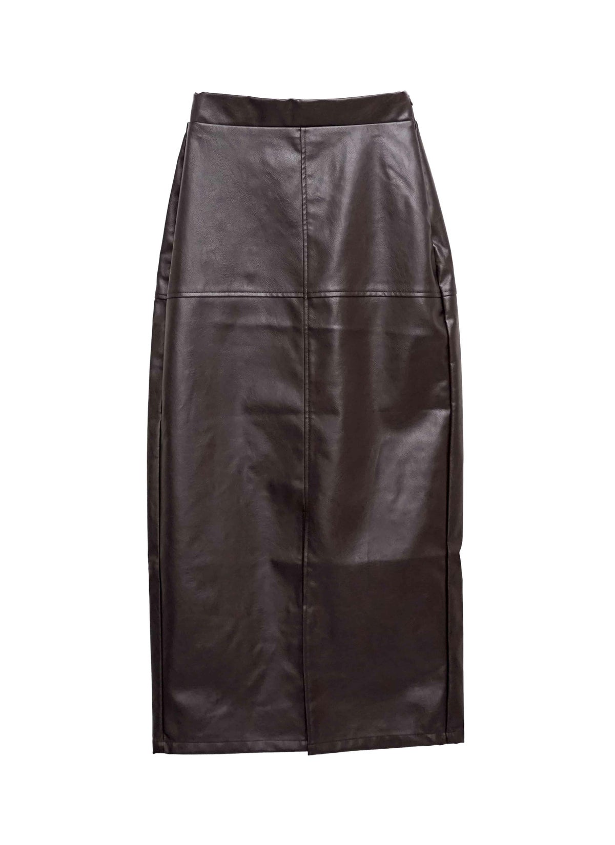 revoam【柔らかなフェイクレザーで仕立てたタイトスカート】 【10%OFF】フェイクレザー切替タイトスカート