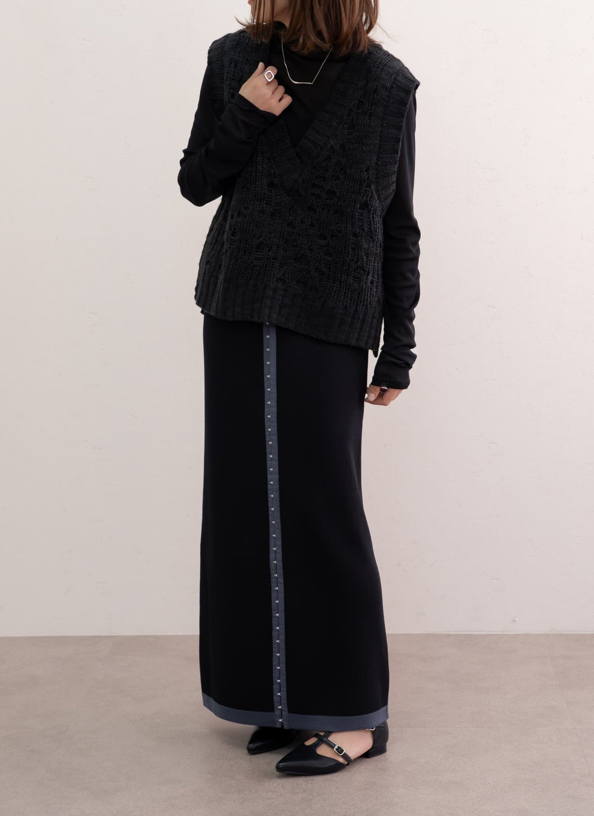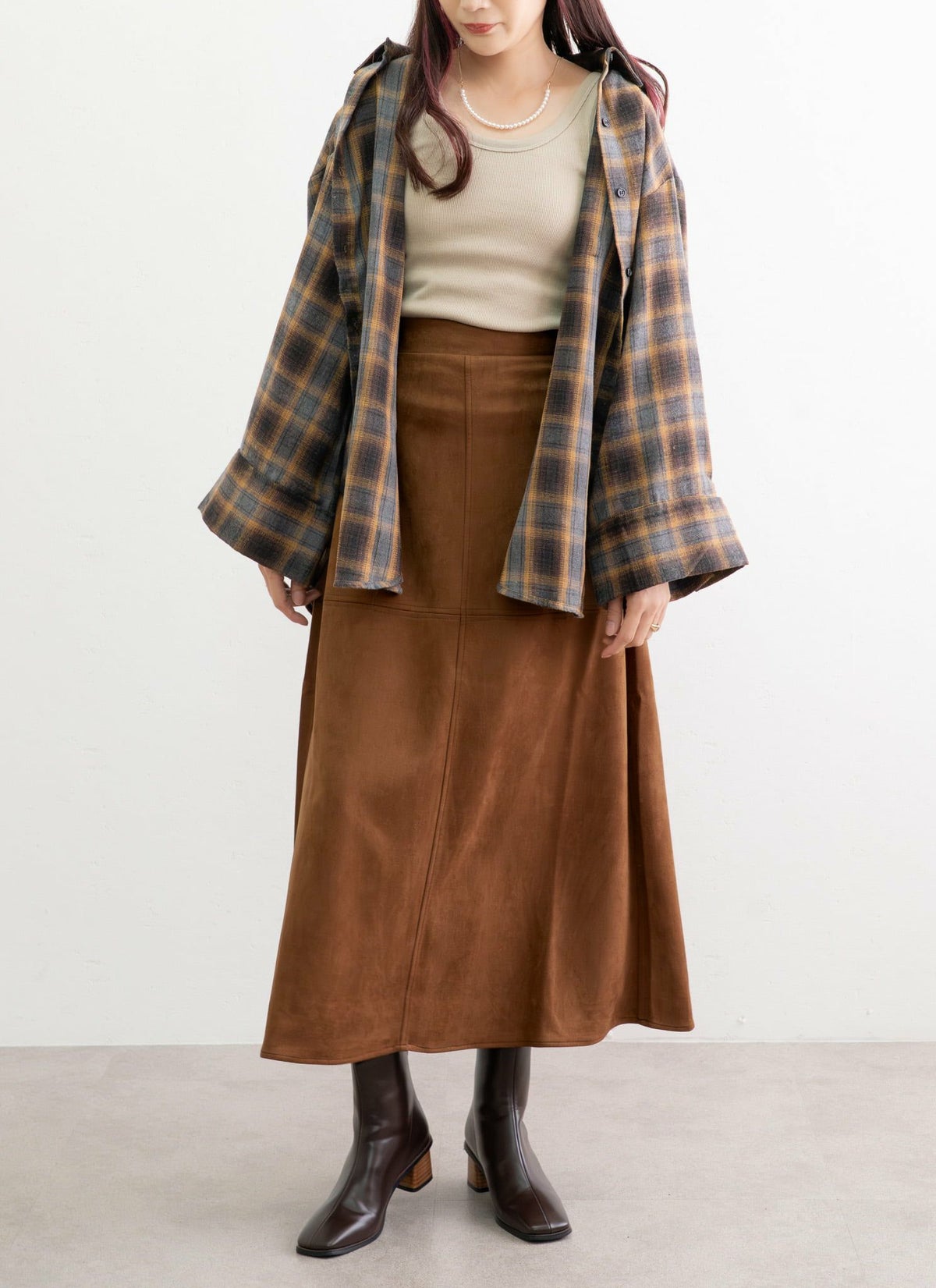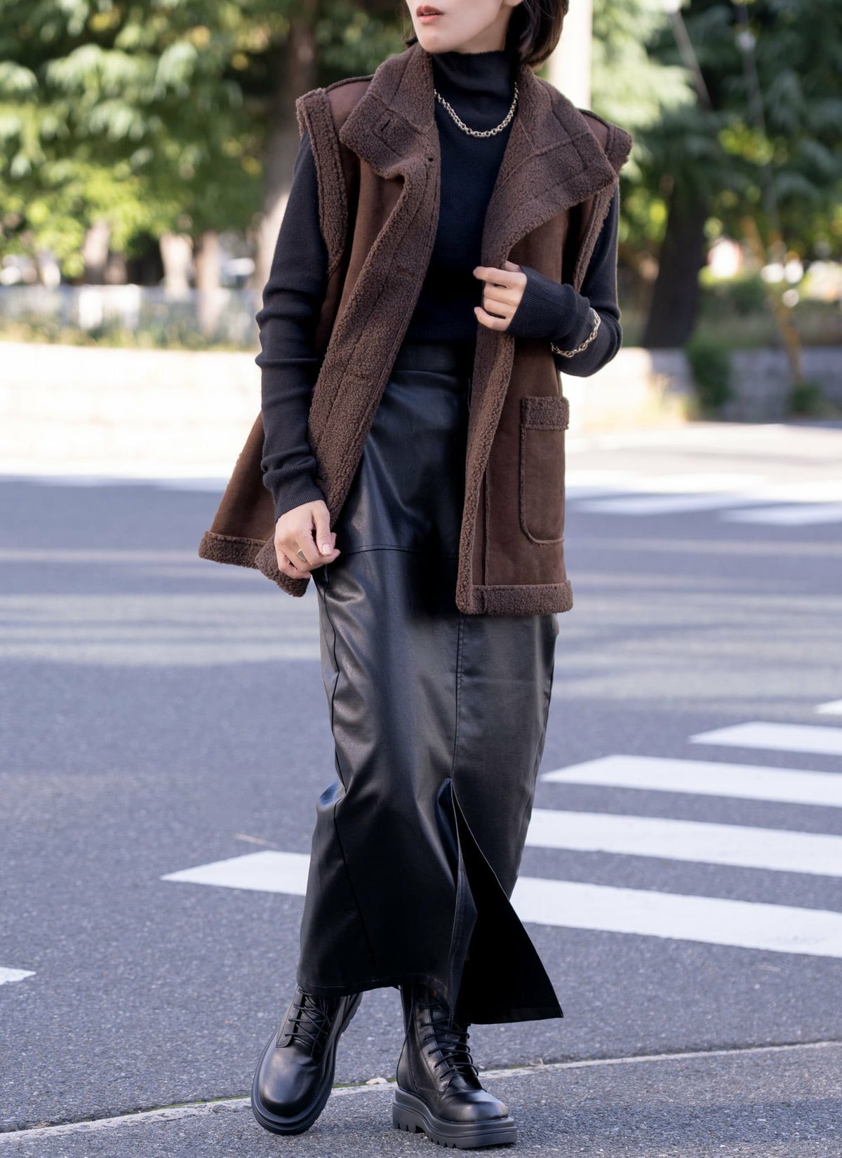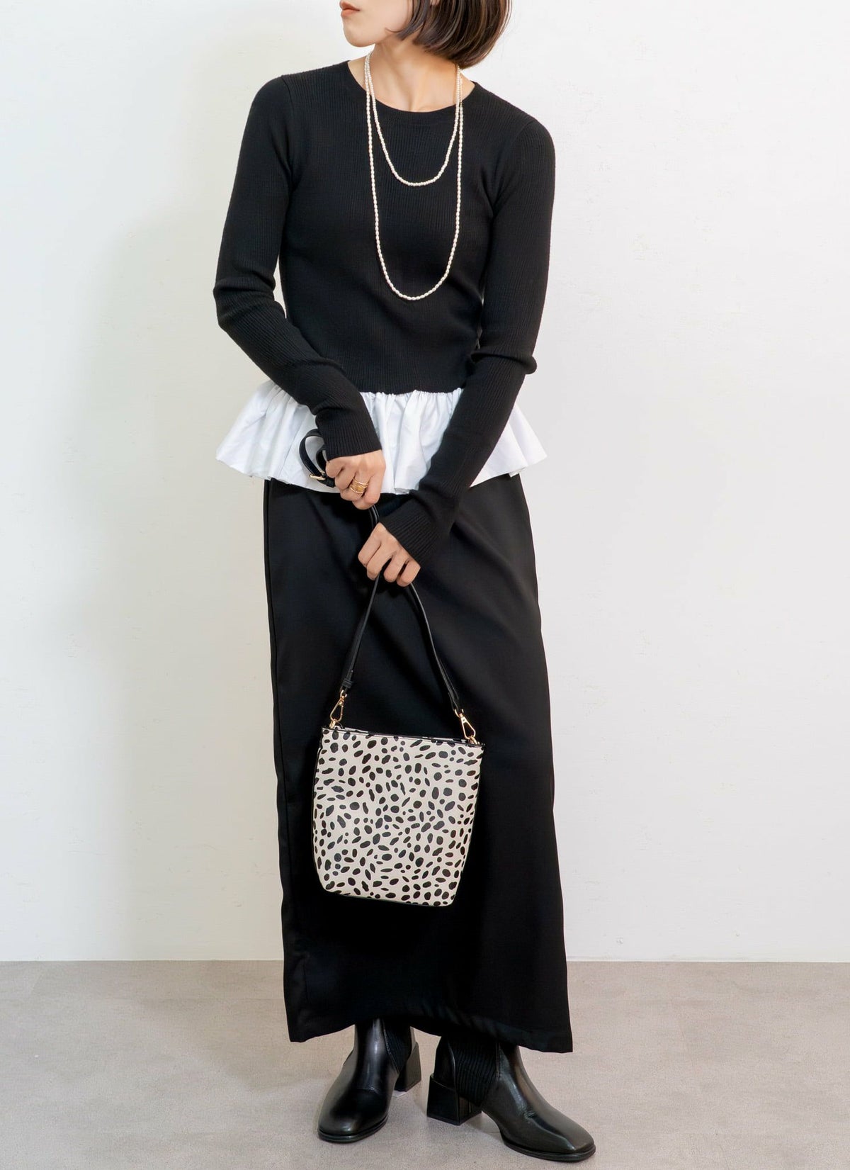revoam【柔らかなフェイクレザーで仕立てたタイトスカート】 【10%OFF】フェイクレザー切替タイトスカート