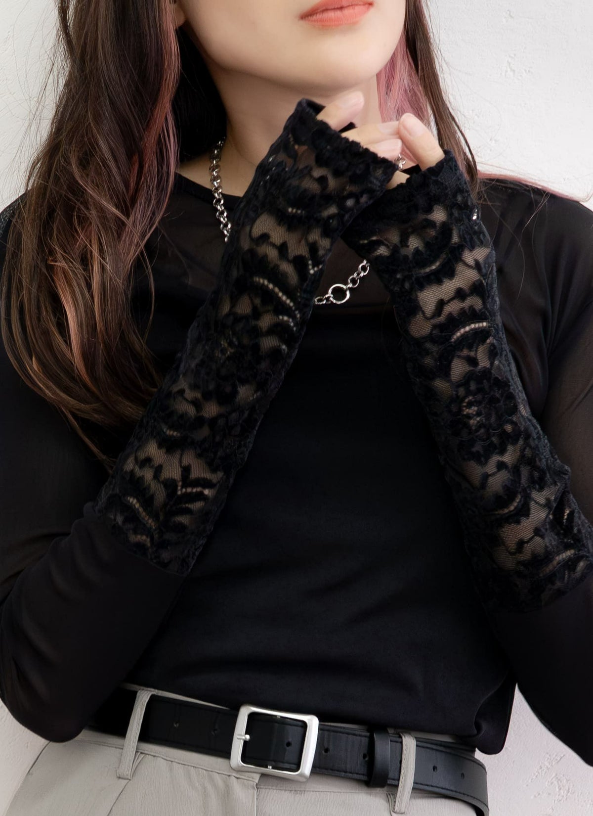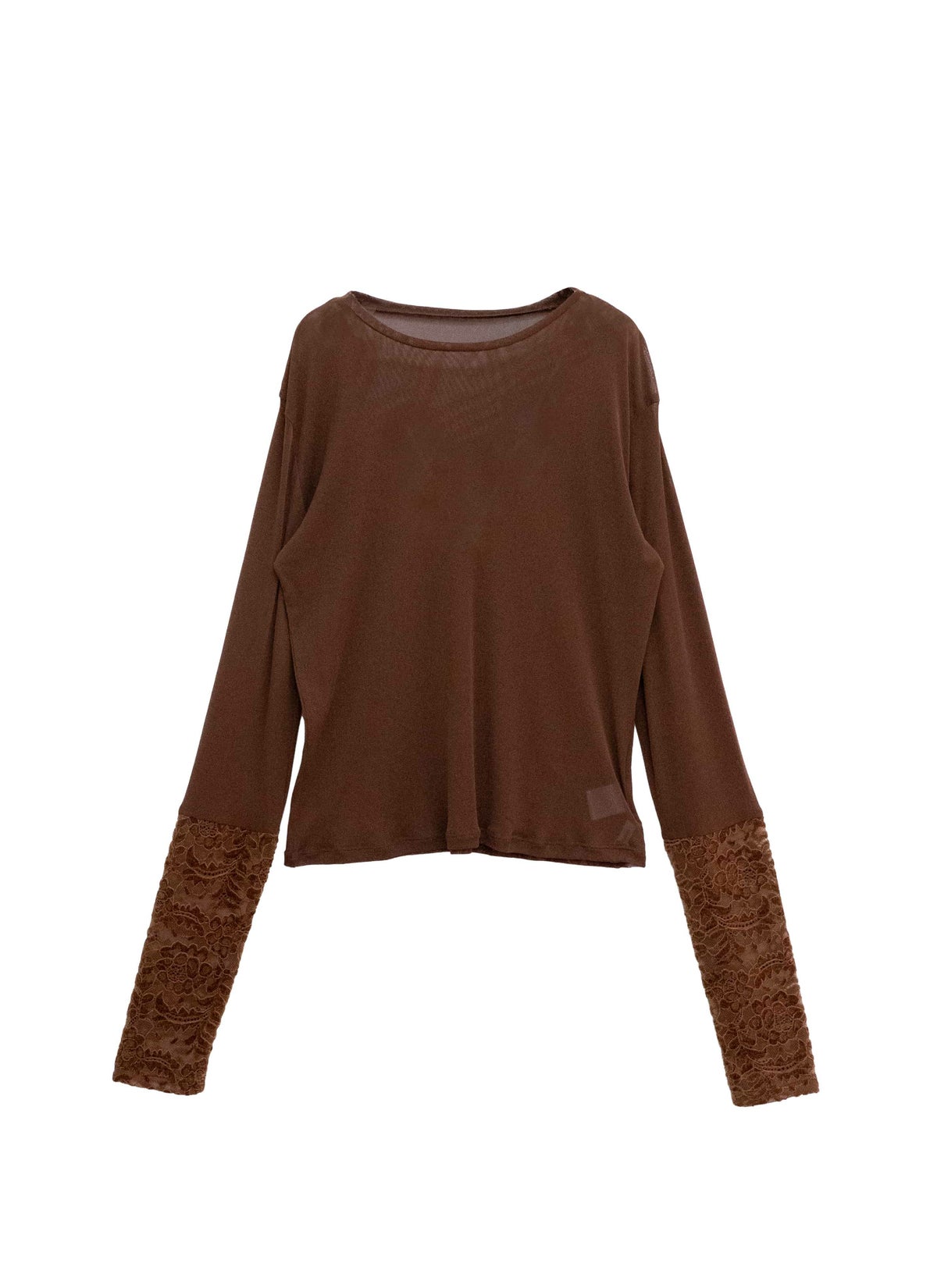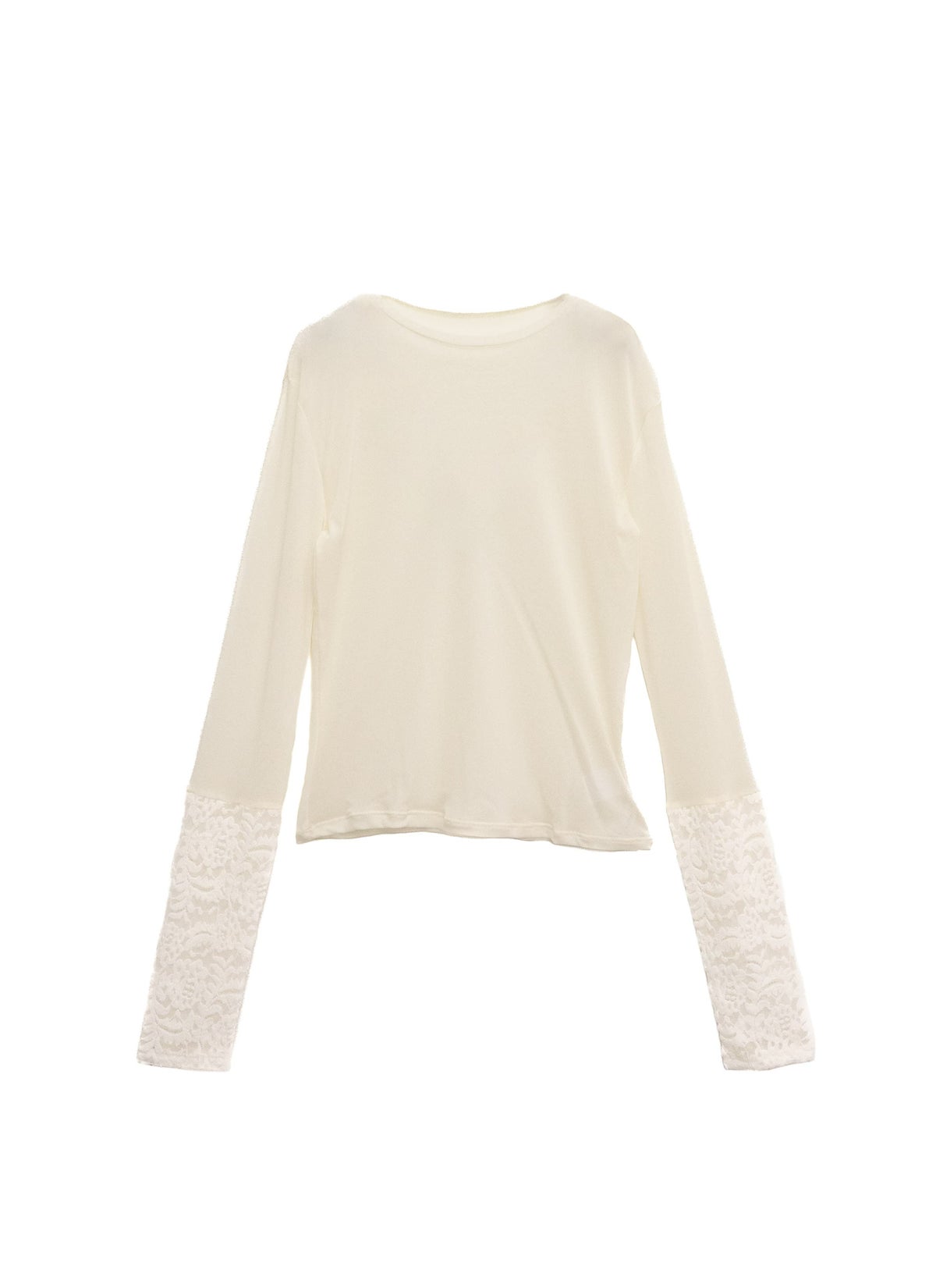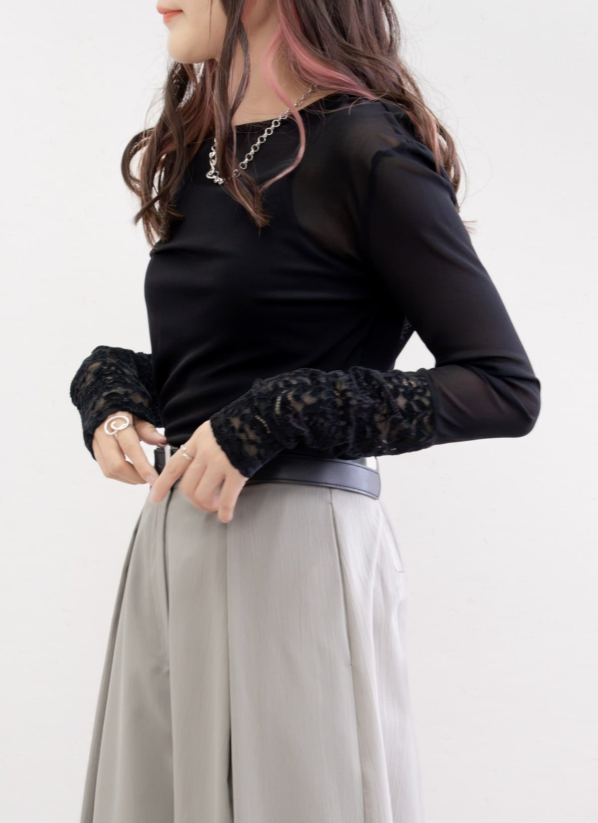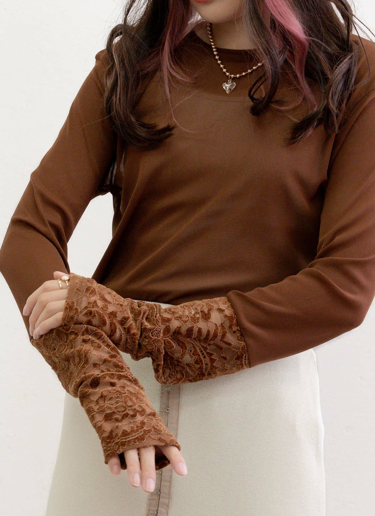 revoam【袖レースのデザインが大人可愛いシアートップス】 【10%OFF】袖レース切替プルオーバー