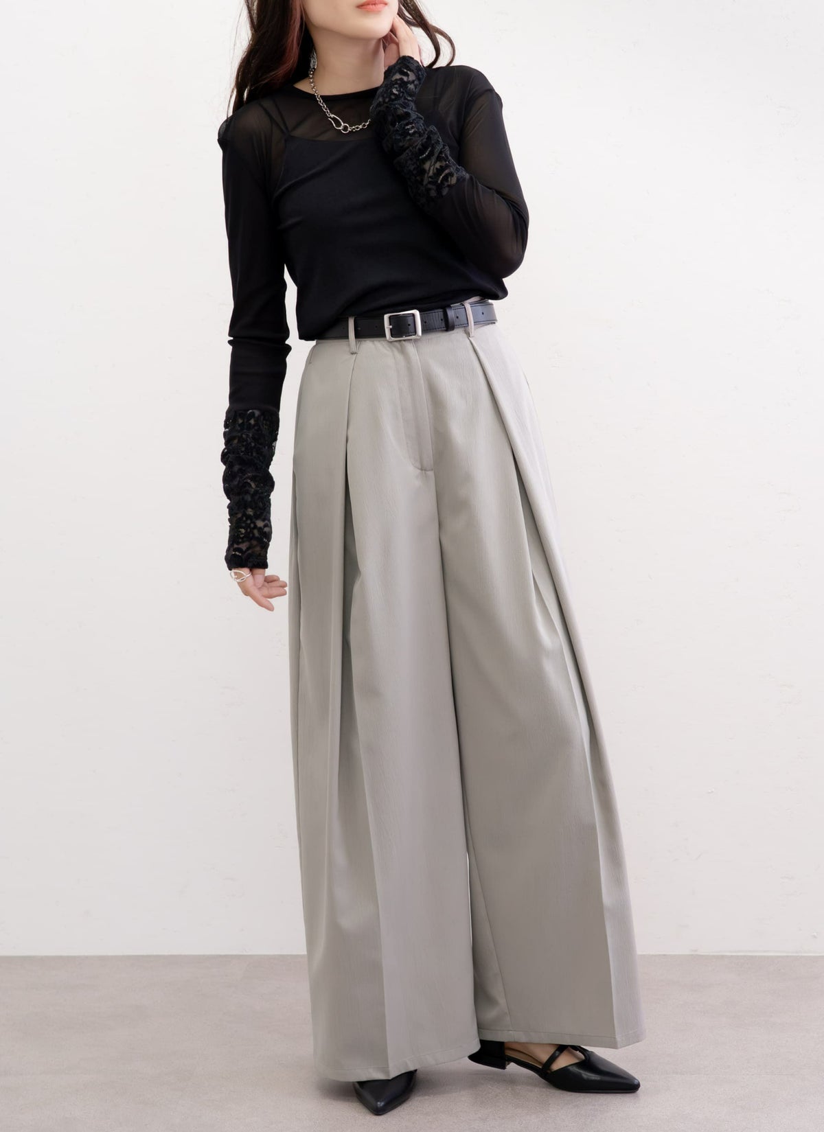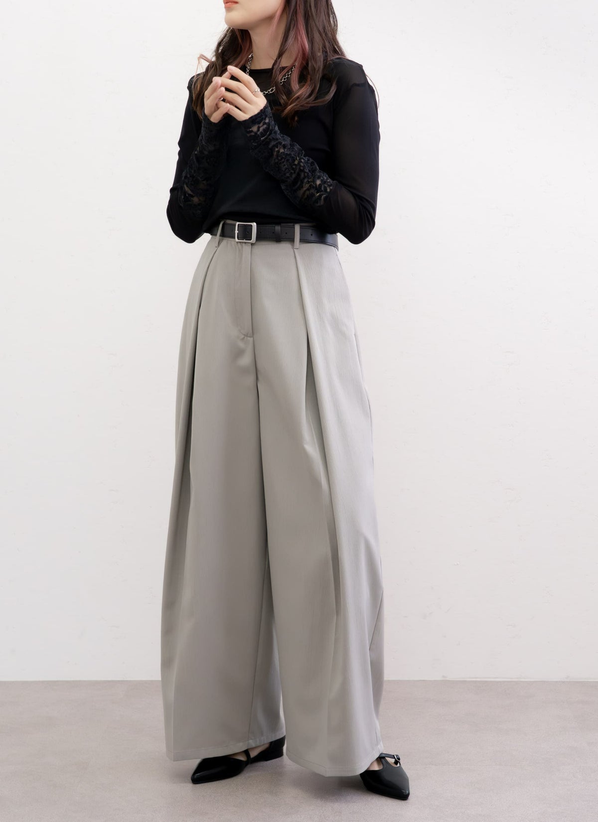 revoam【立体感シルエットで魅せる。トレンド感あふれるカーブパンツ】 【10%OFF】ツイルタックカーブパンツ