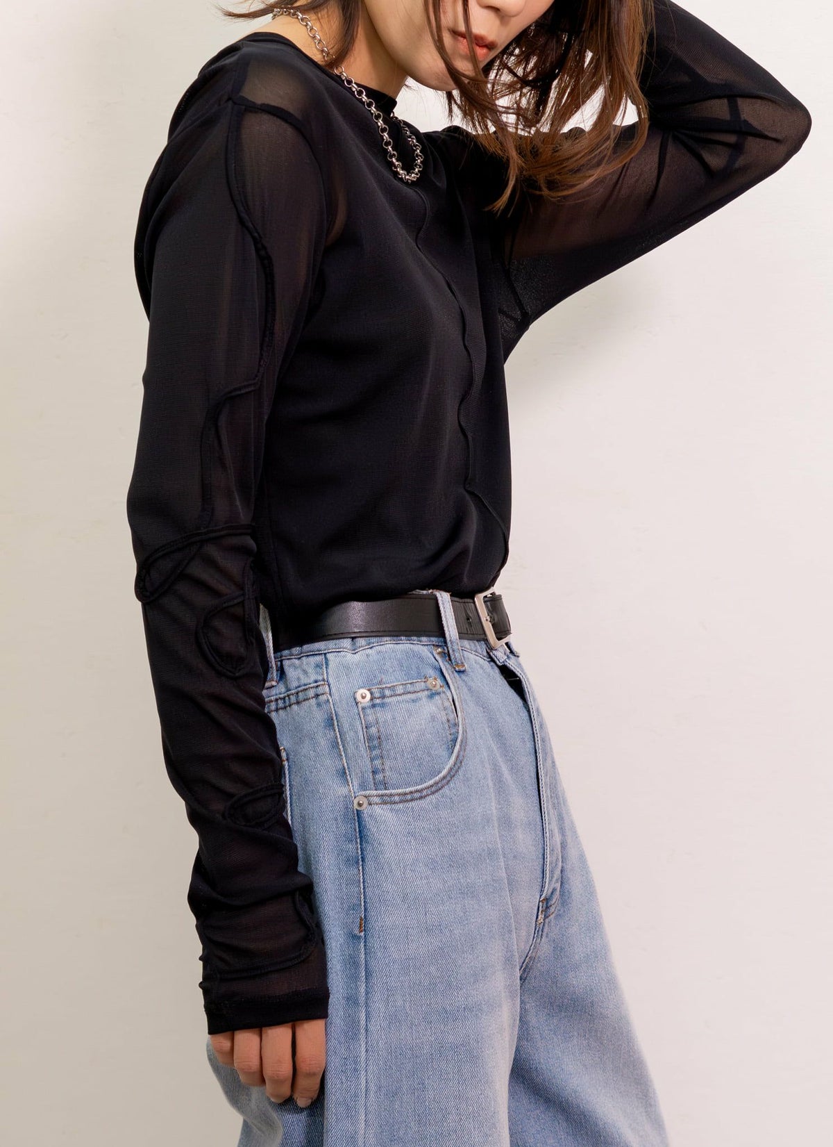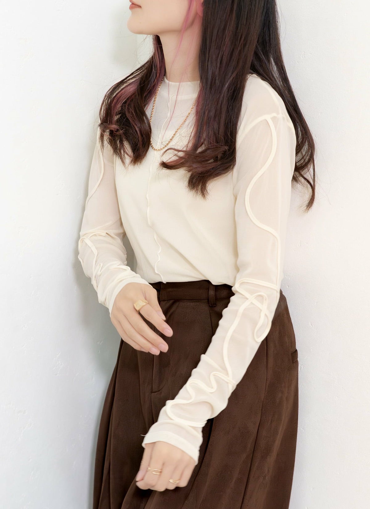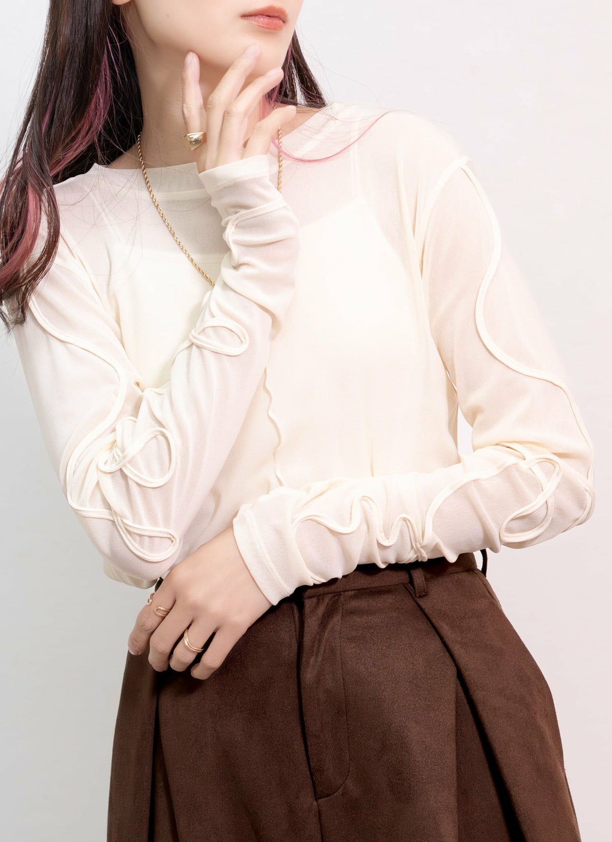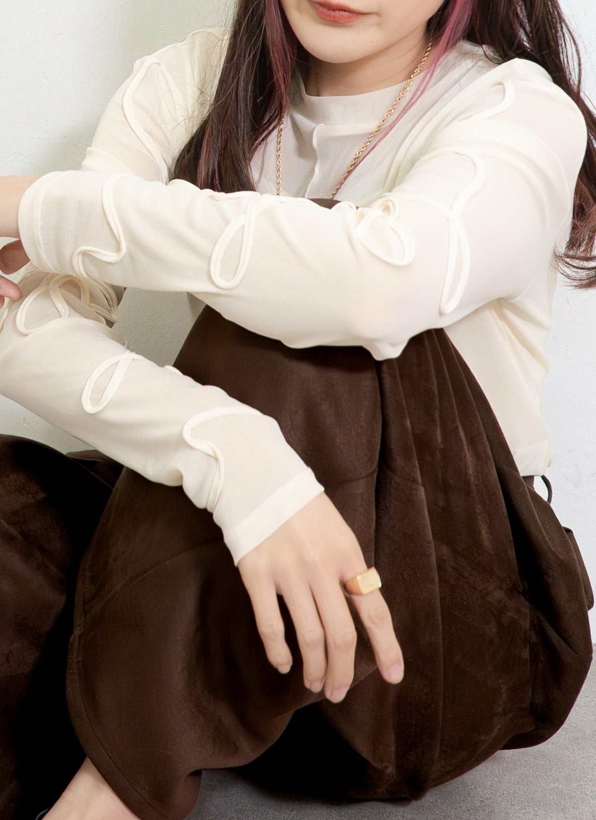 revoam【袖のコードデザインがポイントのシアートップス】 【10%OFF】袖コード刺繍クルーネックプルオーバー