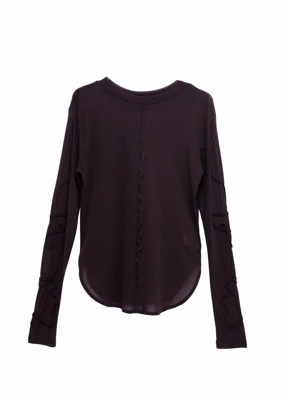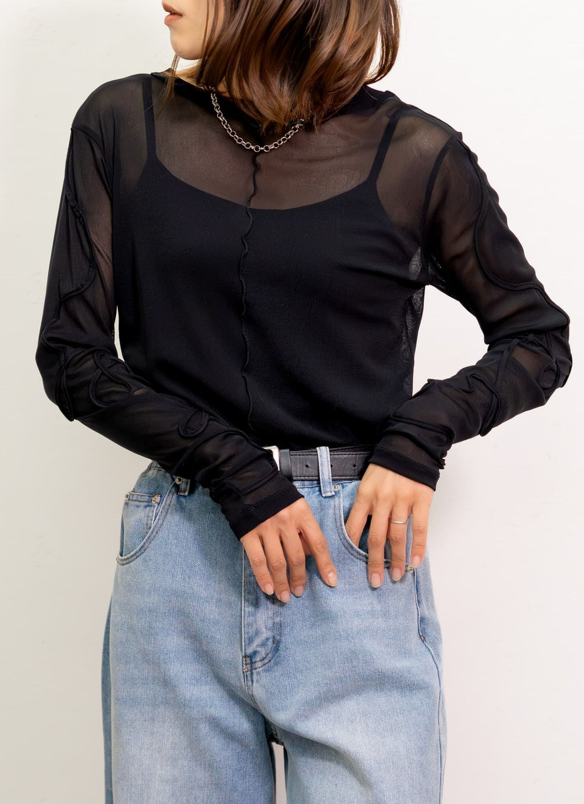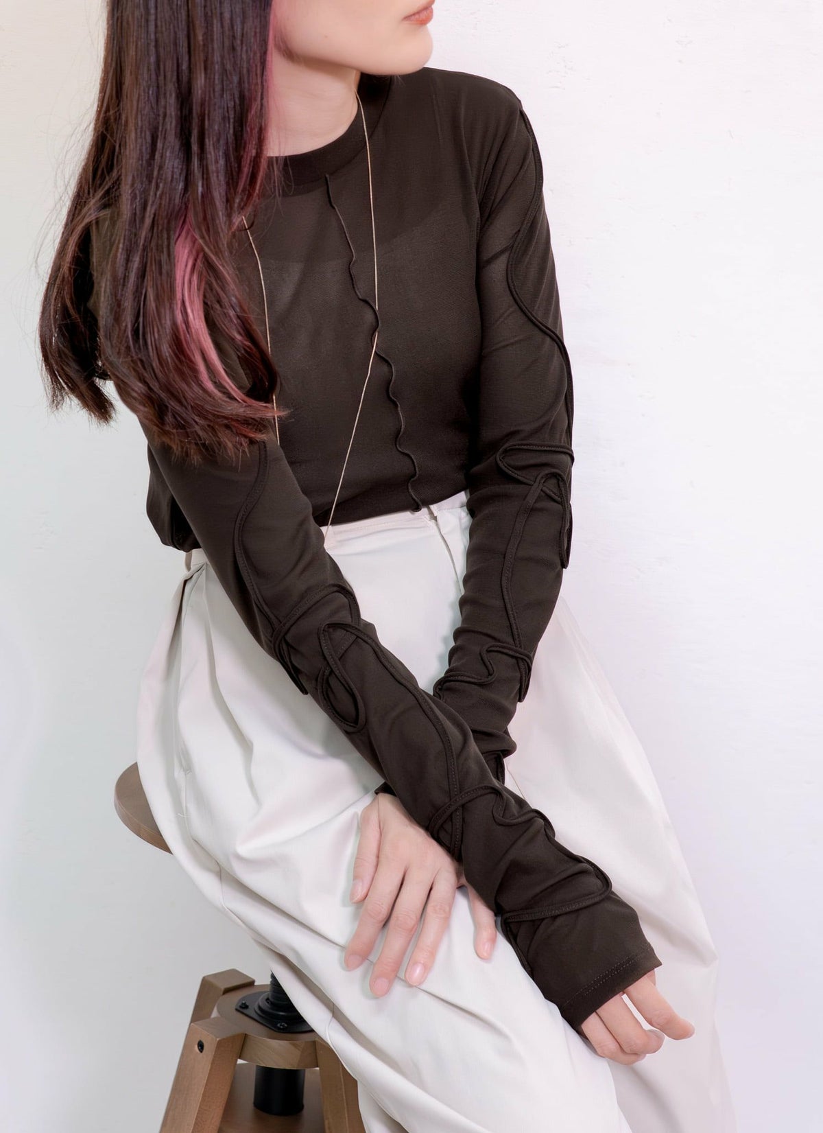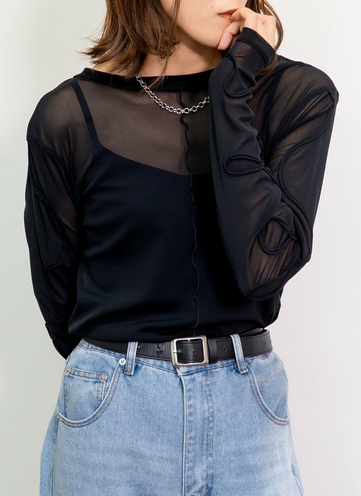 revoam【袖のコードデザインがポイントのシアートップス】 【10%OFF】袖コード刺繍クルーネックプルオーバー