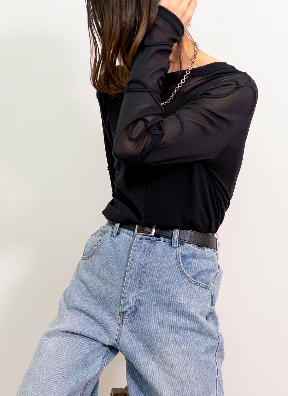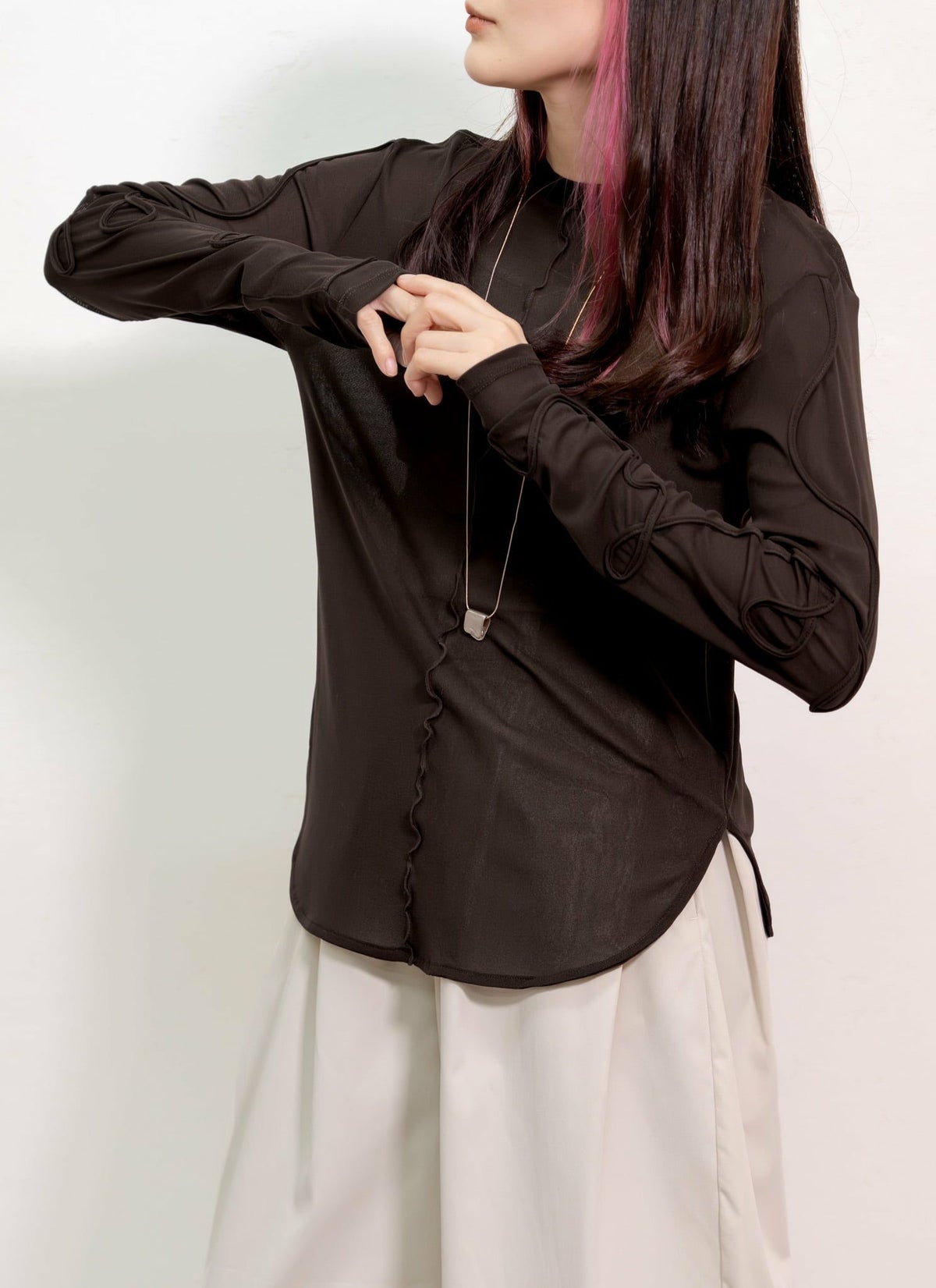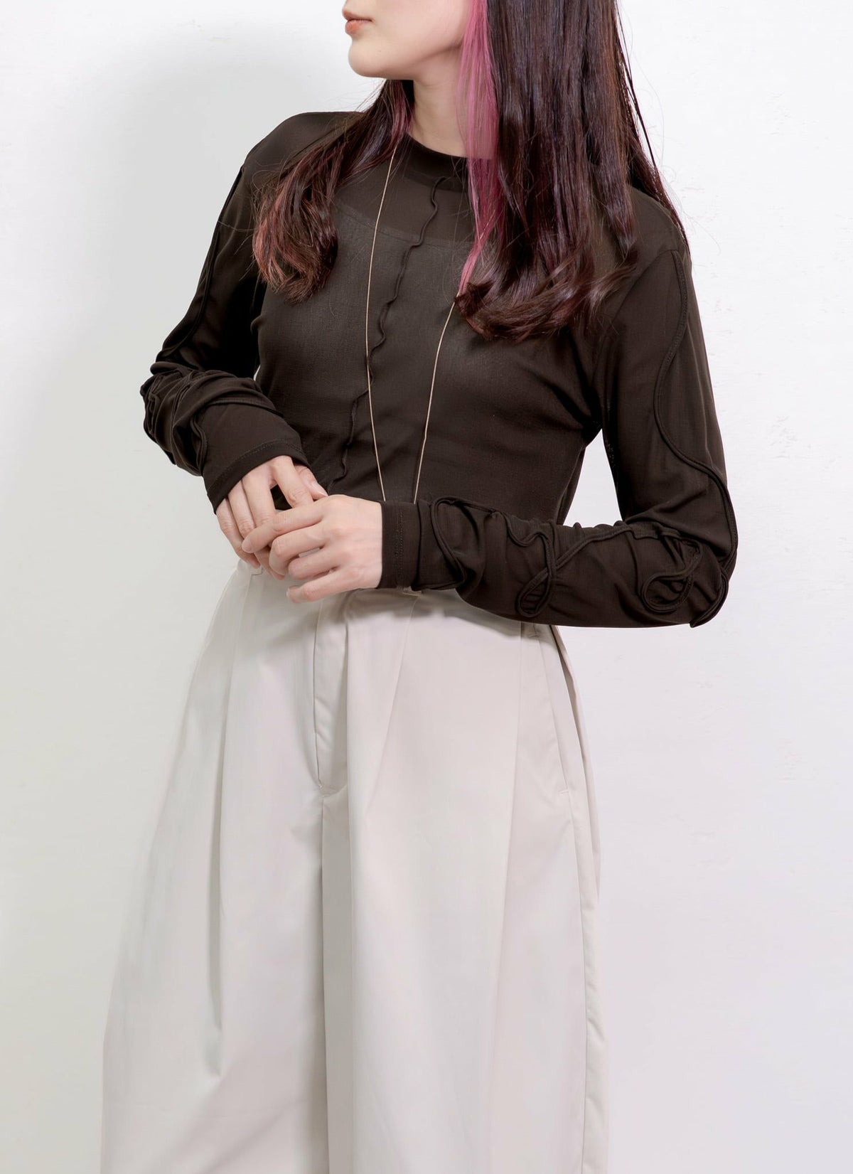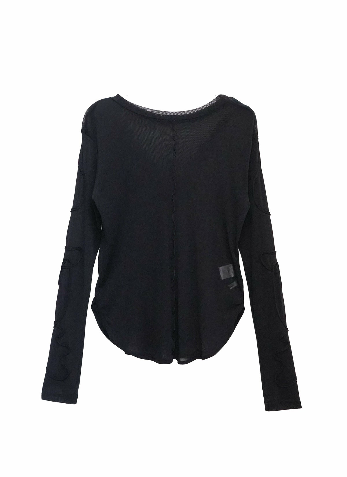 revoam【袖のコードデザインがポイントのシアートップス】 【10%OFF】袖コード刺繍クルーネックプルオーバー