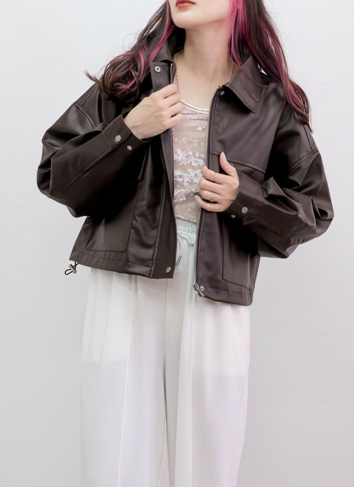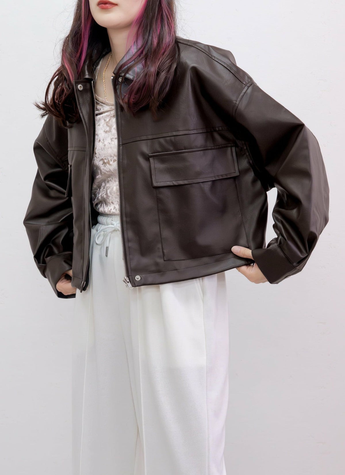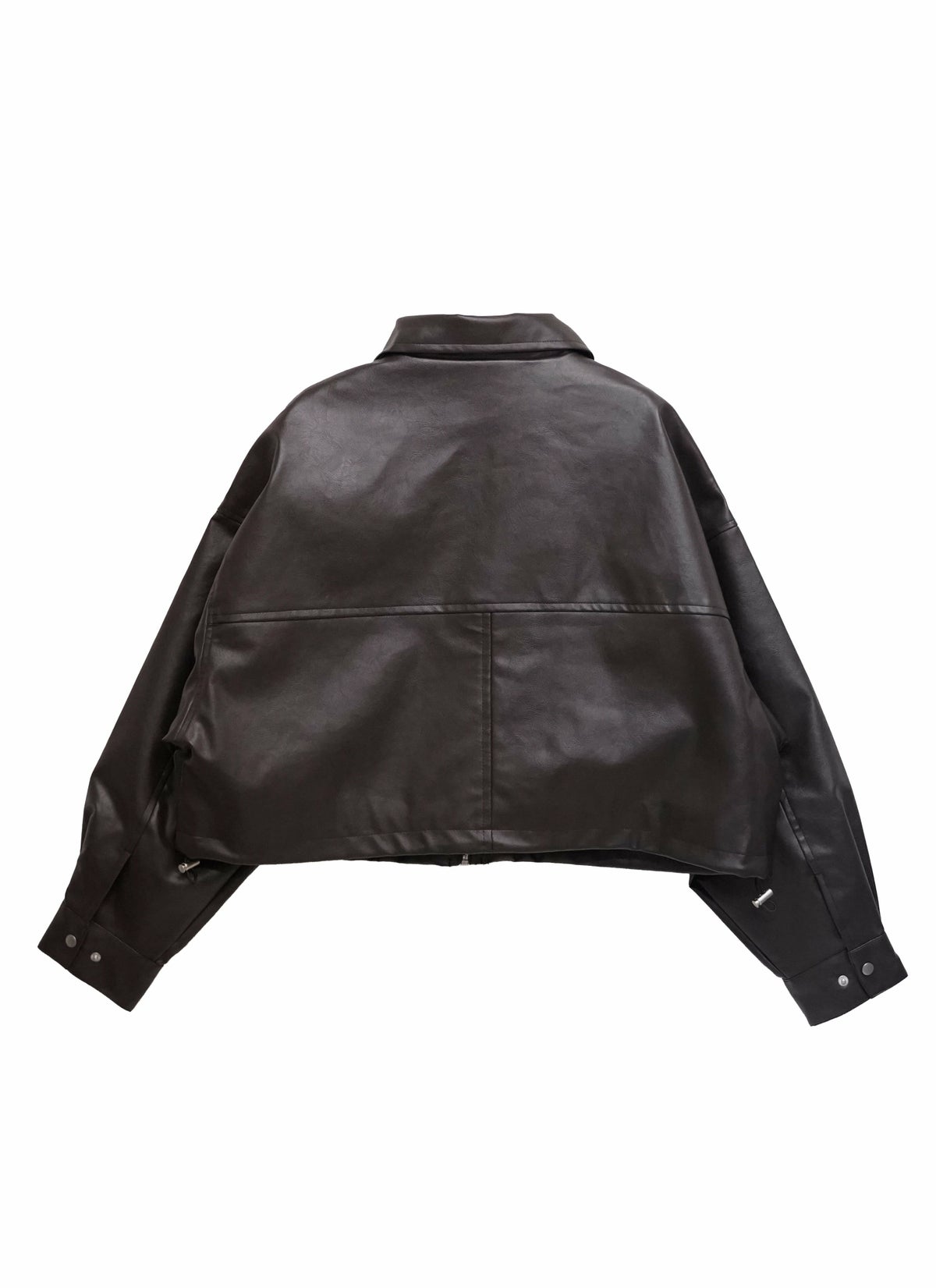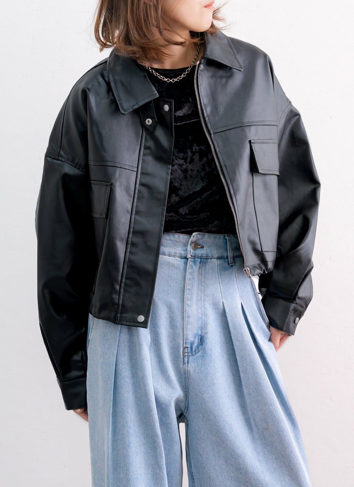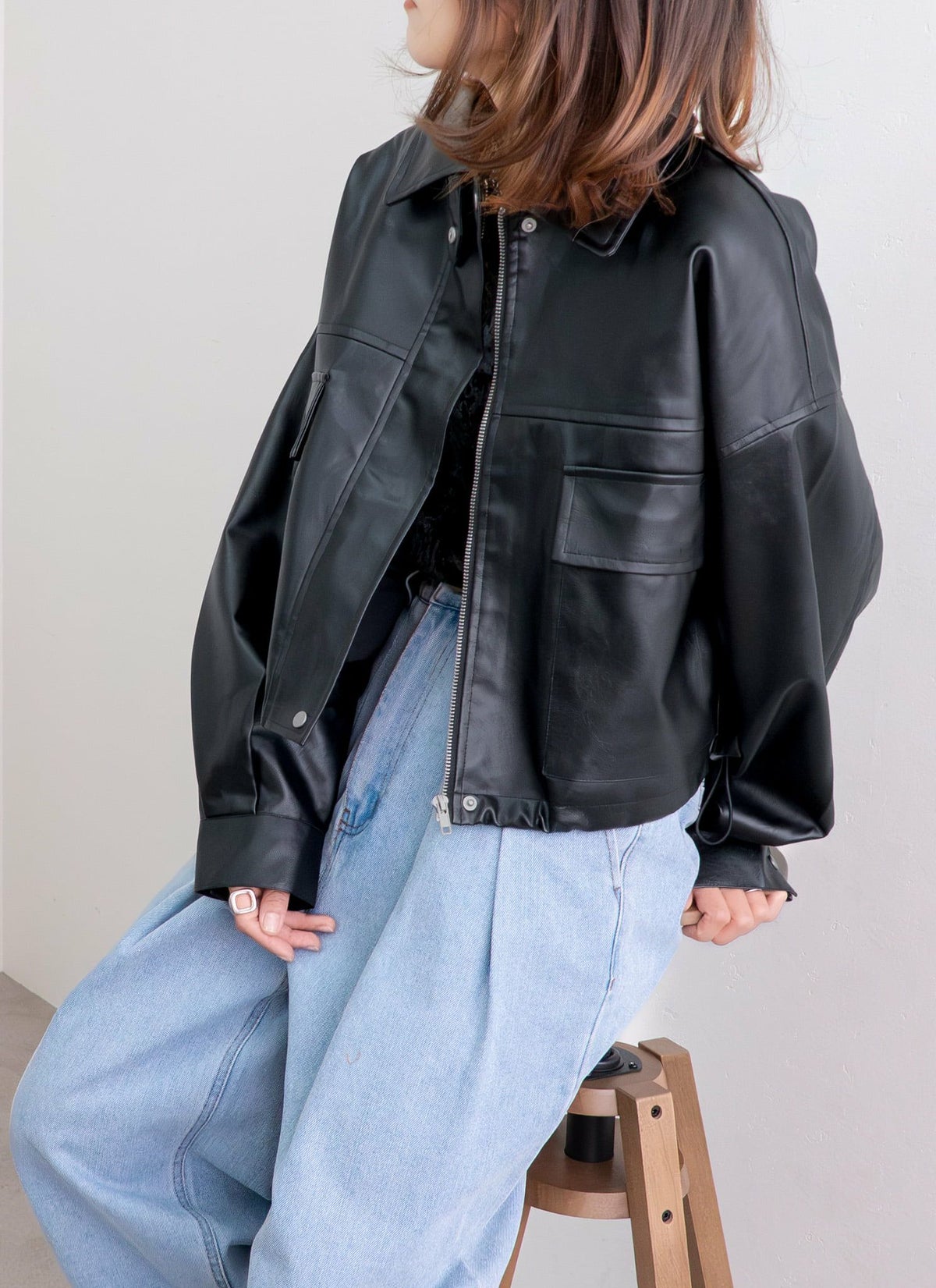 revoam【コンパクトな丈感でスタイルアップ効果抜群】 【10%OFF】フェイクレザーショートブルゾン
