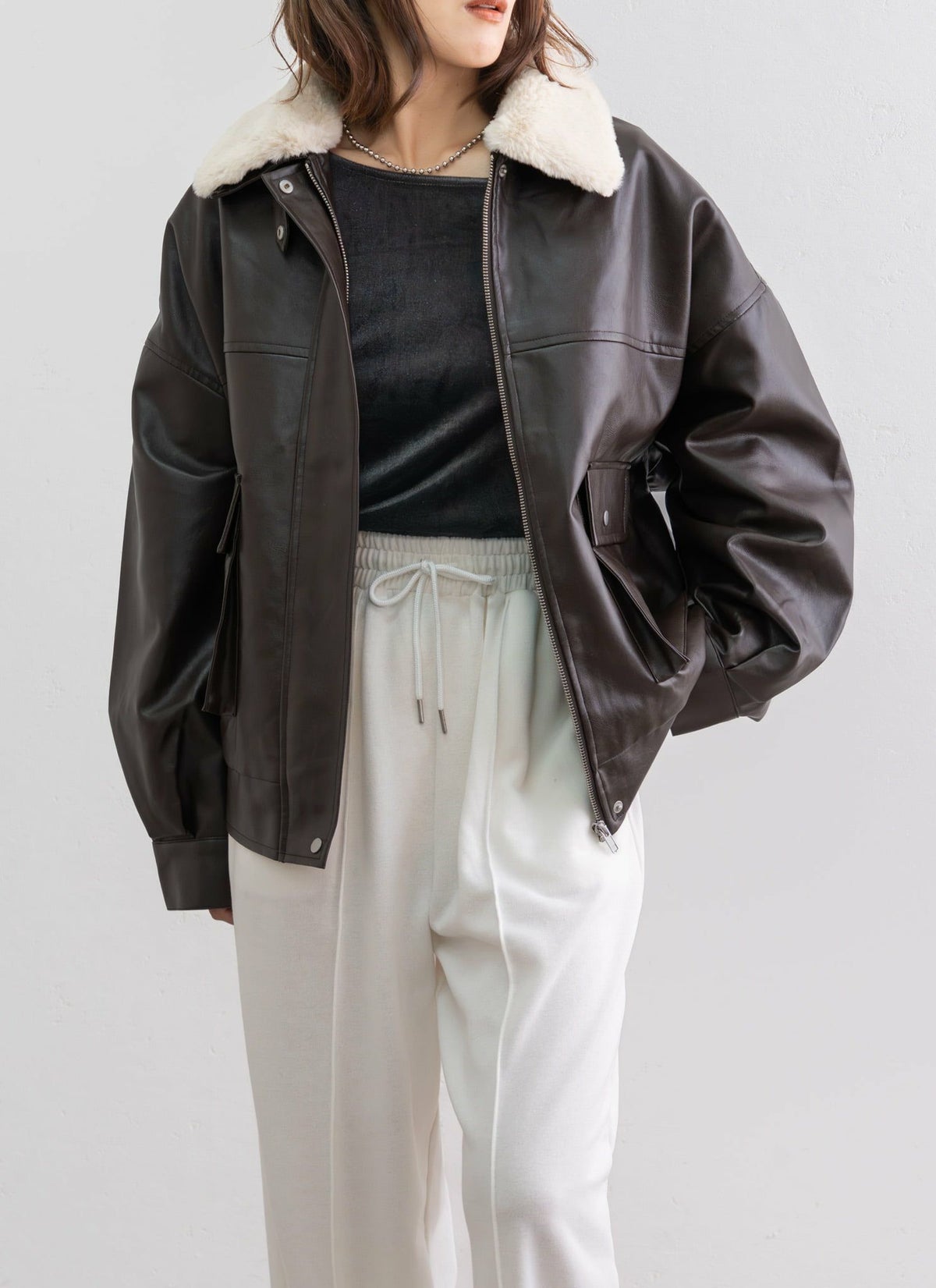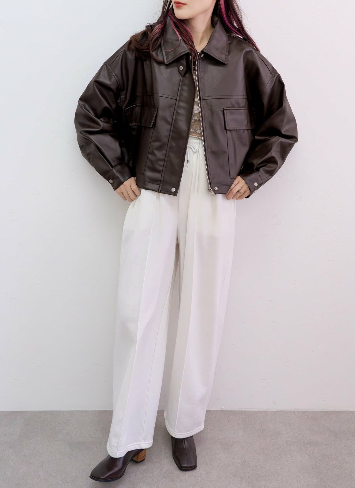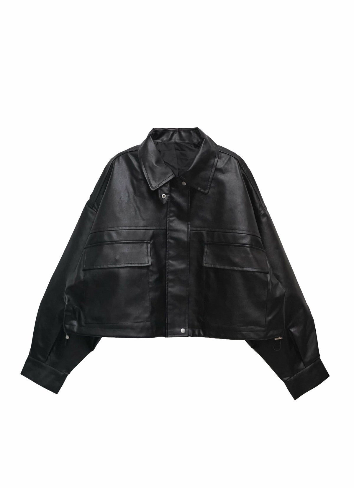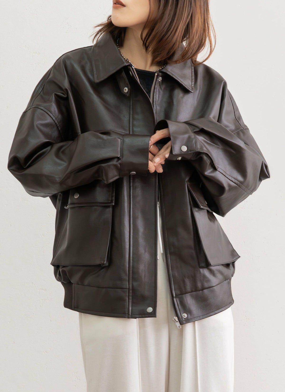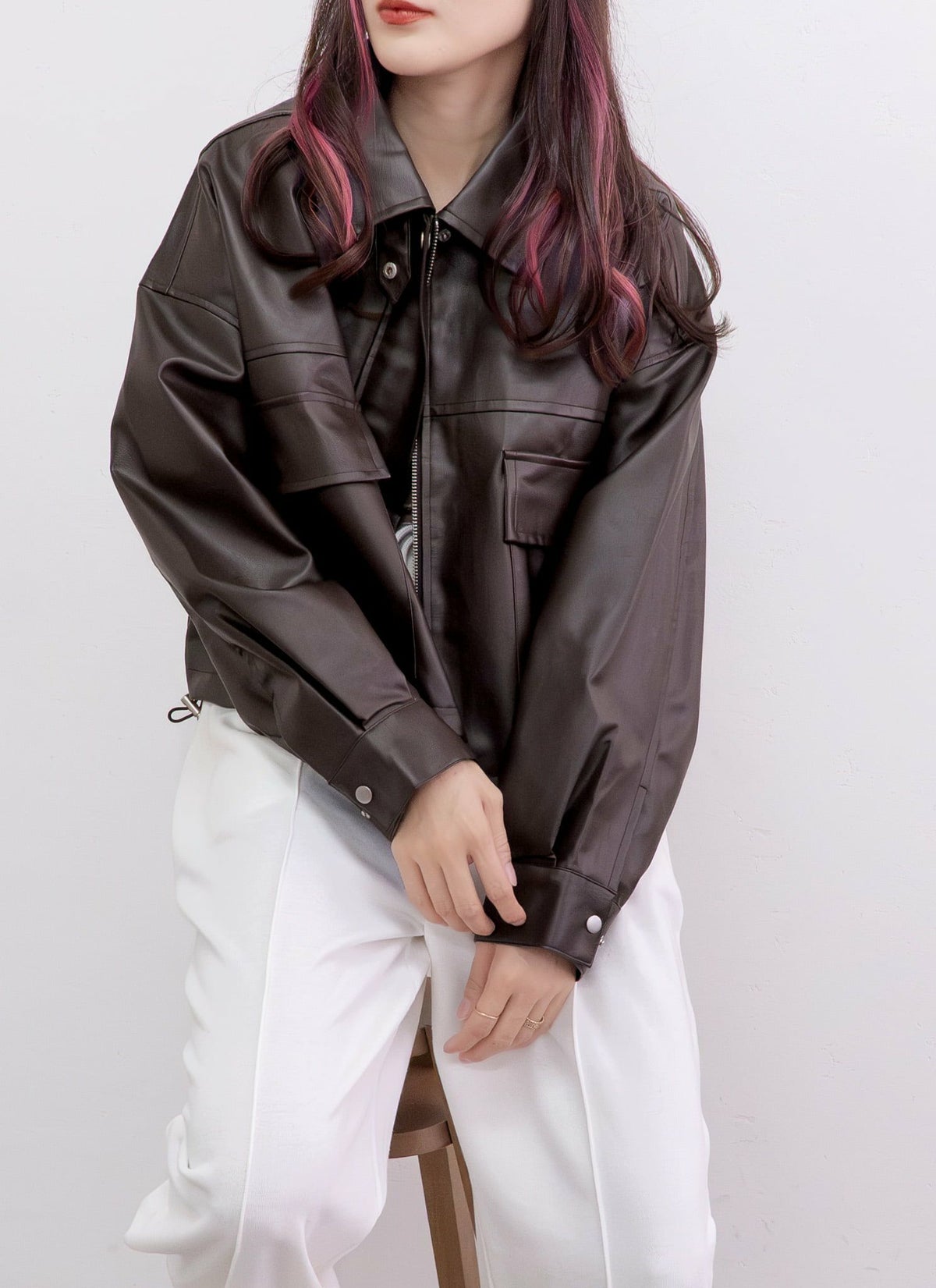 revoam【コンパクトな丈感でスタイルアップ効果抜群】 【10%OFF】フェイクレザーショートブルゾン