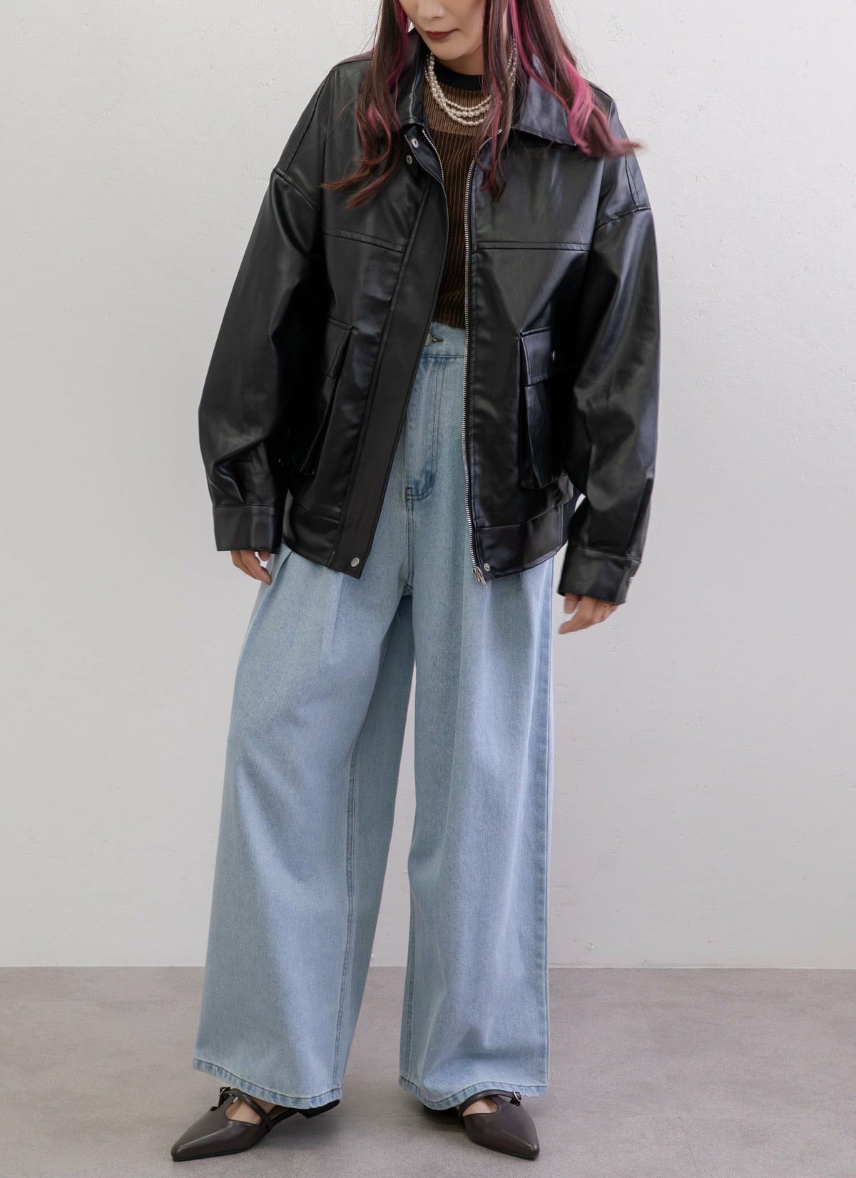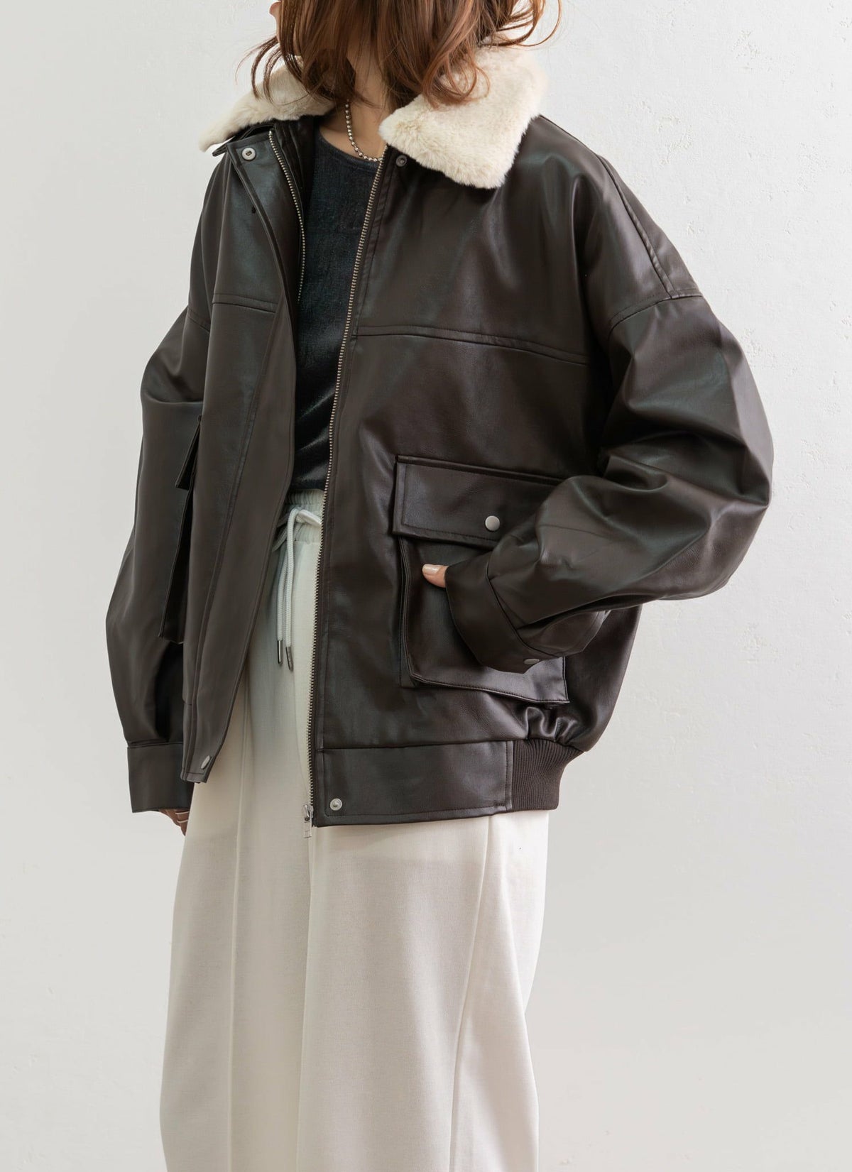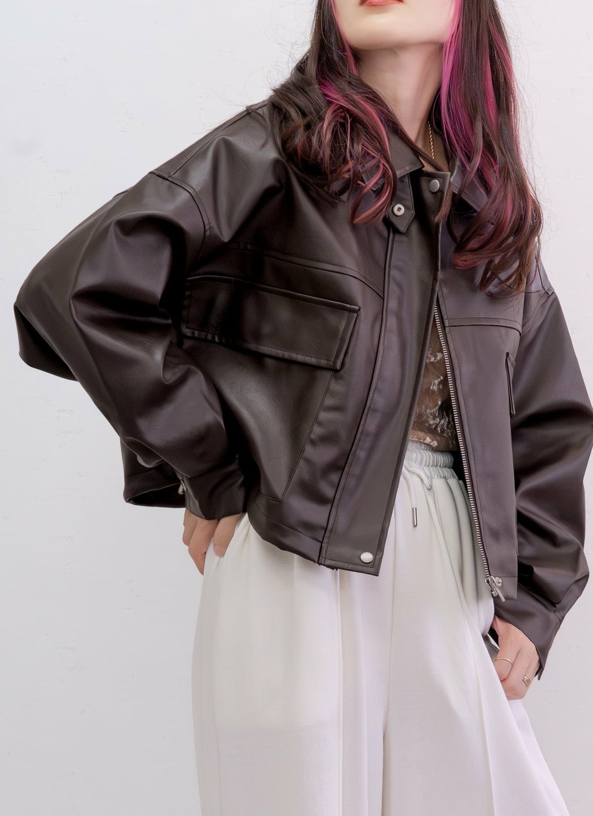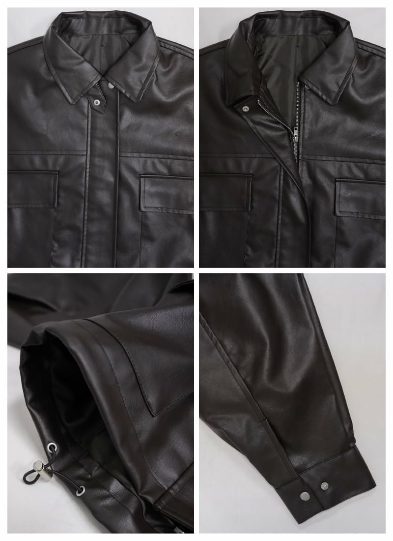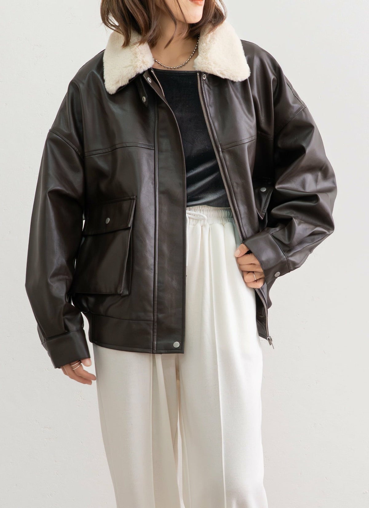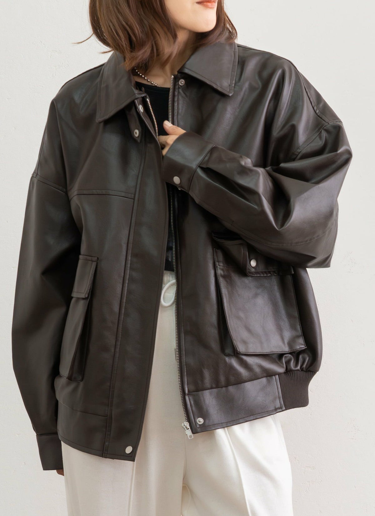 revoam【コンパクトな丈感でスタイルアップ効果抜群】 【10%OFF】フェイクレザーショートブルゾン