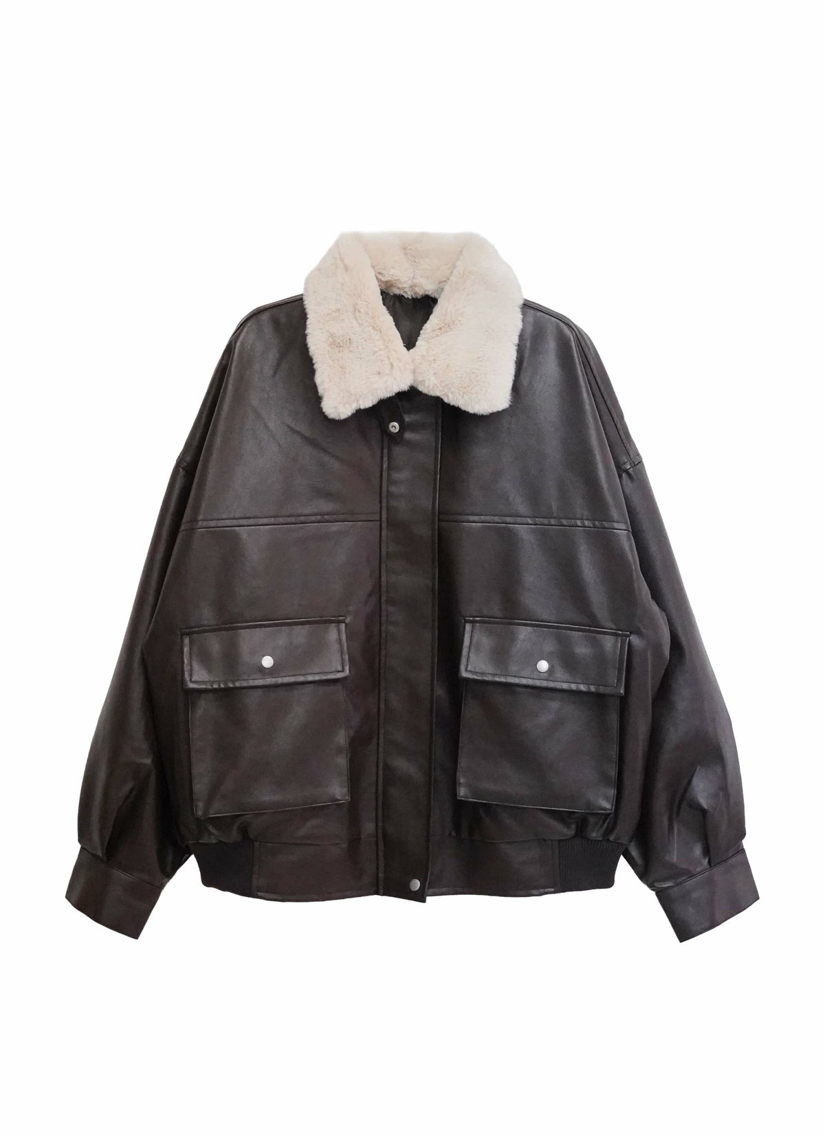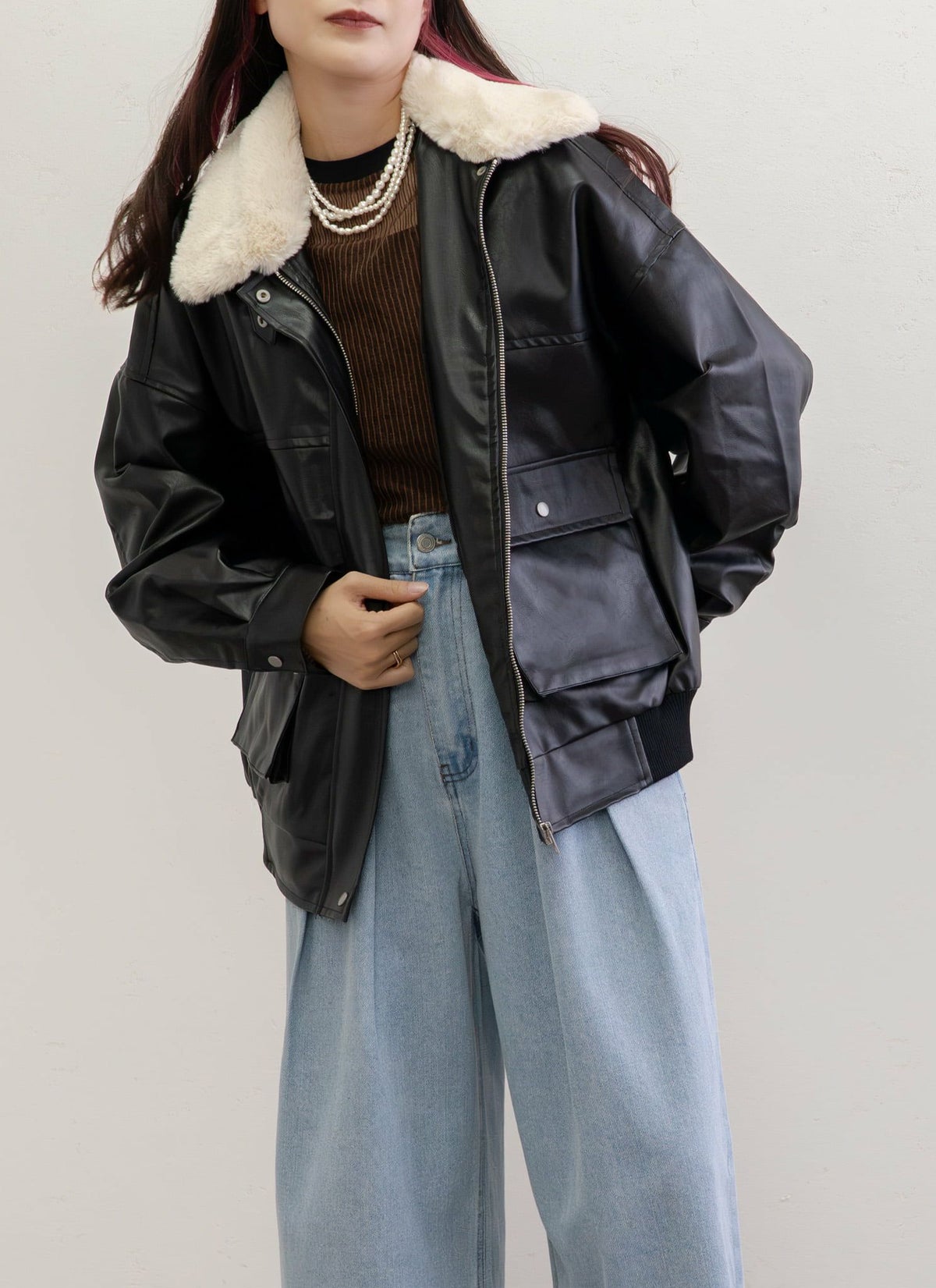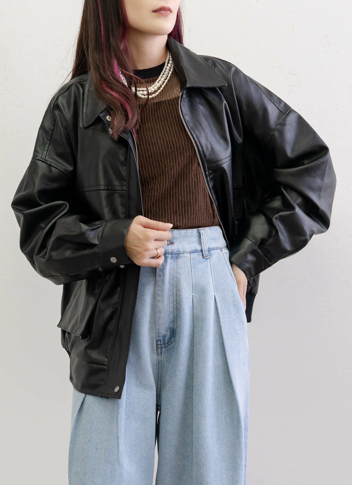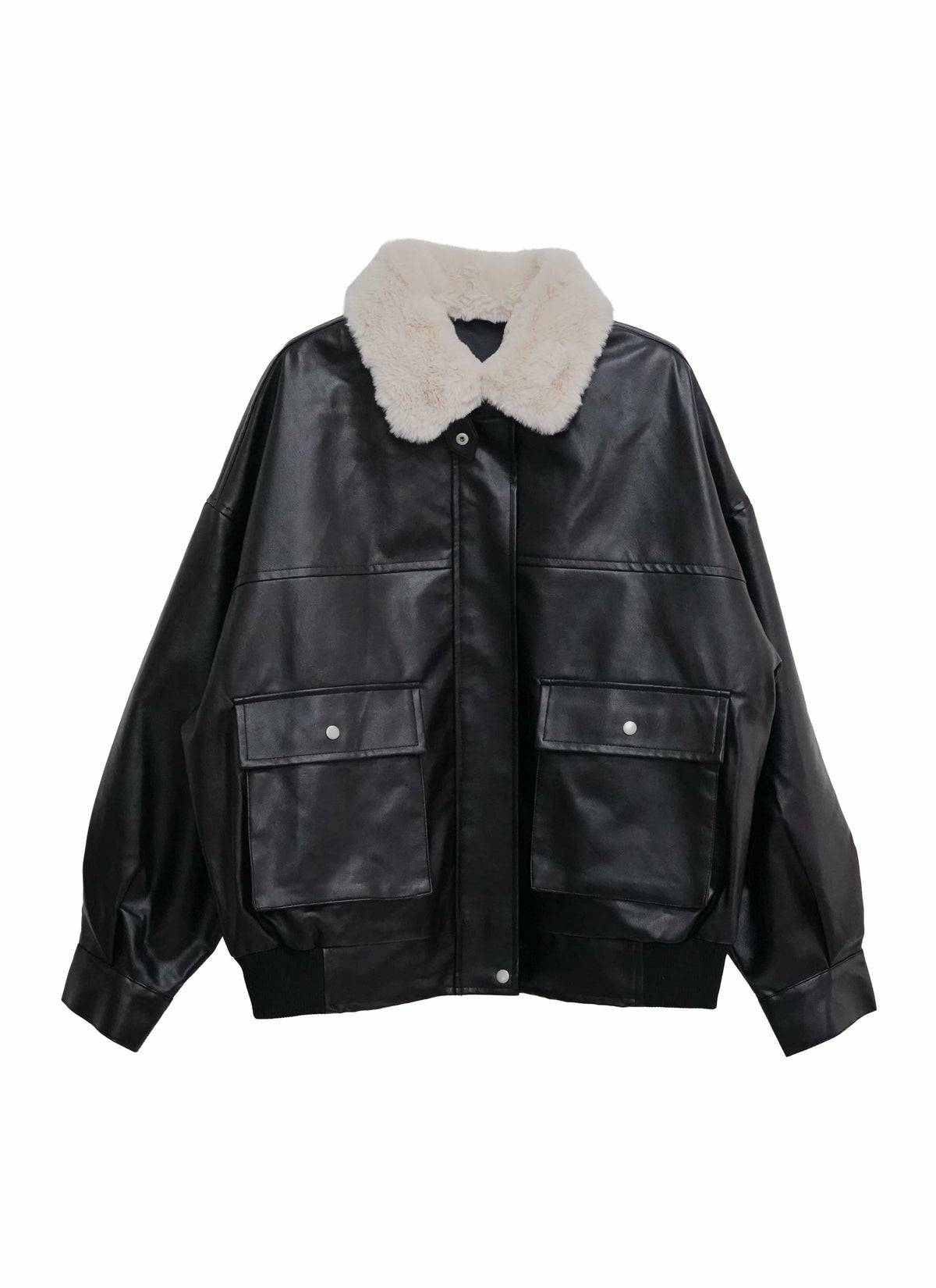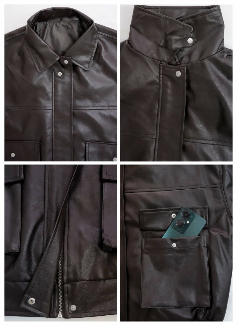 revoam【コンパクトな丈感でスタイルアップ効果抜群】 【10%OFF】フェイクレザーショートブルゾン