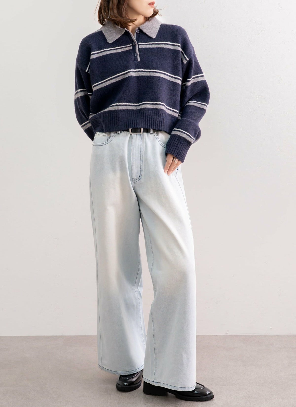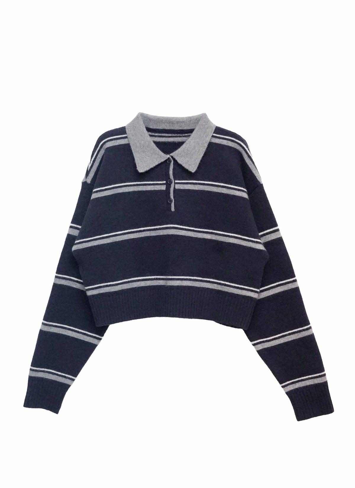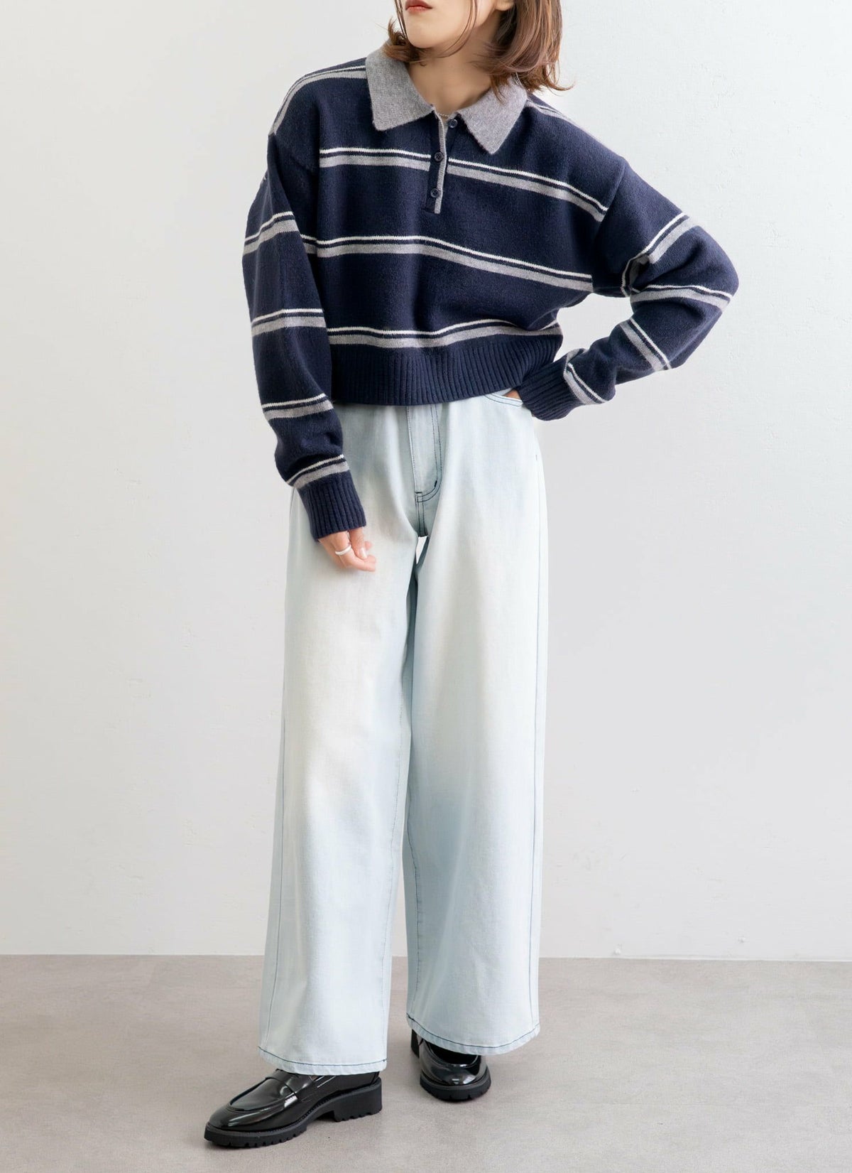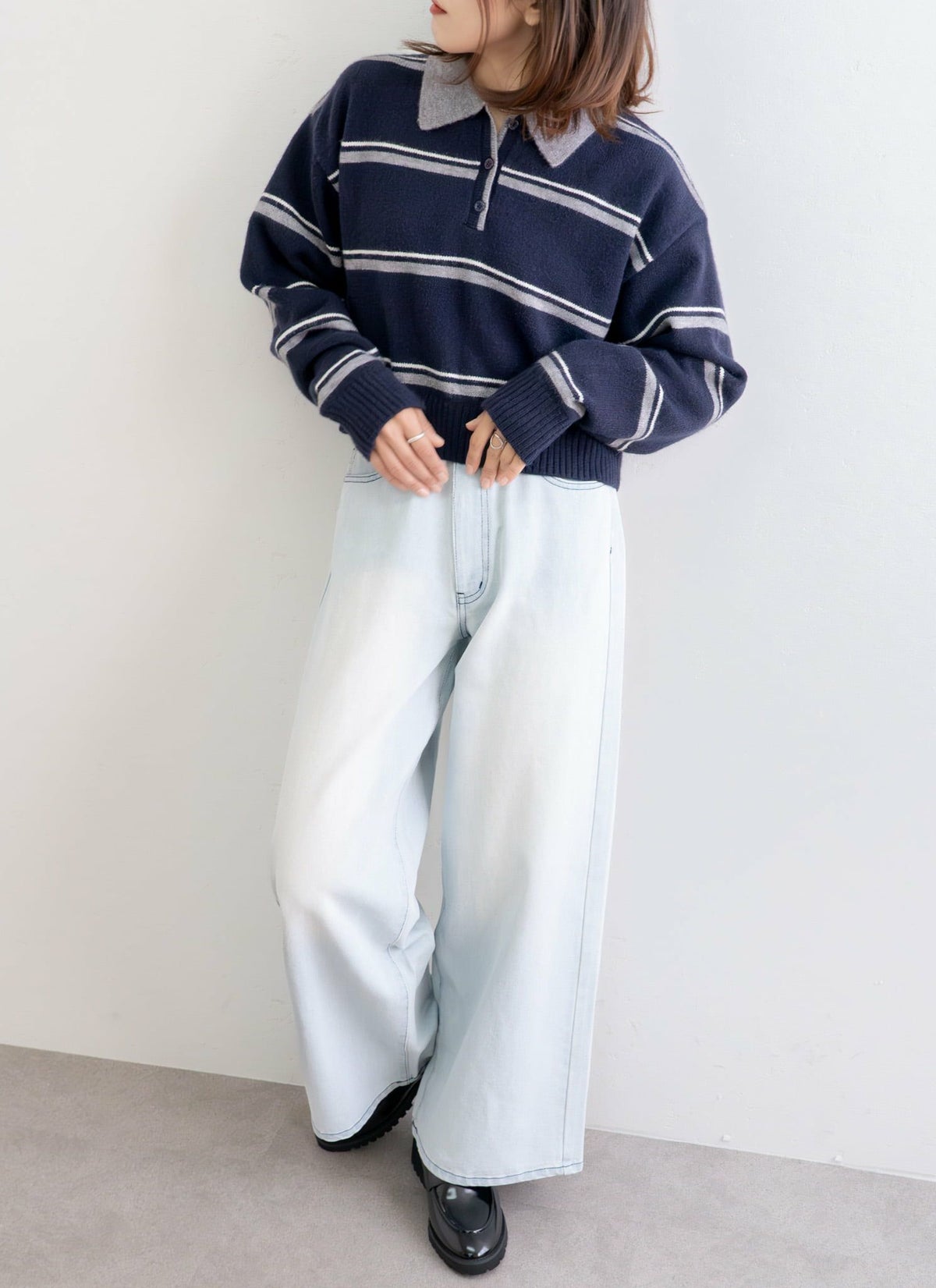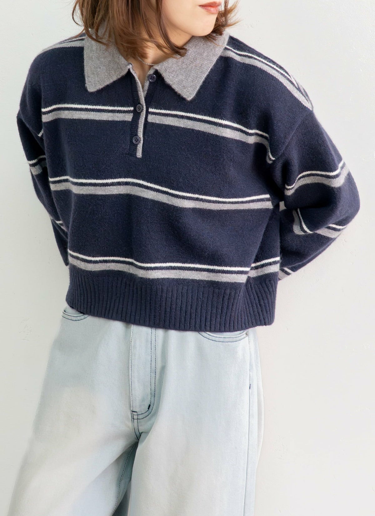 revoam【大人カジュアルな雰囲気を演出してくれる、ボーダーポロニット】 【20%OFF】ボーダー衿配色ニットポロ