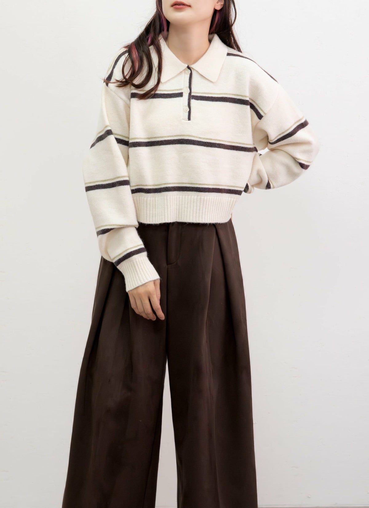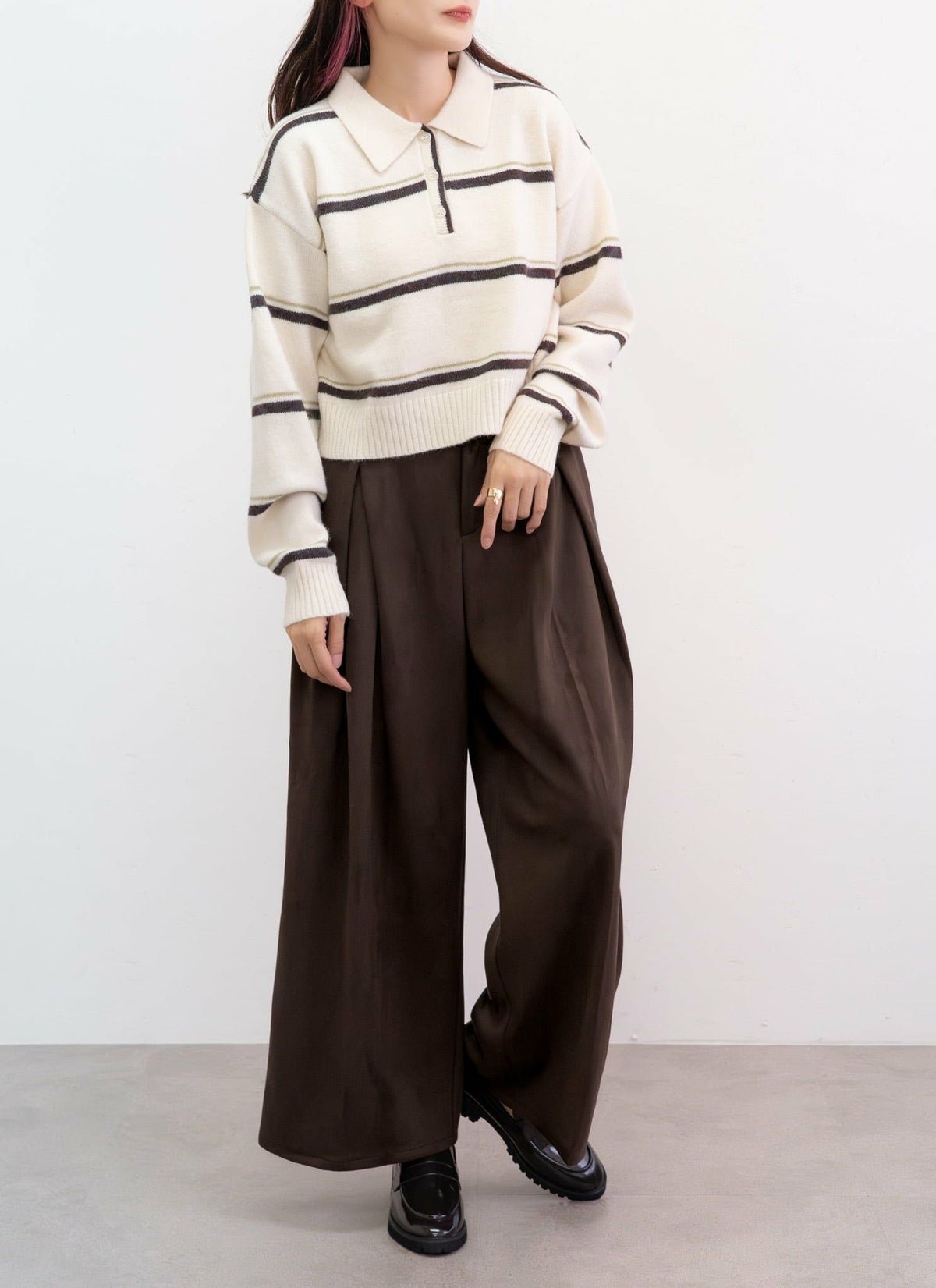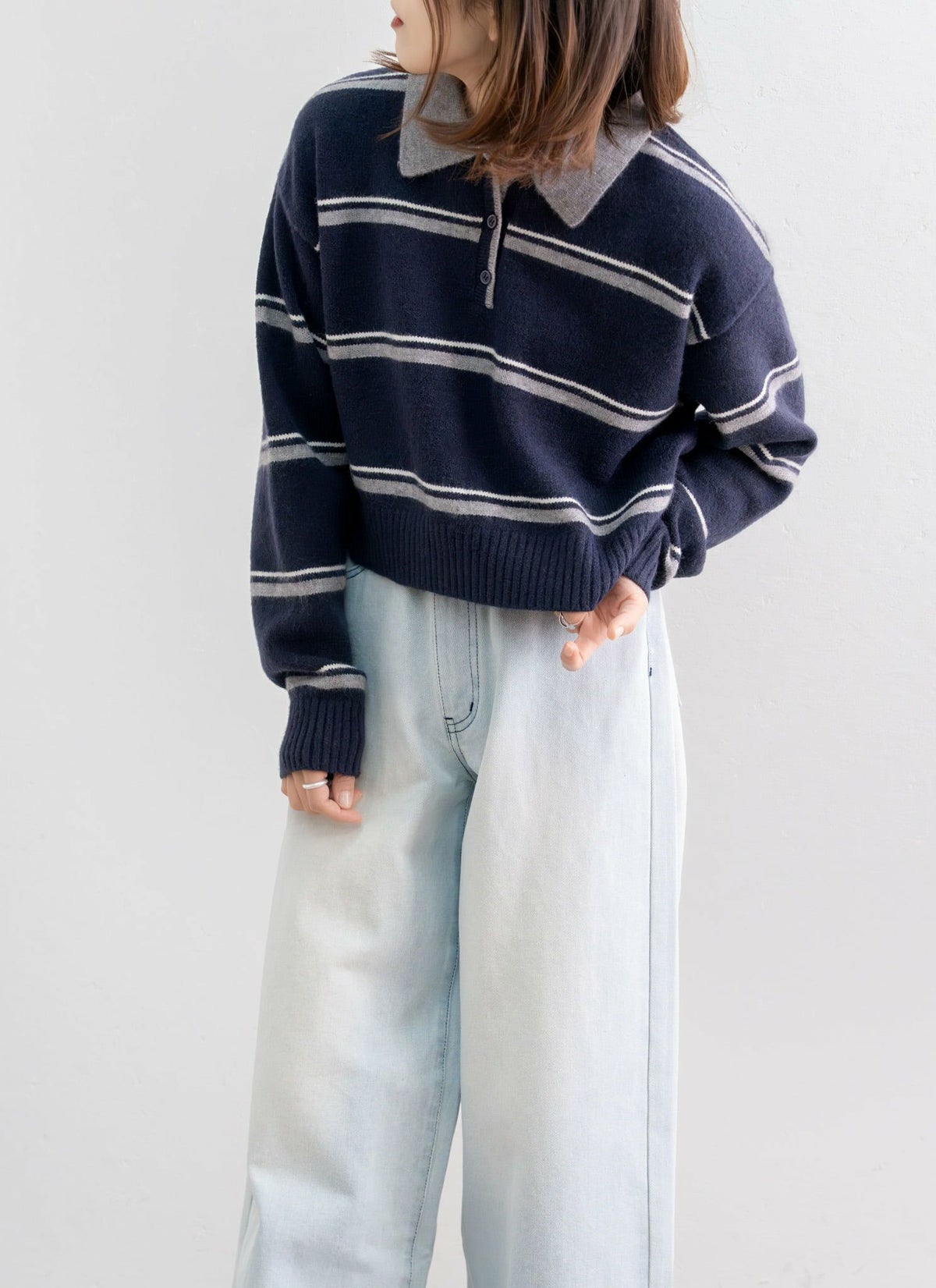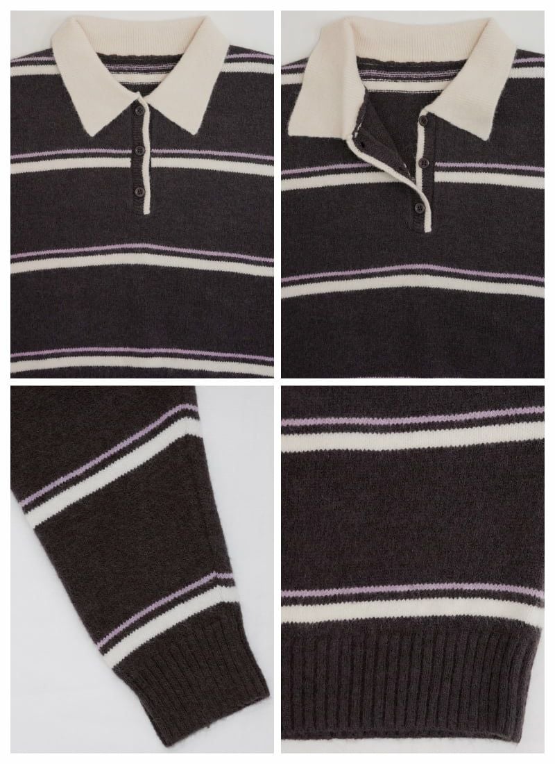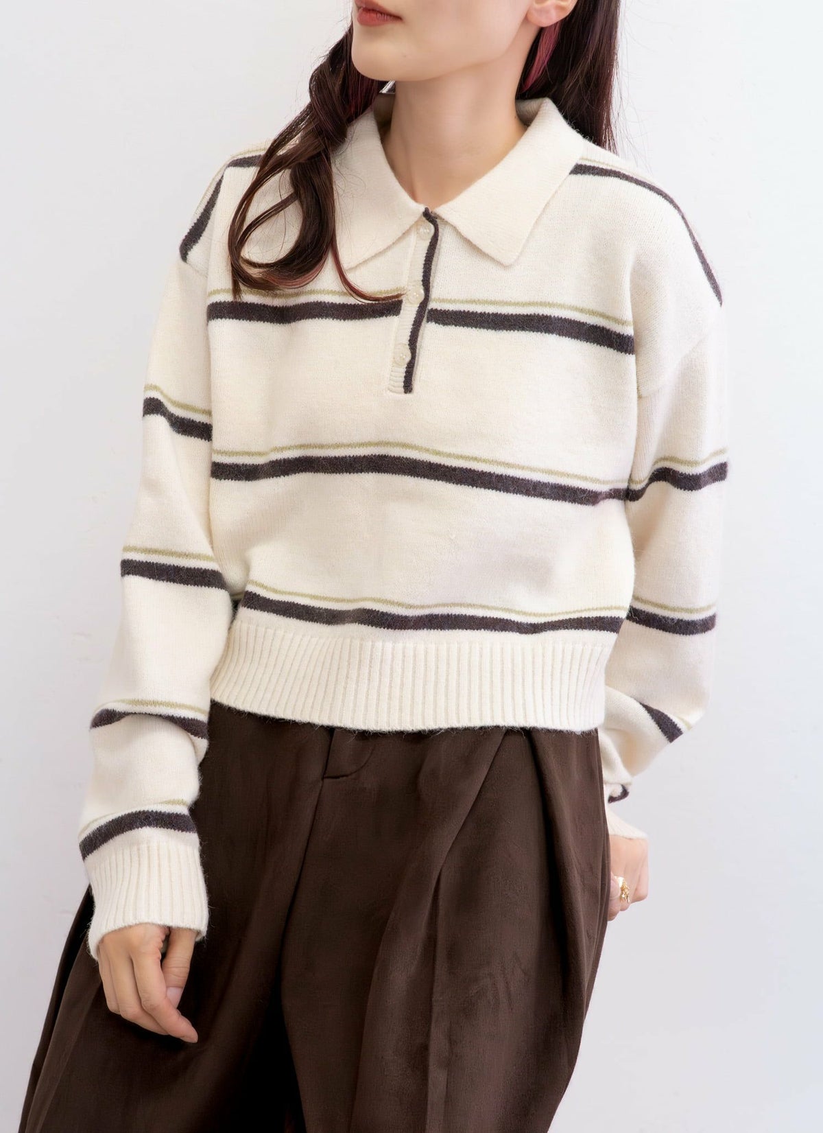 revoam【大人カジュアルな雰囲気を演出してくれる、ボーダーポロニット】 【20%OFF】ボーダー衿配色ニットポロ