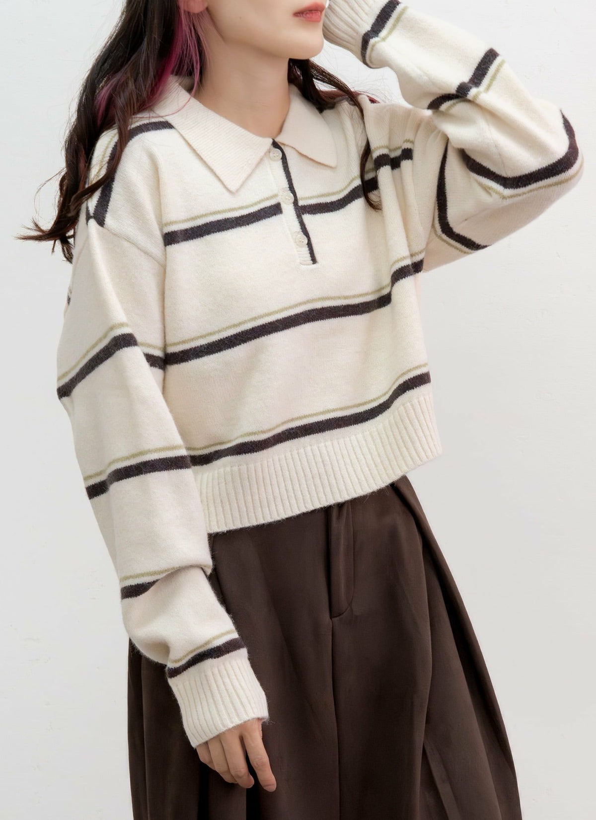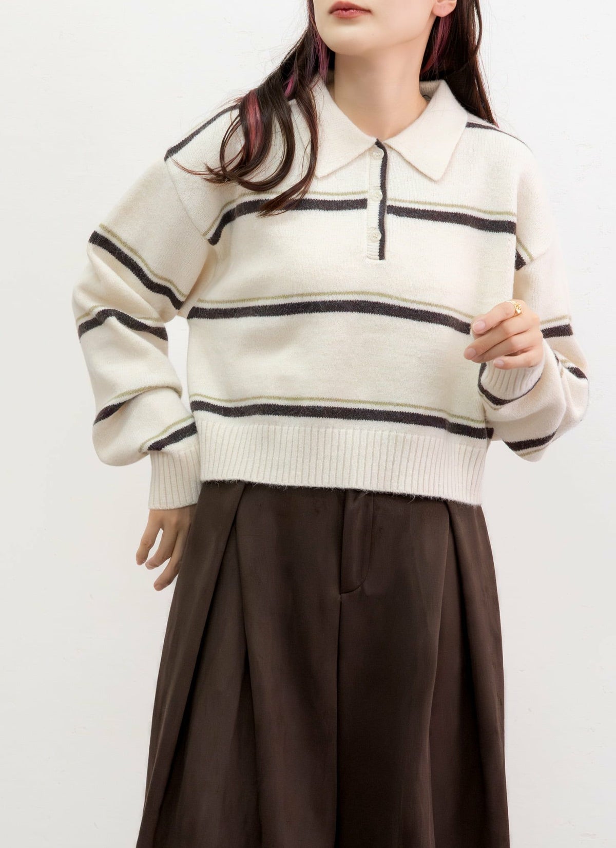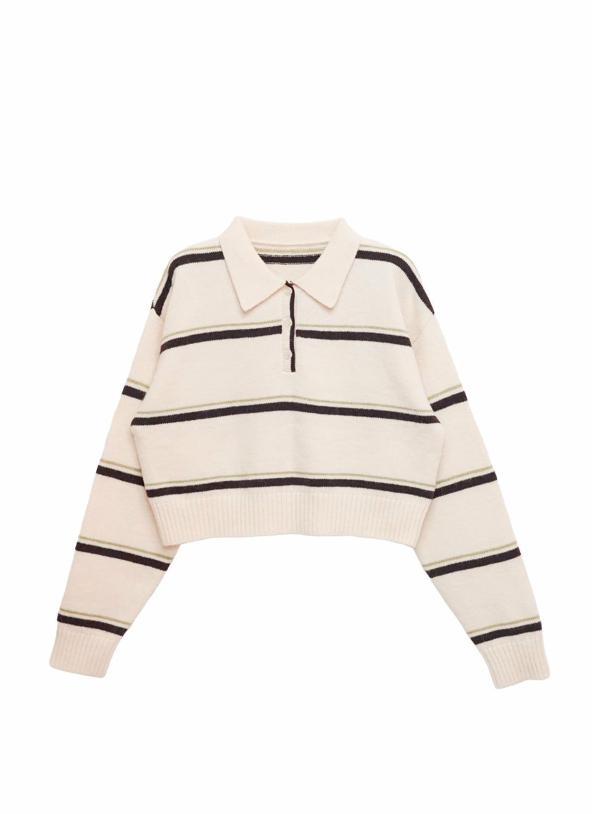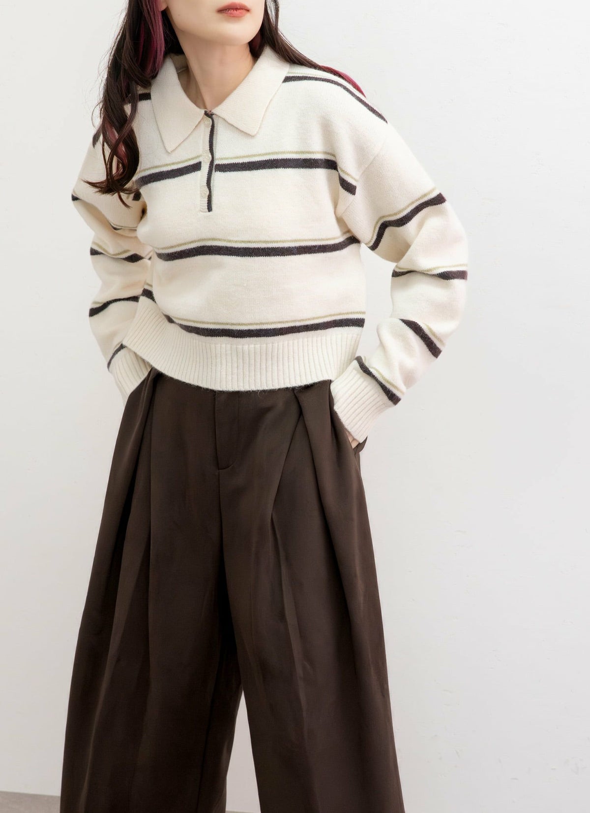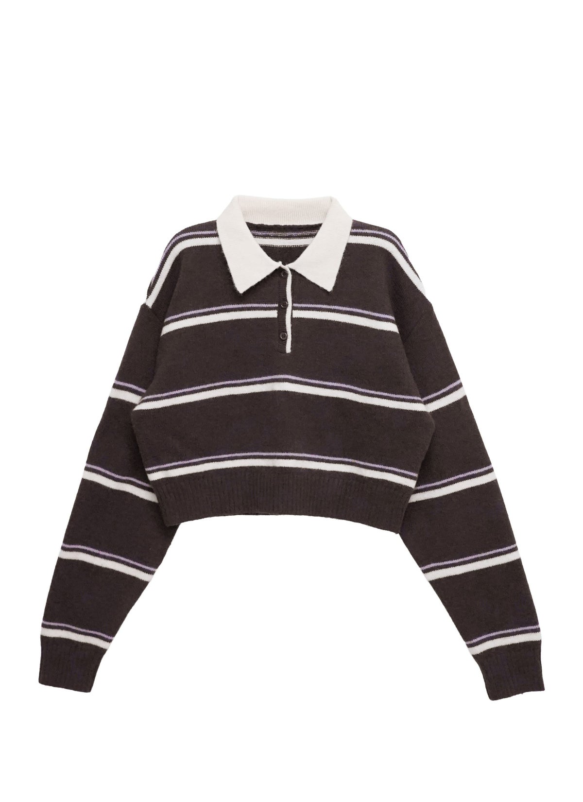 revoam【大人カジュアルな雰囲気を演出してくれる、ボーダーポロニット】 【20%OFF】ボーダー衿配色ニットポロ