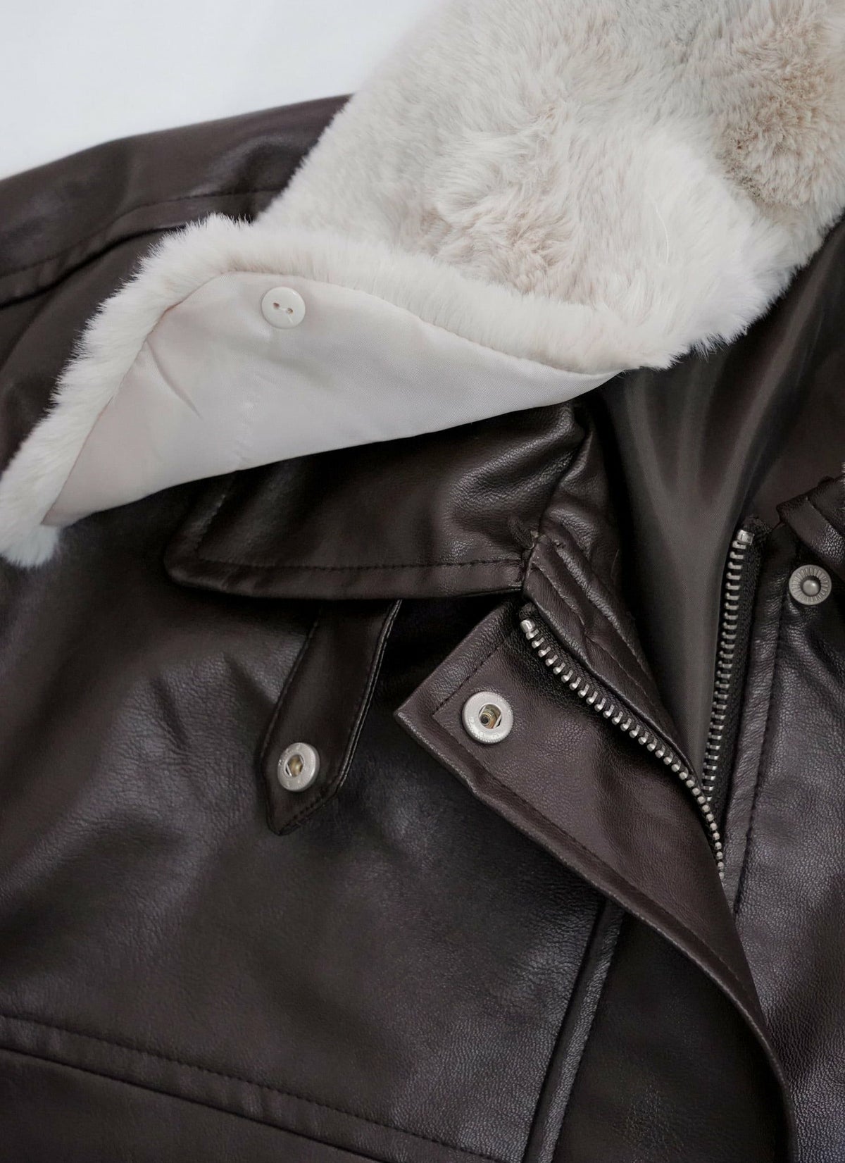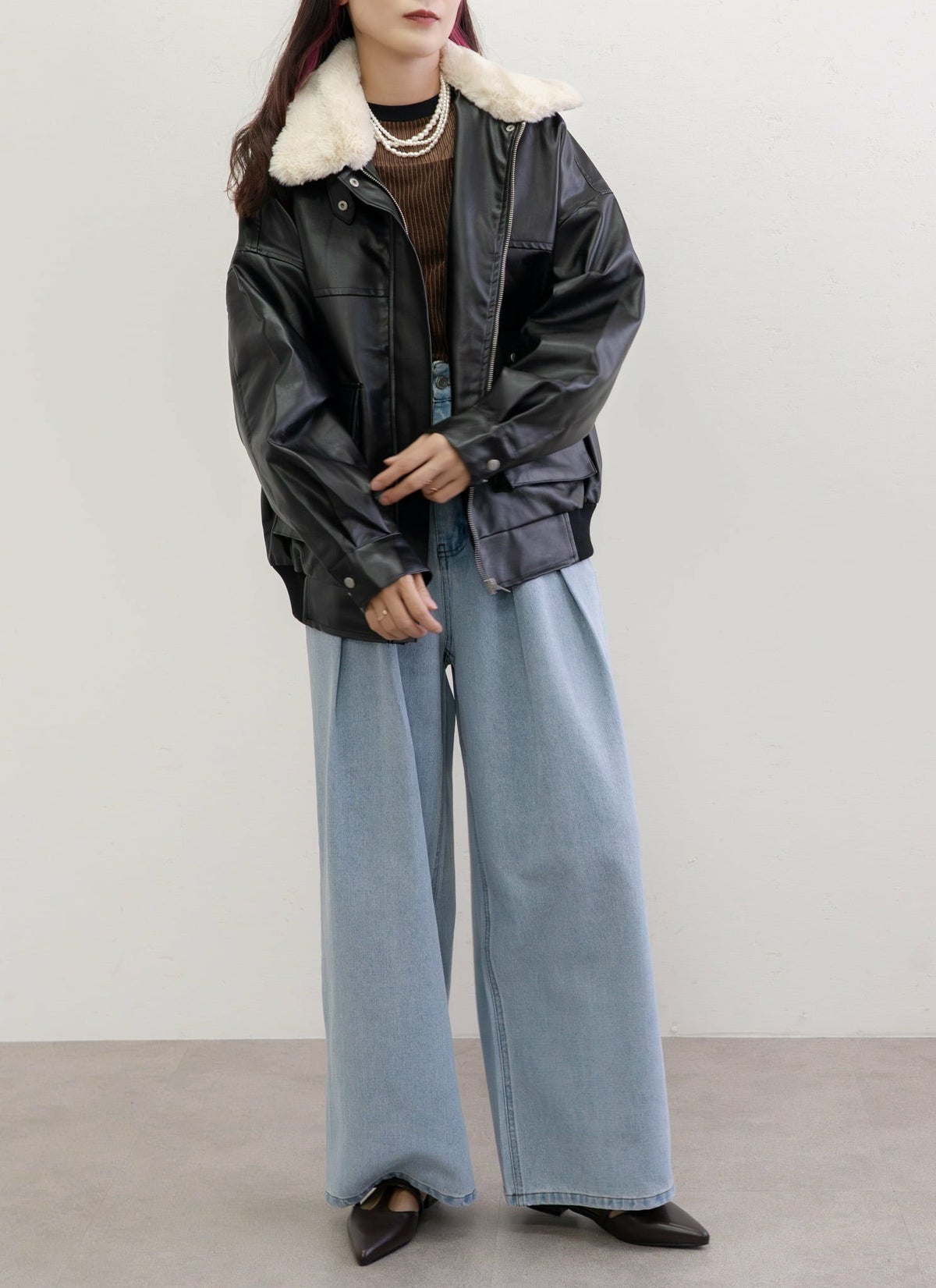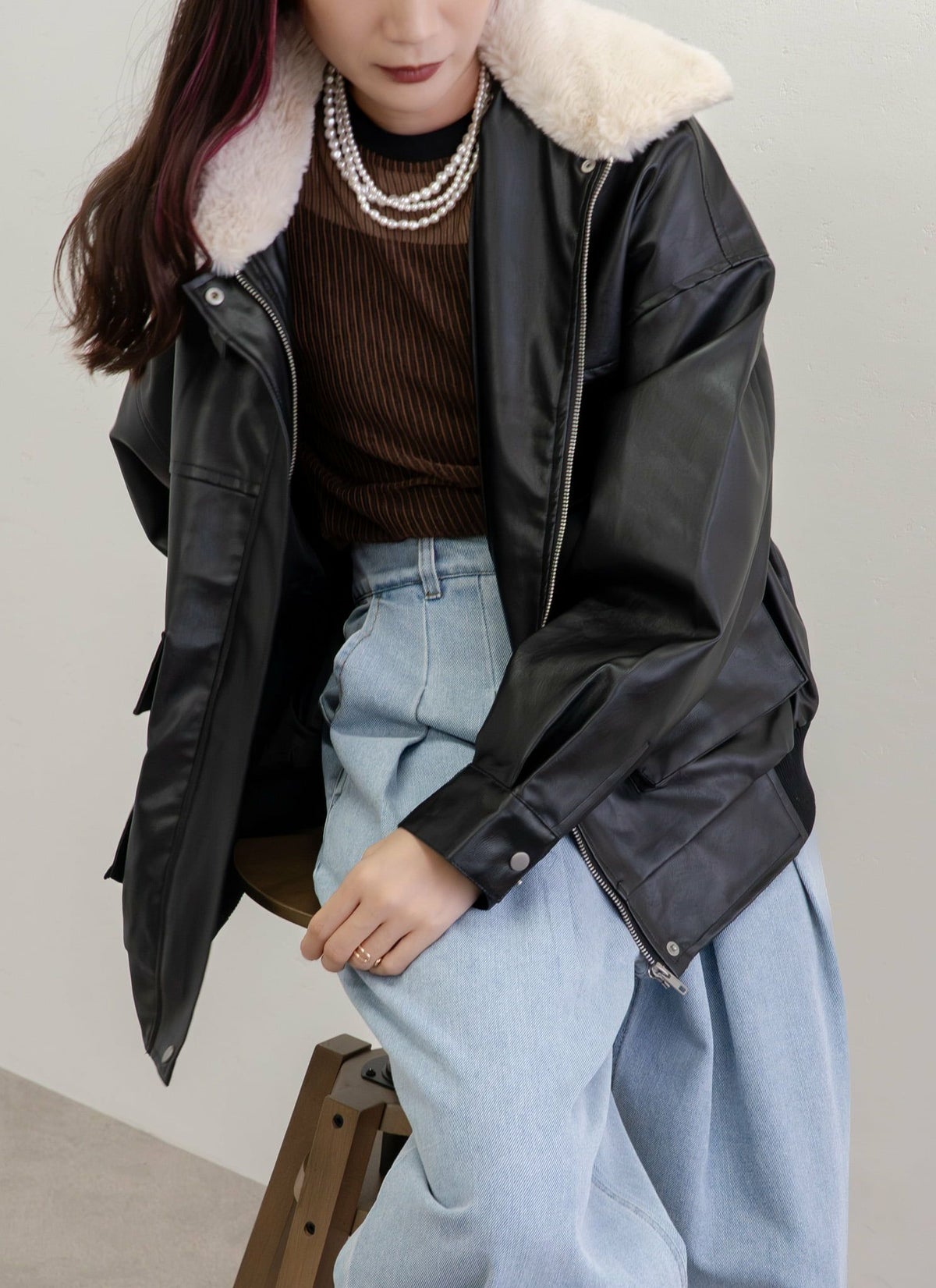 revoam【取り外し可能のティペット付き】 【10%OFF】ティペット付きレザーブルゾン