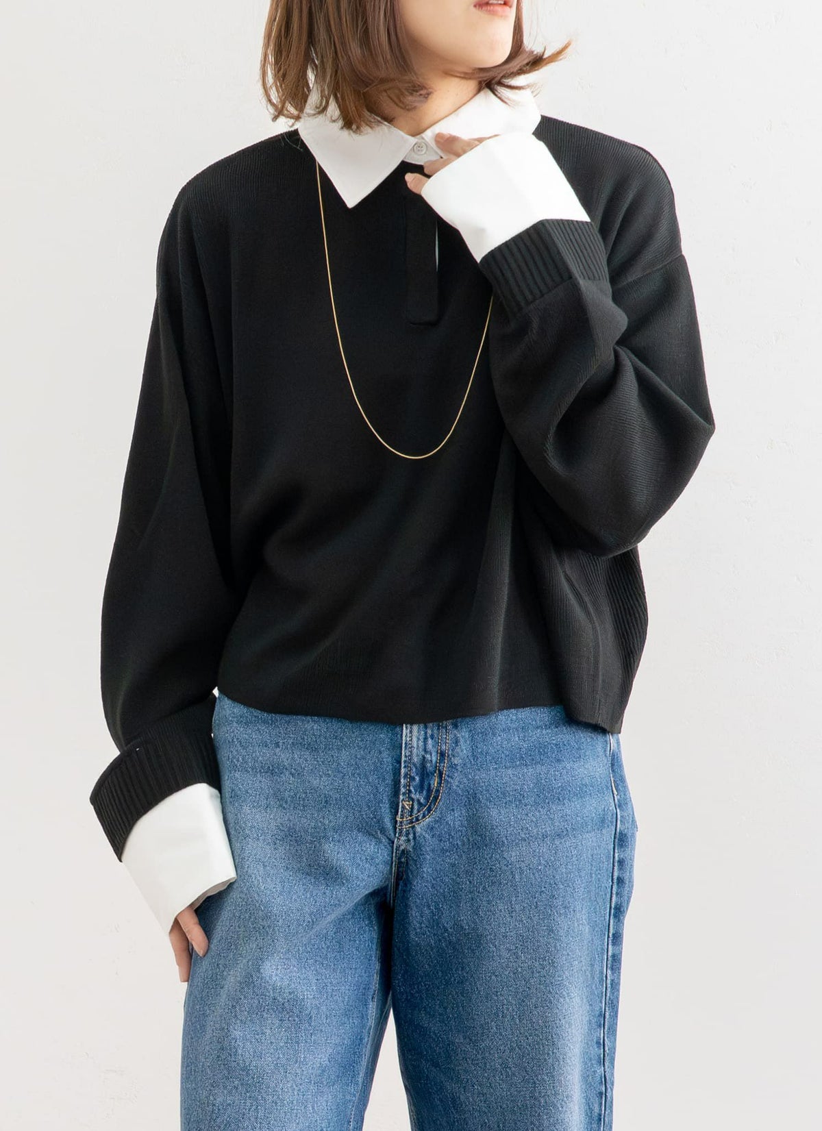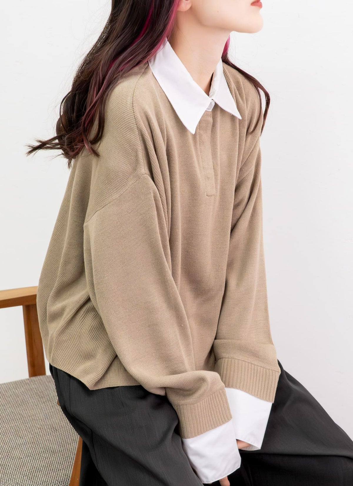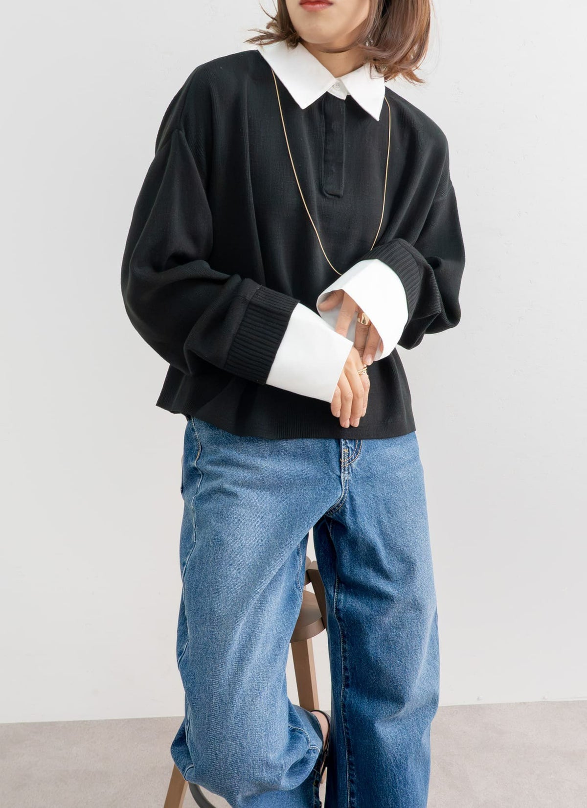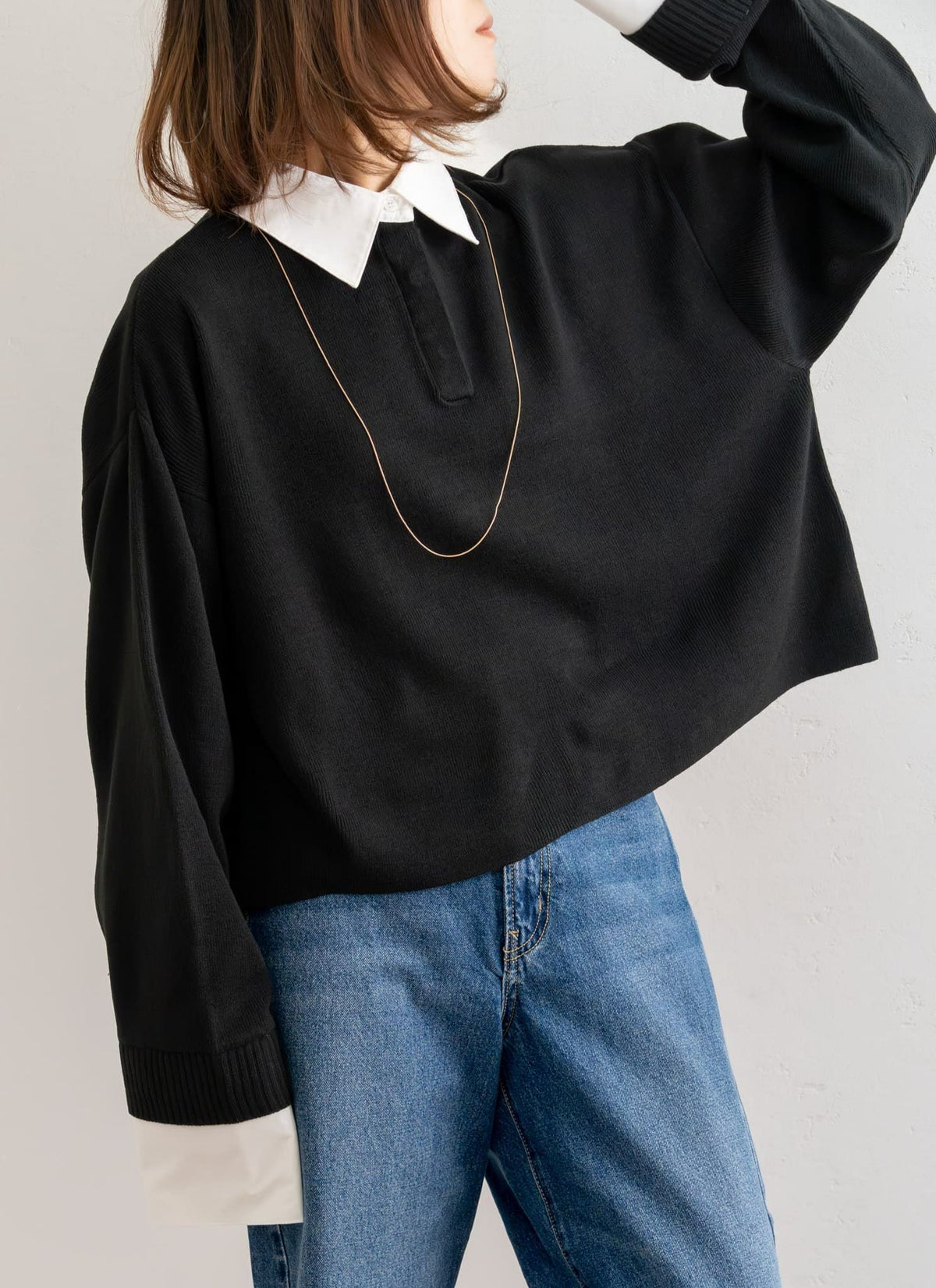 revoam【シャツ生地の襟をレイヤードしたニットポロ】 【20%OFF】衿付きポロニット