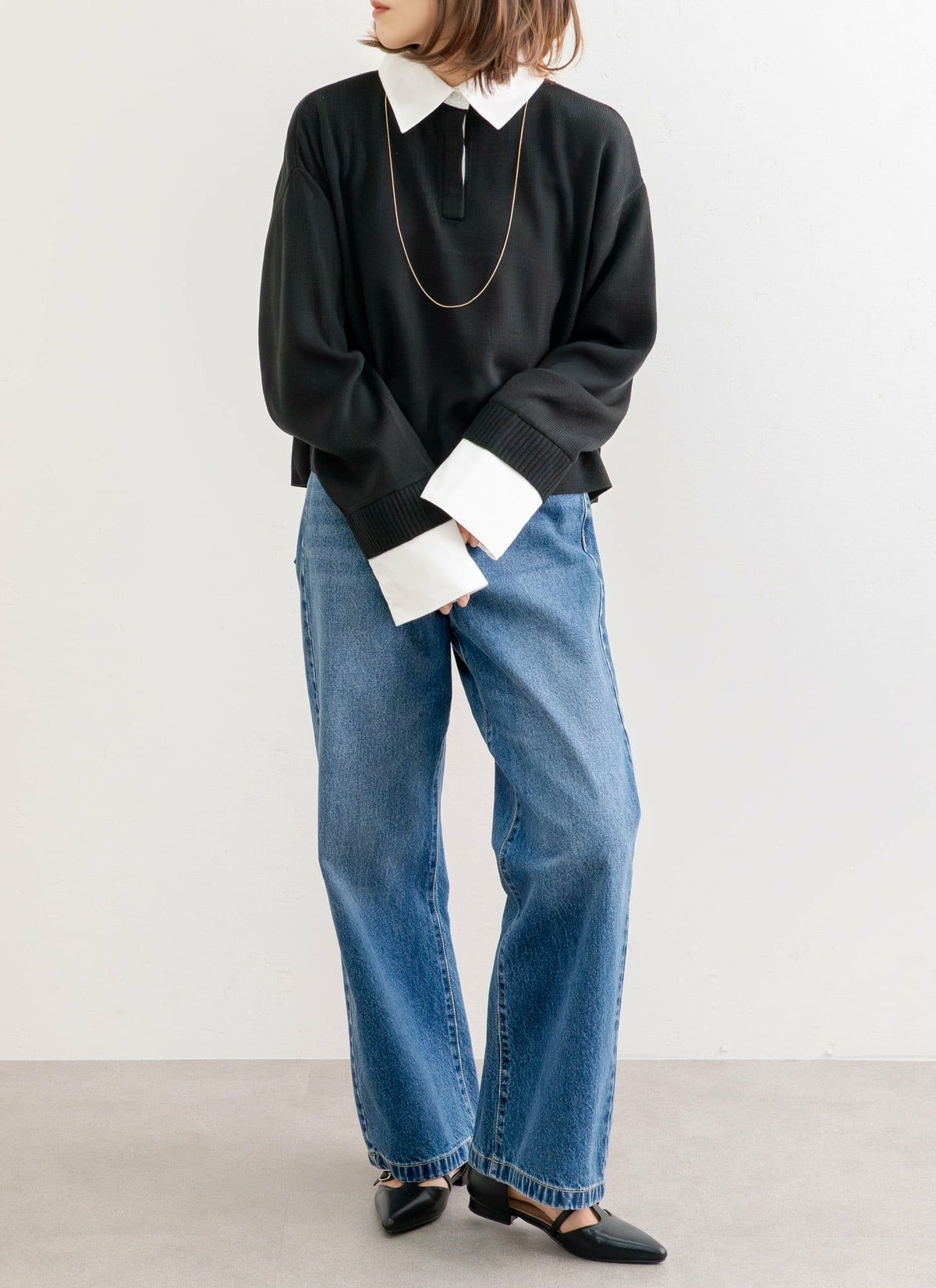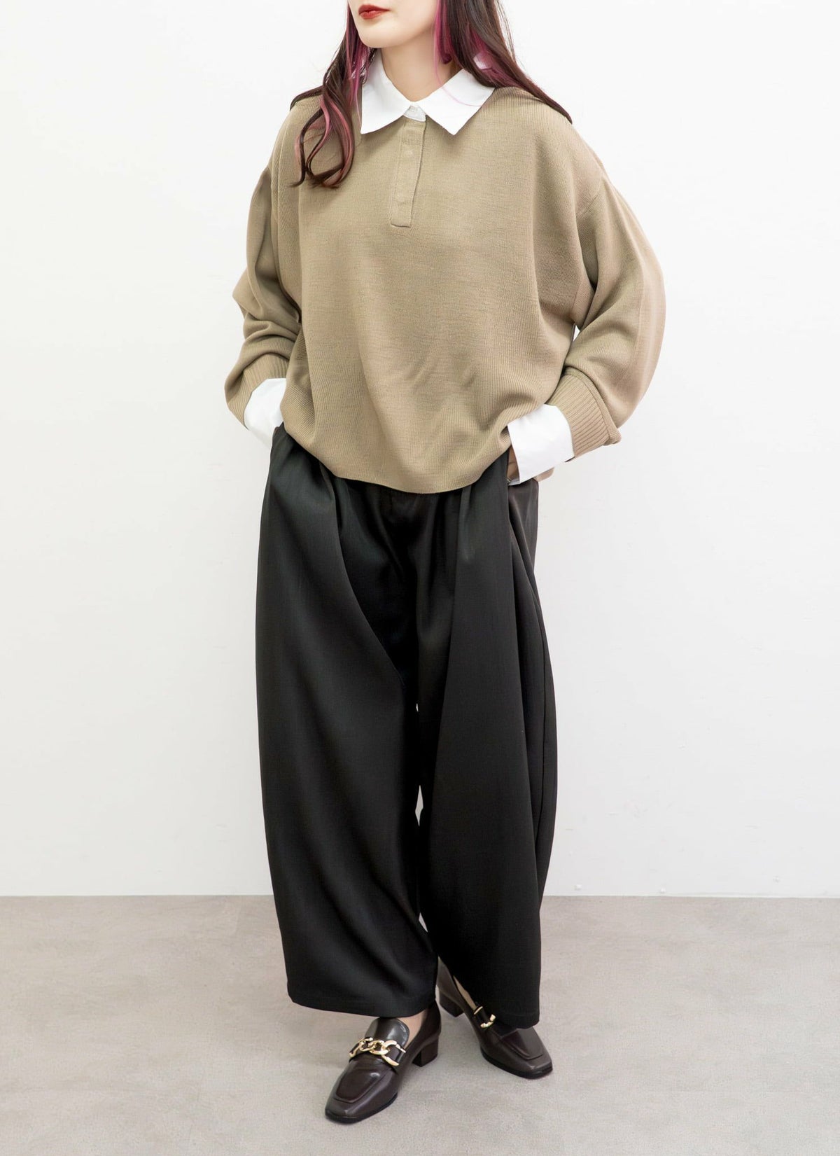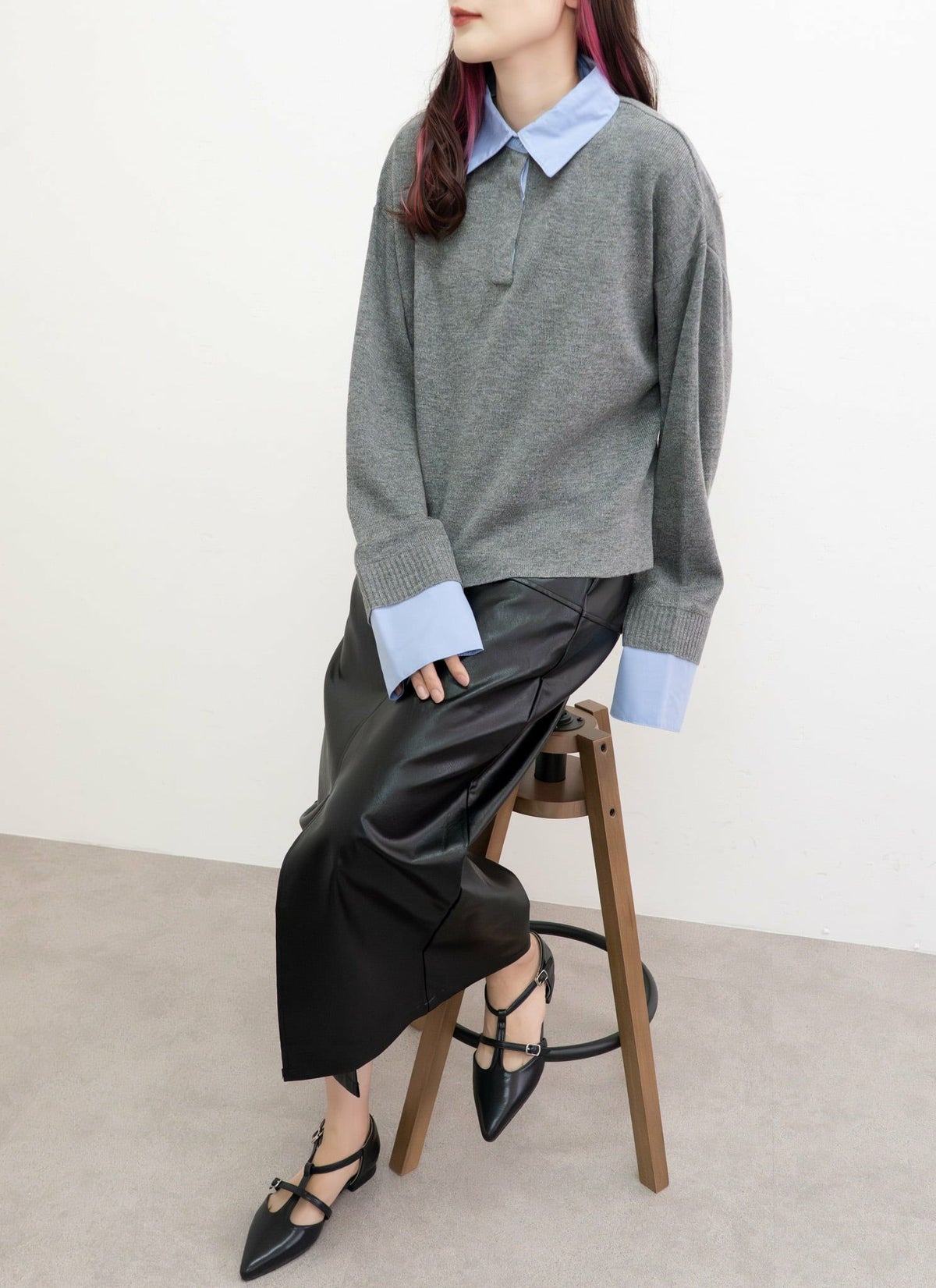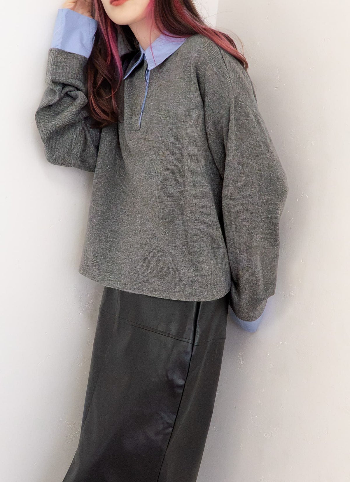 revoam【シャツ生地の襟をレイヤードしたニットポロ】 【20%OFF】衿付きポロニット
